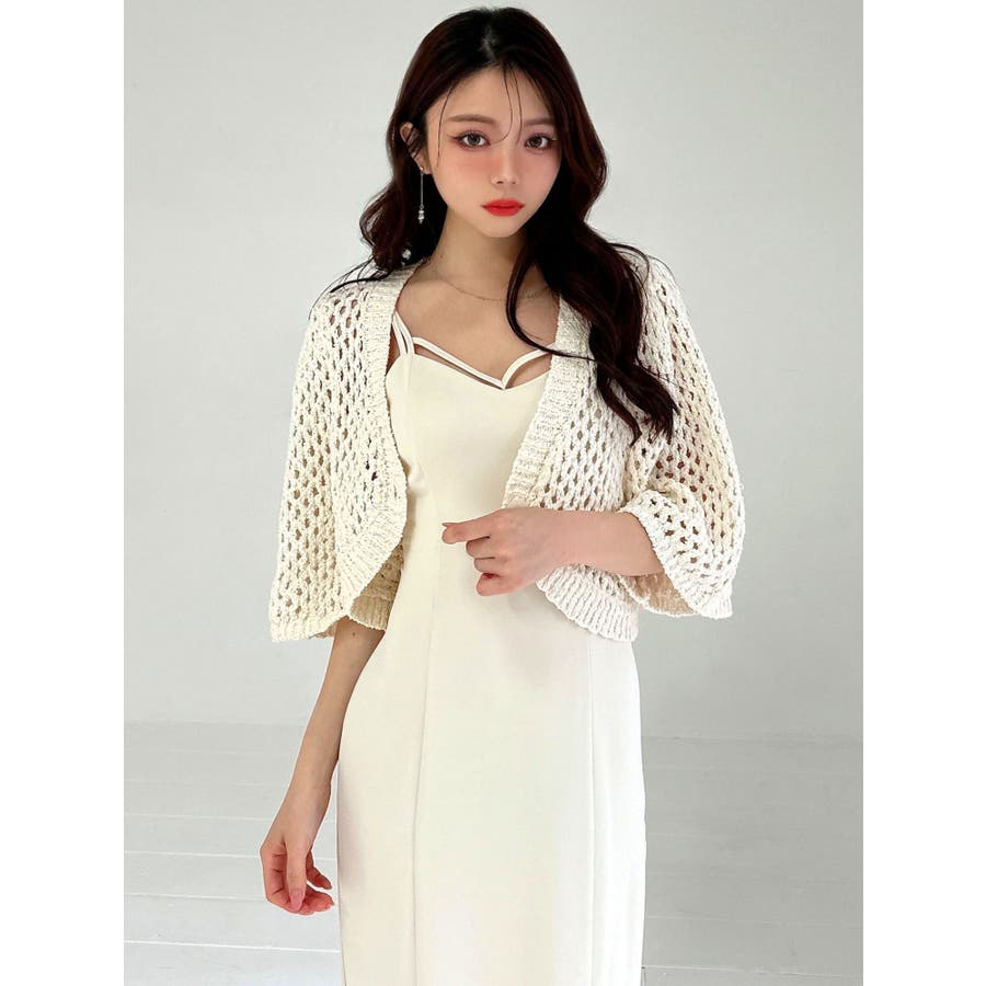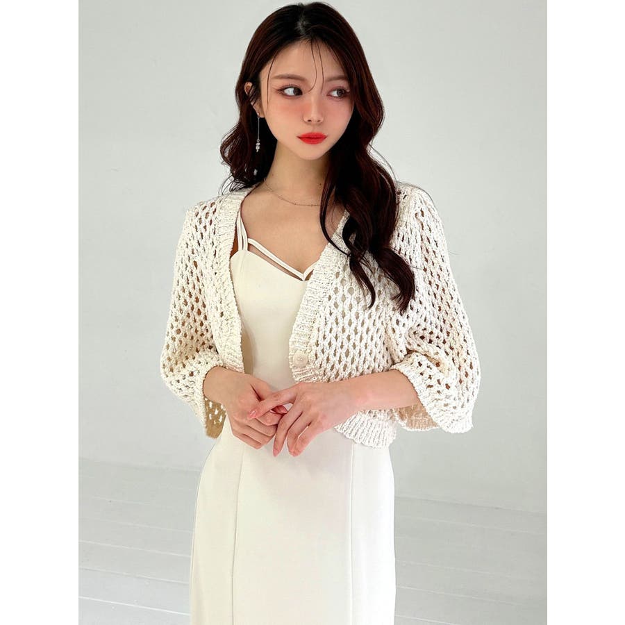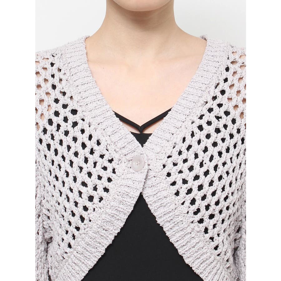 昨年大人気だったカーディガンが今年も登場!▽デザイン▽さりげない肌見せが叶うニットカーディガン。ざっくりと編んだニットで女性らしさのある抜け感に。ゆるっと羽織れるデザインにし、これから夏にかけて重宝します。袖丈は長めにしたことで二の腕周りをカバーし、ロングシーズン活躍。前を閉じても開けてもスッキリとした印象に仕上がります。▽カラー▽白・黒・ベージュの3色展開。▽スタイリング▽ショート丈にしたことでコーデに合わせやすく使いやすさ◎ワンピースに合わせたり、トップス×ボトムスに合わせたりとコーデを選ばずプラスできるアイテム。※着用画像はフラッシュの加減で実際の製品と色味等が異なる場合がございますので、生地のズームアップ画像をご確認ください。※ご利用の端末画面の設定により実際の商品と色味が異なる場合がございます。【商品特徴】透け感:あり伸縮性:あり生地の厚さ:普通サイズ感:ゆったり裏地:なしポケット:なし