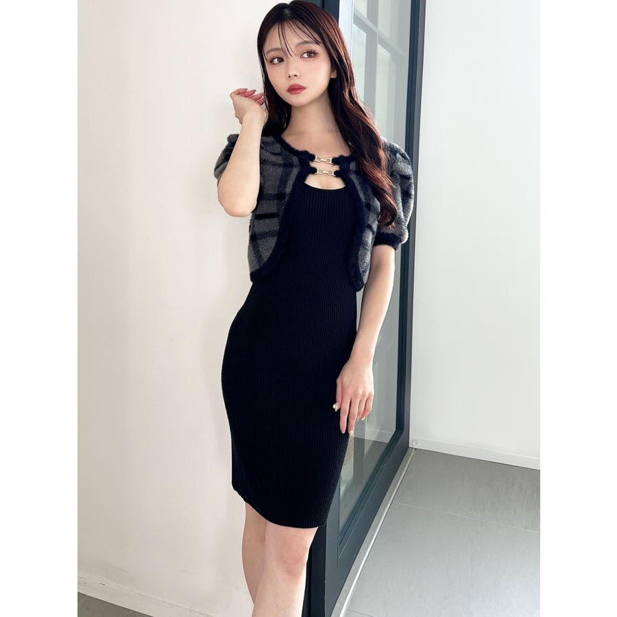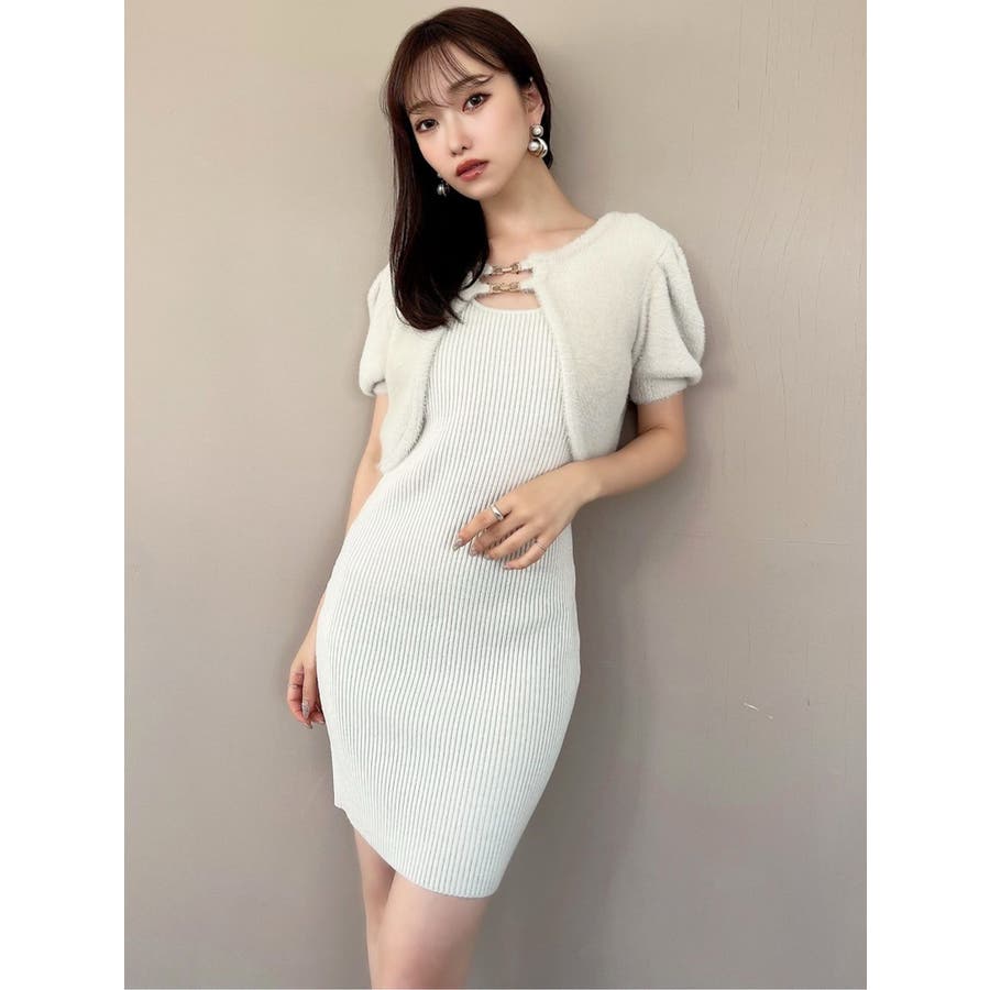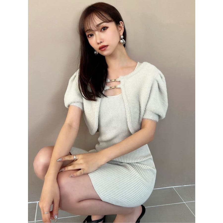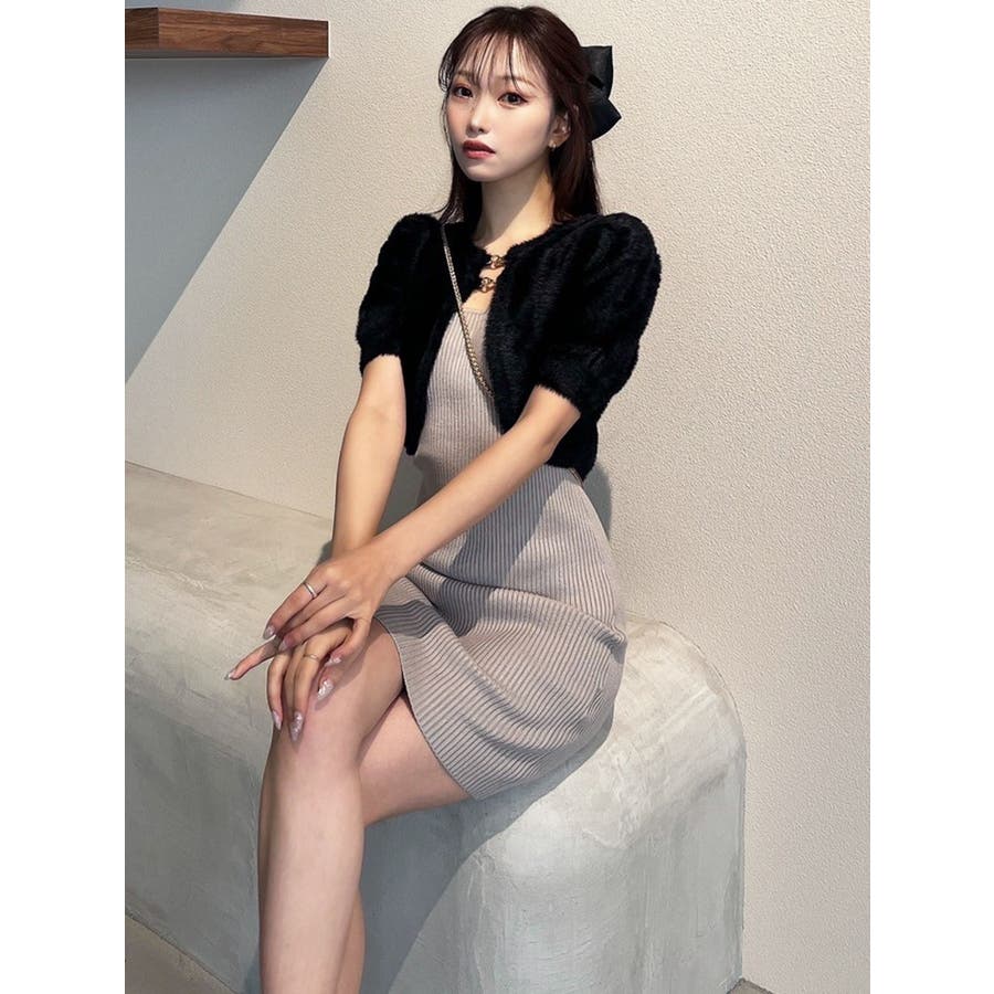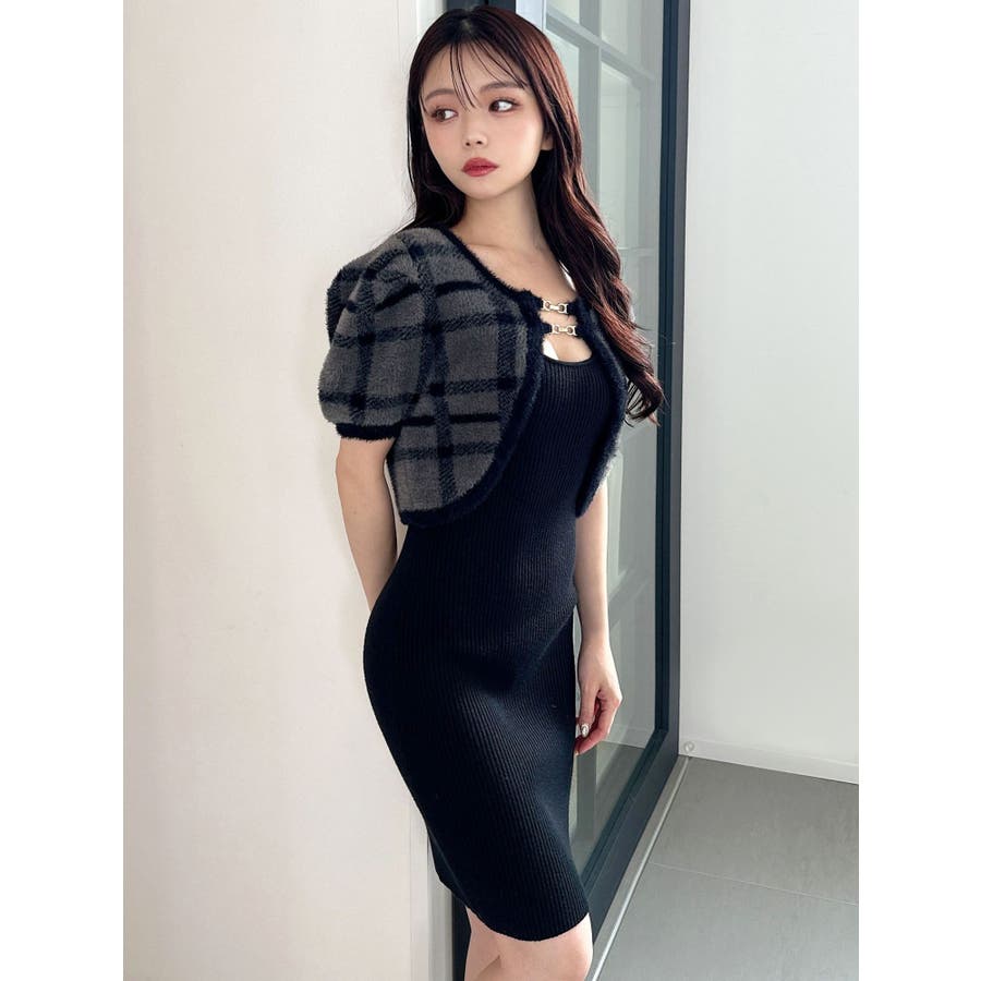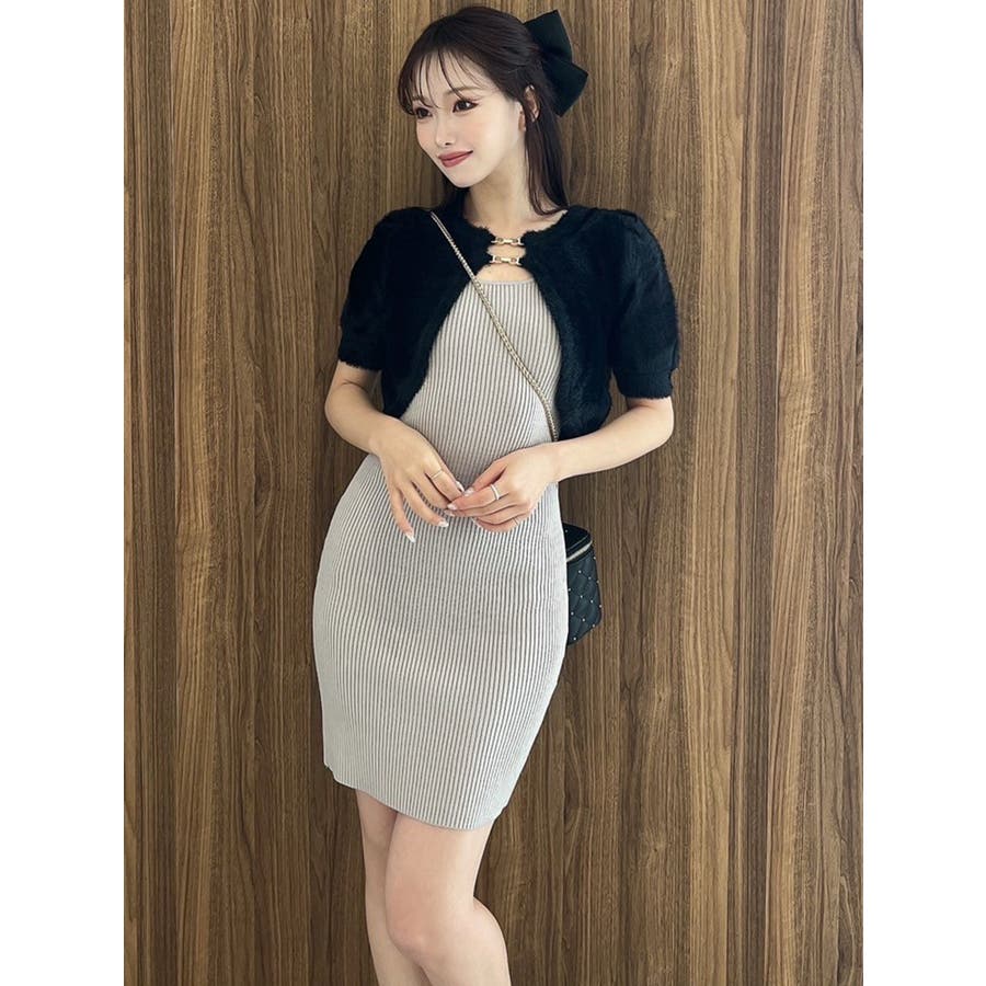 ミニ丈のニットワンピースとミニシャギーのボレロがセットになったアイテム。