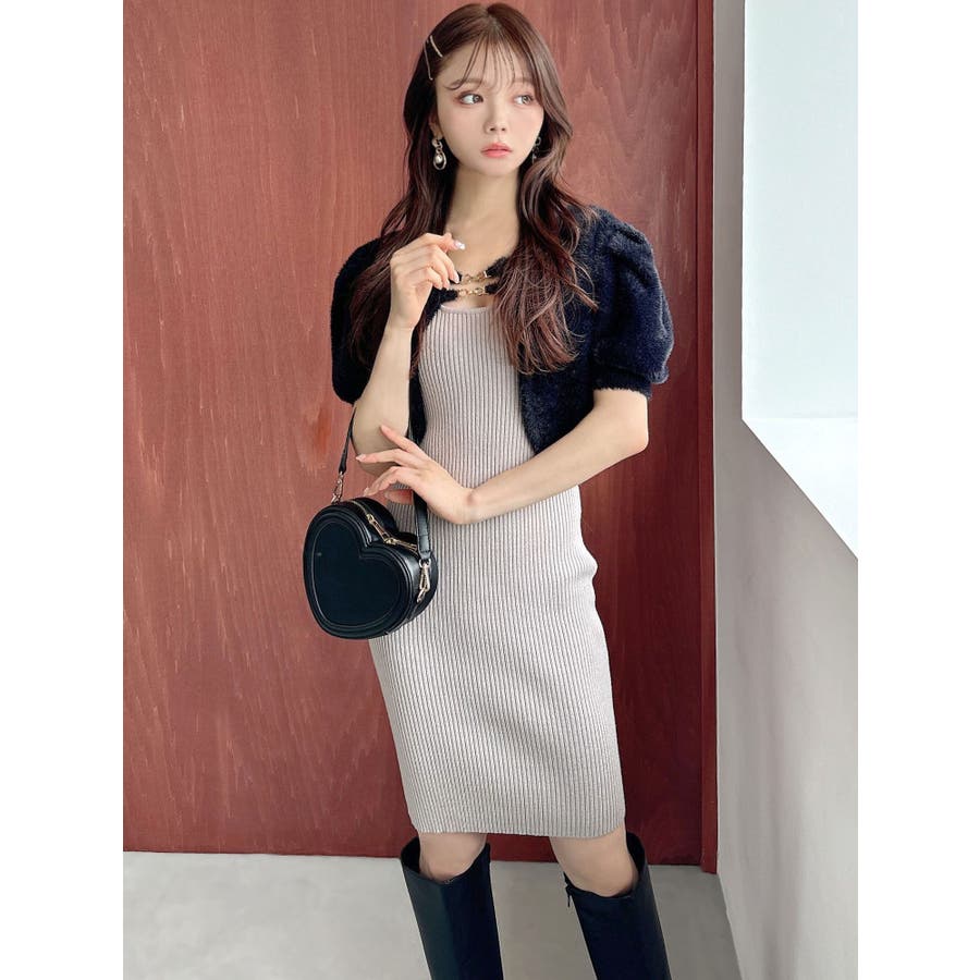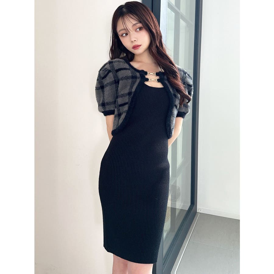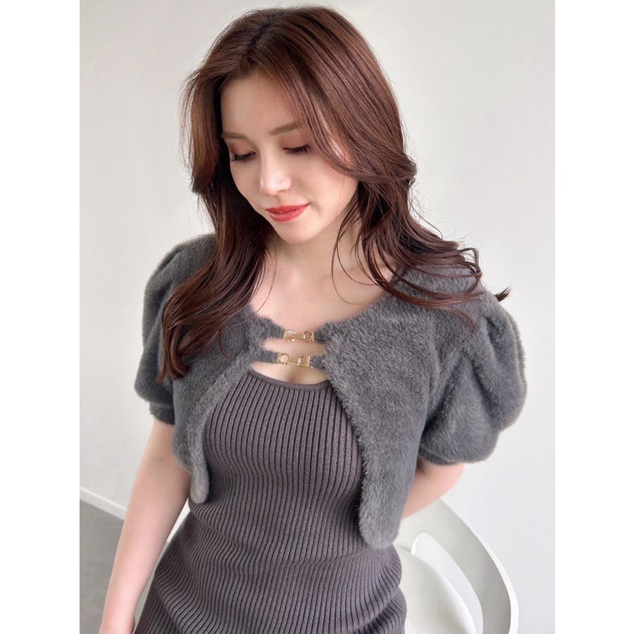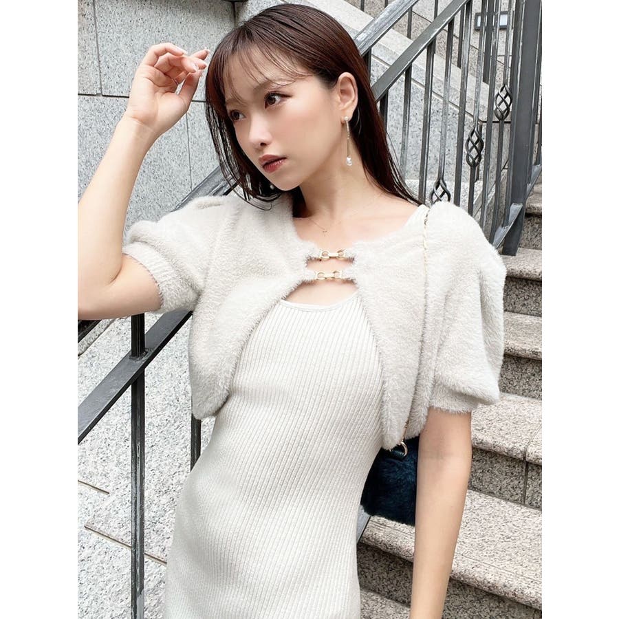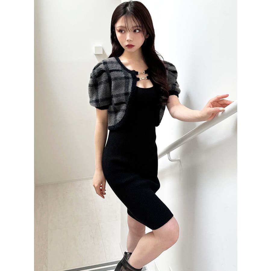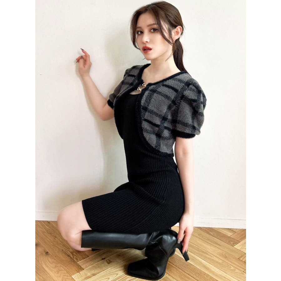 ミニ丈のニットワンピースとミニシャギーのボレロがセットになったアイテム。