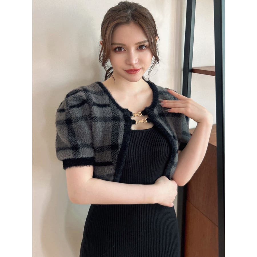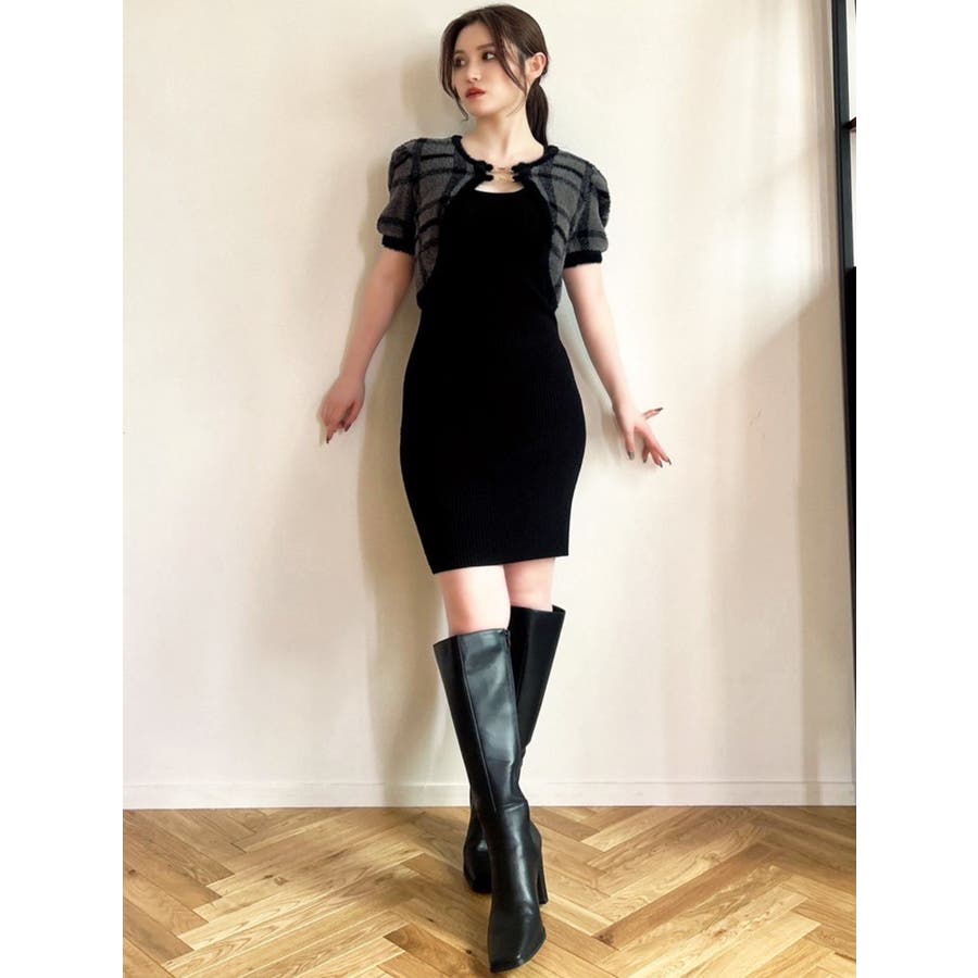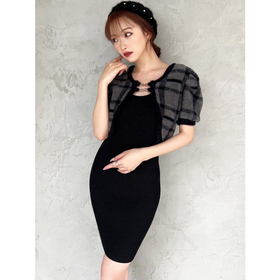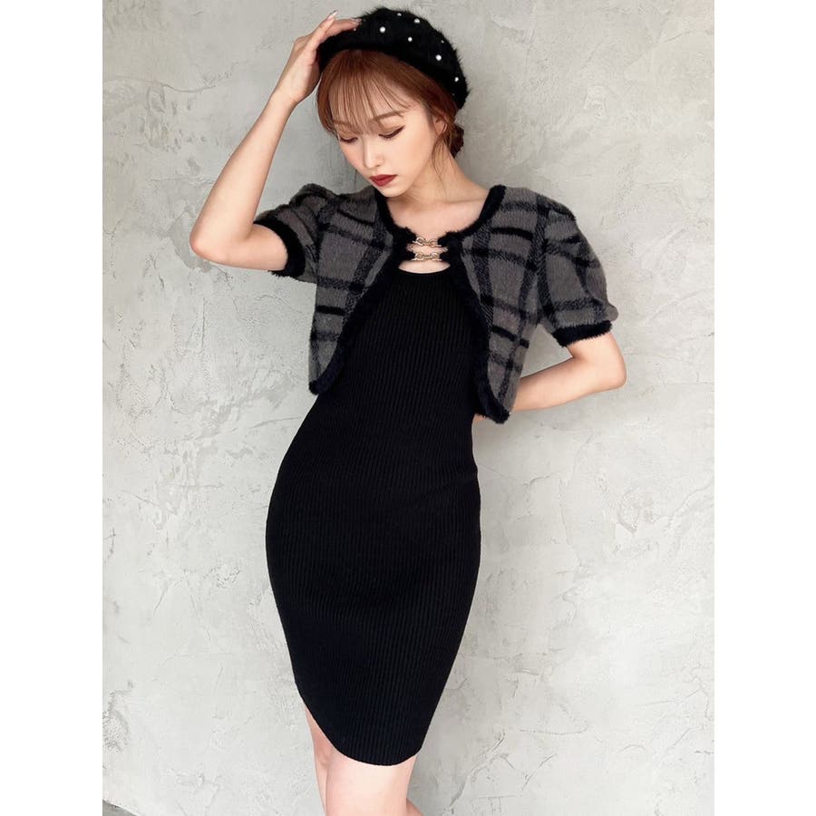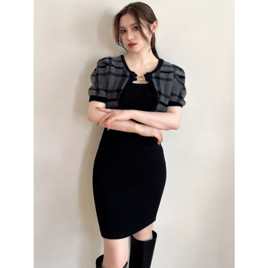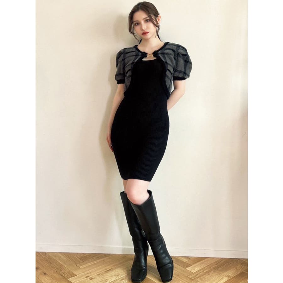 ミニ丈のニットワンピースとミニシャギーのボレロがセットになったアイテム。