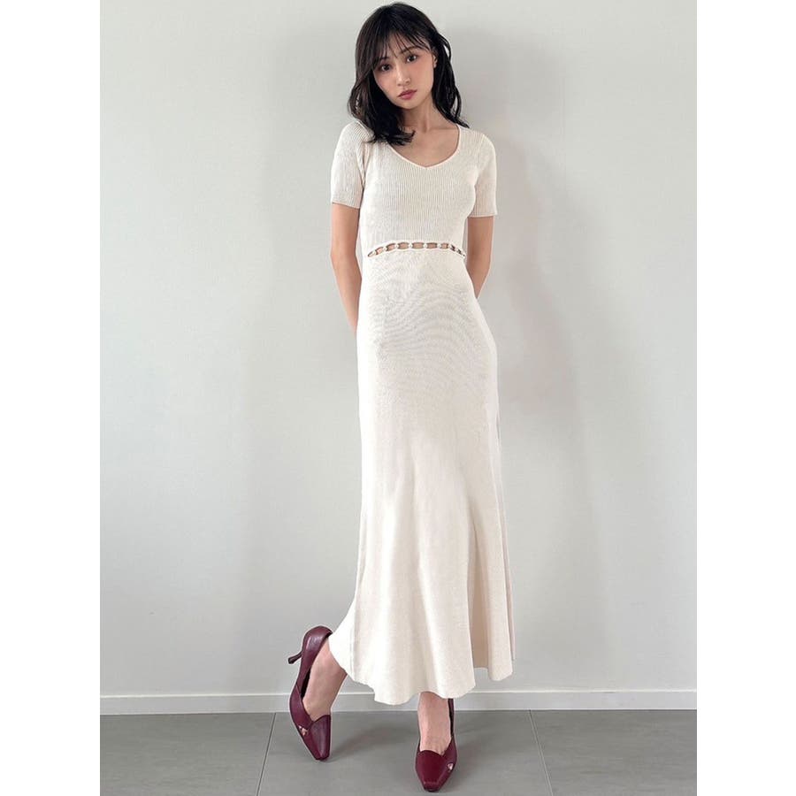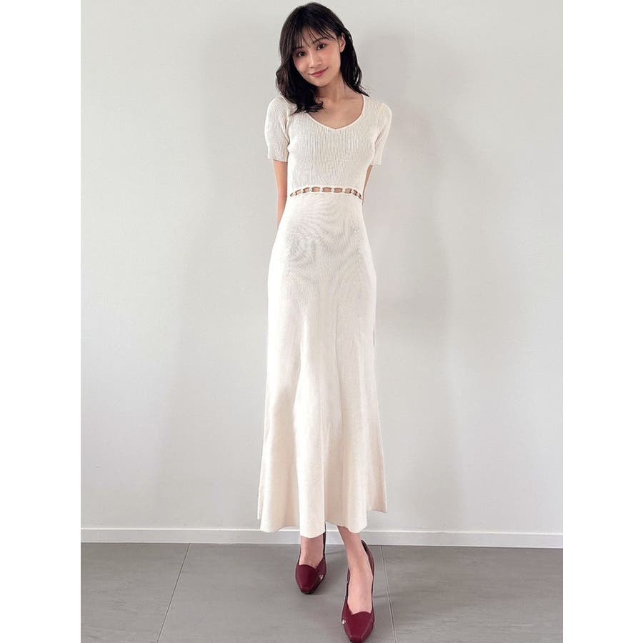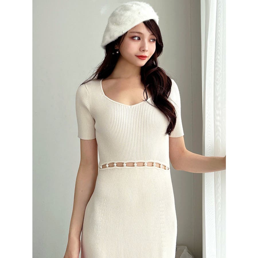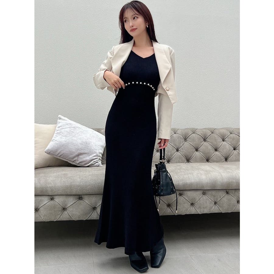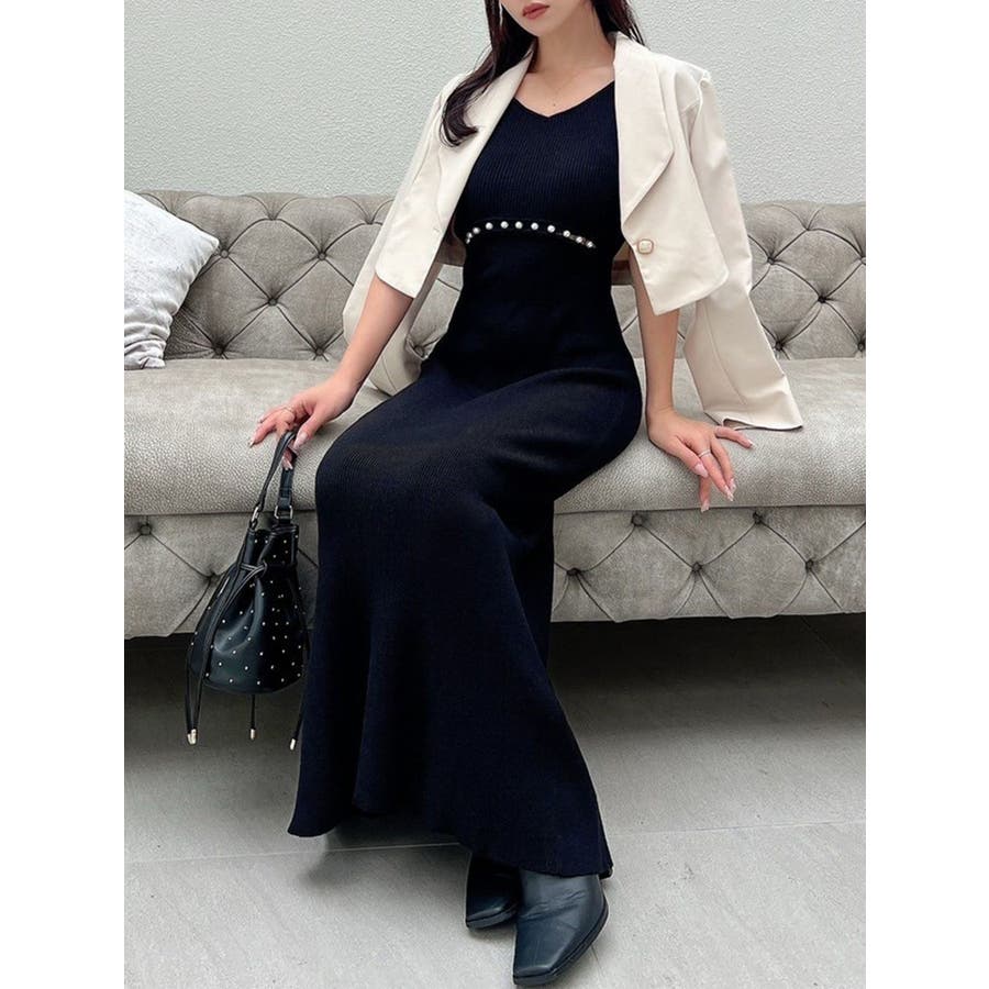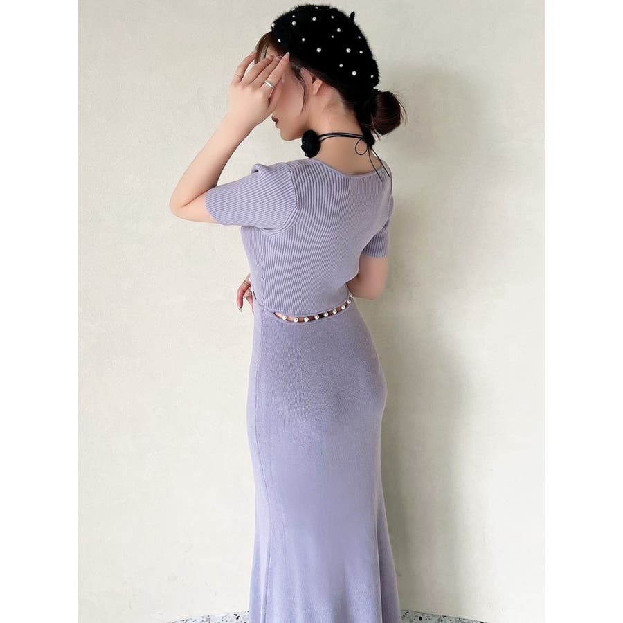 ウエストのパールに目を惹く1着♪▽デザイン▽シルエットが自慢のマーメイドニットワンピースのウエスト部分に小ぶりなパールをほどこし、他にはないデザインで上品なアイテムに仕上げました。チラっと見えるさりげない肌見せがポイント!デコルテ部分も開いたデザインにしたので重たくならず、裾に向かってゆるやかに広がるマーメイドシルエットが女性らしさUP◎ボディにフィットするニット素材で1枚でメリハリある美しいシルエットを演出。▽カラー▽白・黒・ラベンダーの3色展開。▽スタイリング▽1枚で女性らしさたっぷりのキレイめワンピース。1枚で着るのはもちろん、秋口にはライダースジャケットなどを合わせた甘辛MIXなスタイリングもオススメ!デイリーからパーティーシーンまで幅広く活躍します。※着用画像はフラッシュの加減で実際の製品と色味等が異なる場合がございますので、生地のズームアップ画像をご確認ください。※ご利用の端末画面の設定により実際の商品と色味が異なる場合がございます。【商品特徴】透け感:なし伸縮性:あり生地の厚さ:普通サイズ感:細身裏地:なしポケット:なしファスナー:なし