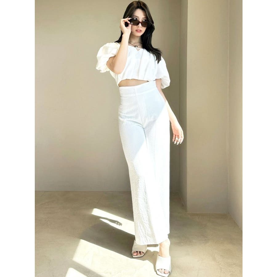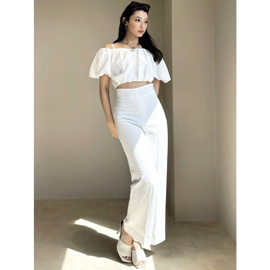 表面変化のある素材を使ったストレートパンツ▽デザイン▽シンプルながらも美しいシルエットにこだわったパンツ。ハイウエストデザインで脚長効果も抜群。ウエストはバックゴムなのでストレスフリーに着用できます。ボディラインを拾わず、スッキリと洗練された印象に。▽カラー▽白・黒・グレーの3色展開。▽スタイリング▽同素材を使用したブラウスと合わせればセットアップとして着用可能◎ハイウエストなのでショート丈トップスとの相性抜群です♪※着用画像はフラッシュの加減で実際の製品と色味等が異なる場合がございますので、生地のズームアップ画像をご確認ください。※ご利用の端末画面の設定により実際の商品と色味が異なる場合がございます。【商品特徴】透け感:なし伸縮性:なし生地の厚さ:普通サイズ感:ゆったり裏地:ありポケット:なし