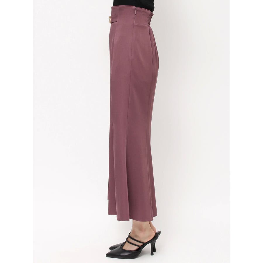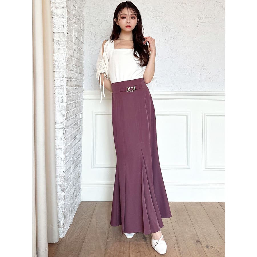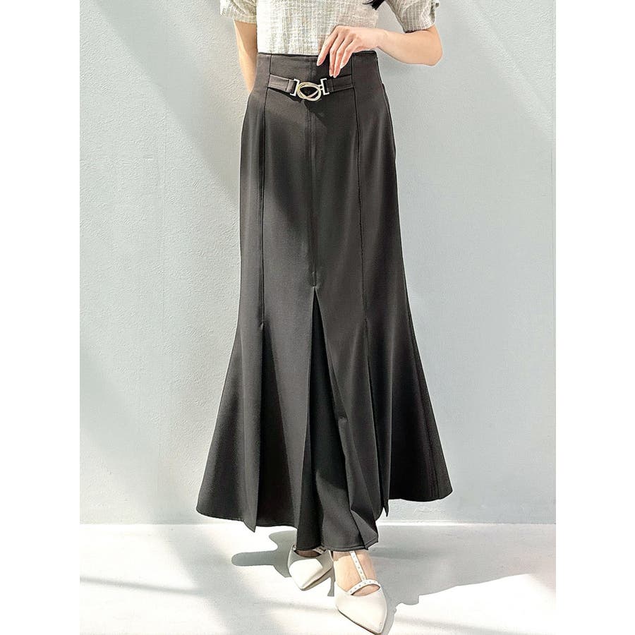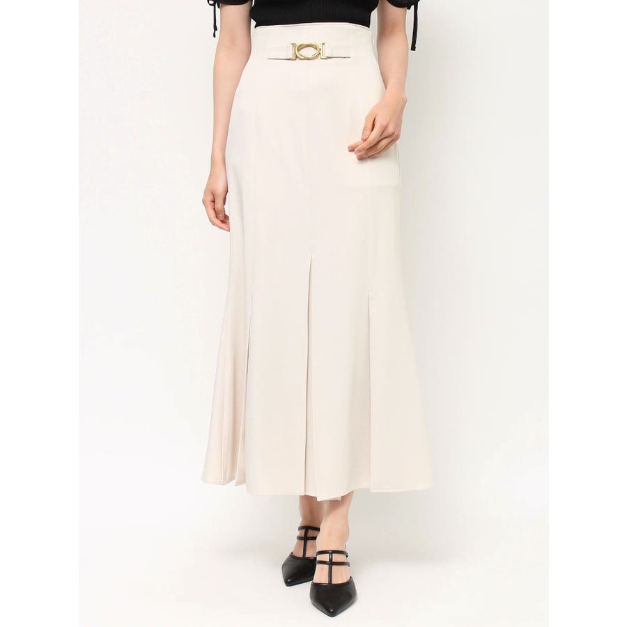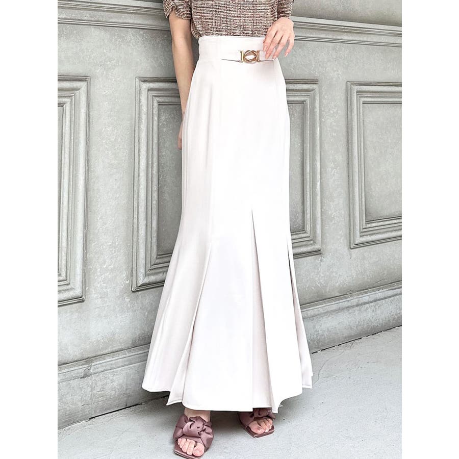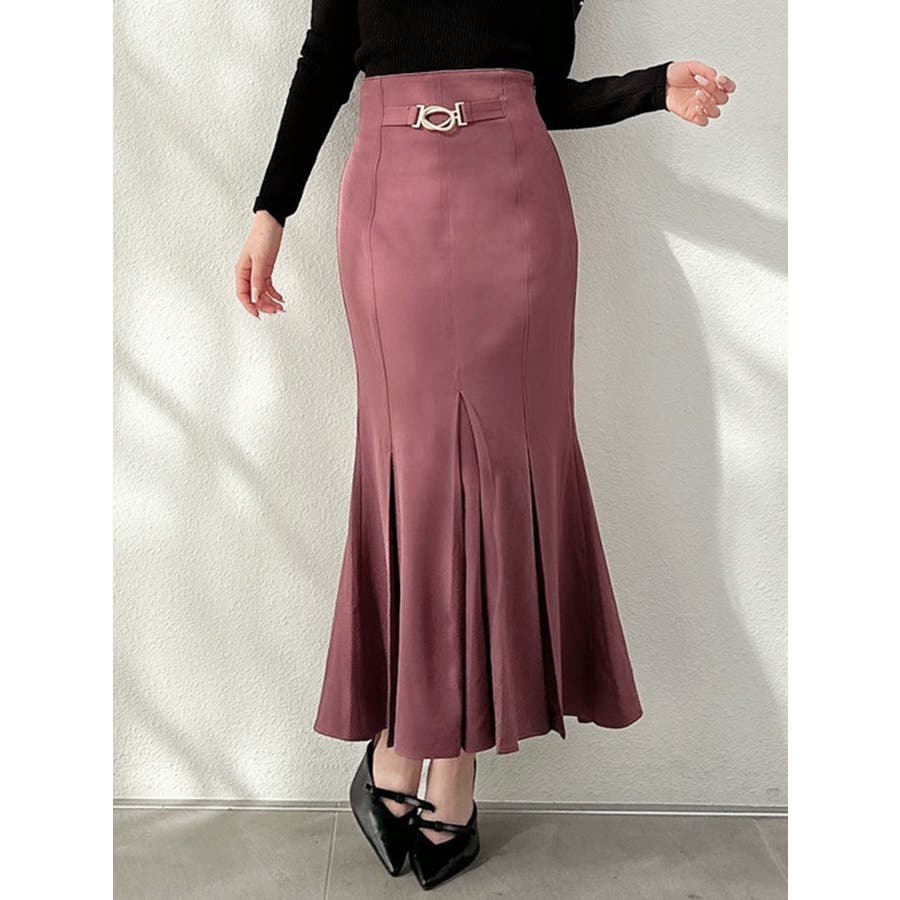 昨年大人気だったスカートが今年も登場!▽デザイン▽センターバックルがポイントのマーメイドスカートが今年も登場。フロントには3ヵ所のタックを入れ、動きの出るデザインに仕上げました。サイドはステッチで抑え、裾のみタックにすることでホールド感を出しボディラインに沿った美シルエットを演出。フロントにはマットゴールドの変形バックルを付けワンポイントに◎ハイウエストなのでウエストラインをしっかりと引き締めてくれスタイルアップ!▽カラー▽白・チャコールグレー・パープルの3色展開。▽スタイリング▽ブラウスやニットでキレイめなスタイリングからあえてTシャツでラフにまとめたスタイリングもオススメ!シーズンレスに使えるので1枚持っていると重宝します。デイリー使いはもちろん、オフィスコーデにもオススメ!※着用画像はフラッシュの加減で実際の製品と色味等が異なる場合がございますので、生地のズームアップ画像をご確認ください。※ご利用の端末画面の設定により実際の商品と色味が異なる場合がございます。【商品特徴】透け感:なし伸縮性:なし生地の厚さ:普通サイズ感:普通裏地:ありポケット:なし