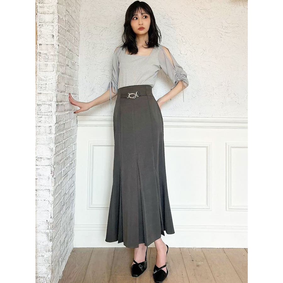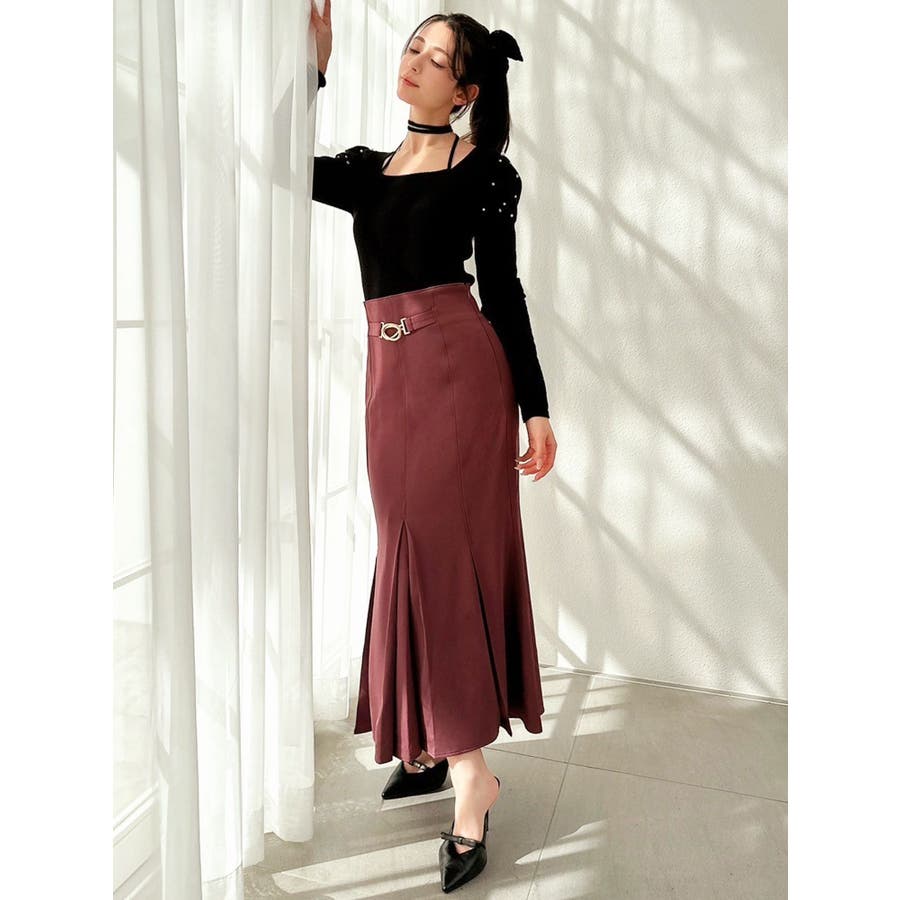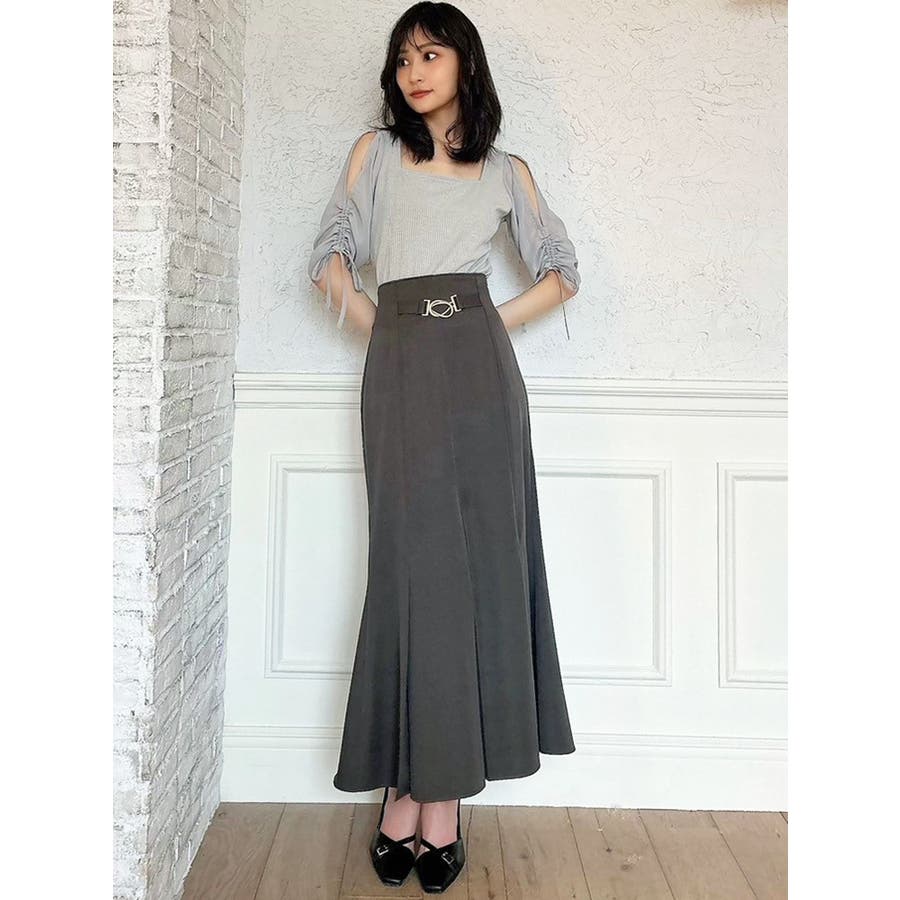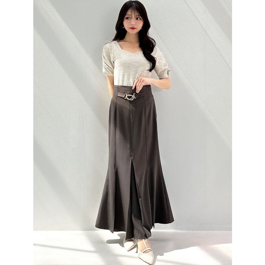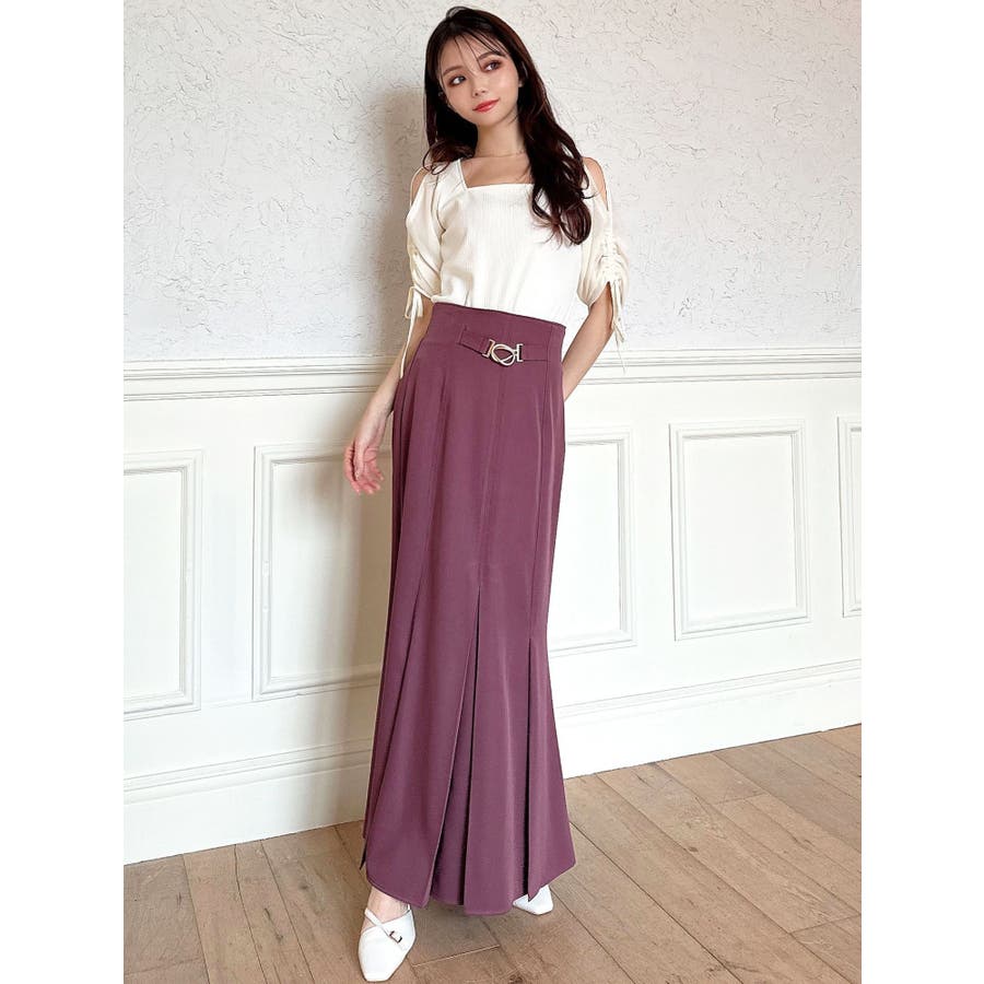 昨年大人気だったスカートが今年も登場!▽デザイン▽センターバックルがポイントのマーメイドスカートが今年も登場。フロントには3ヵ所のタックを入れ、動きの出るデザインに仕上げました。サイドはステッチで抑え、裾のみタックにすることでホールド感を出しボディラインに沿った美シルエットを演出。フロントにはマットゴールドの変形バックルを付けワンポイントに◎ハイウエストなのでウエストラインをしっかりと引き締めてくれスタイルアップ!▽カラー▽白・チャコールグレー・パープルの3色展開。▽スタイリング▽ブラウスやニットでキレイめなスタイリングからあえてTシャツでラフにまとめたスタイリングもオススメ!シーズンレスに使えるので1枚持っていると重宝します。デイリー使いはもちろん、オフィスコーデにもオススメ!※着用画像はフラッシュの加減で実際の製品と色味等が異なる場合がございますので、生地のズームアップ画像をご確認ください。※ご利用の端末画面の設定により実際の商品と色味が異なる場合がございます。【商品特徴】透け感:なし伸縮性:なし生地の厚さ:普通サイズ感:普通裏地:ありポケット:なし