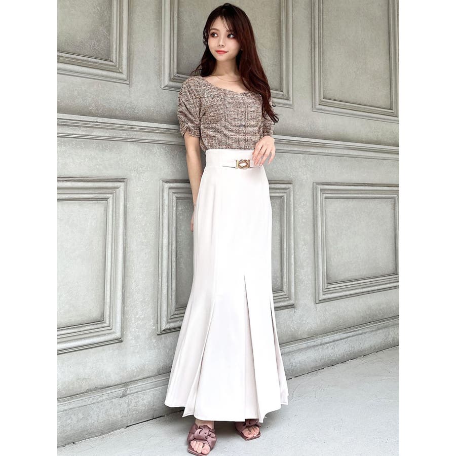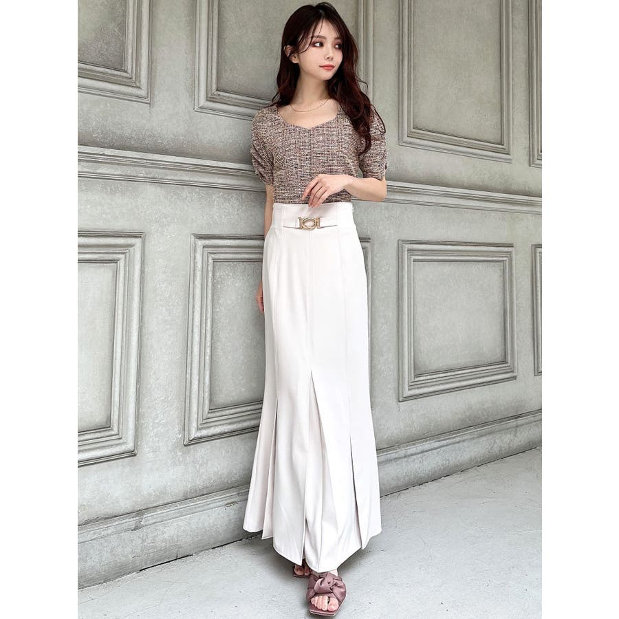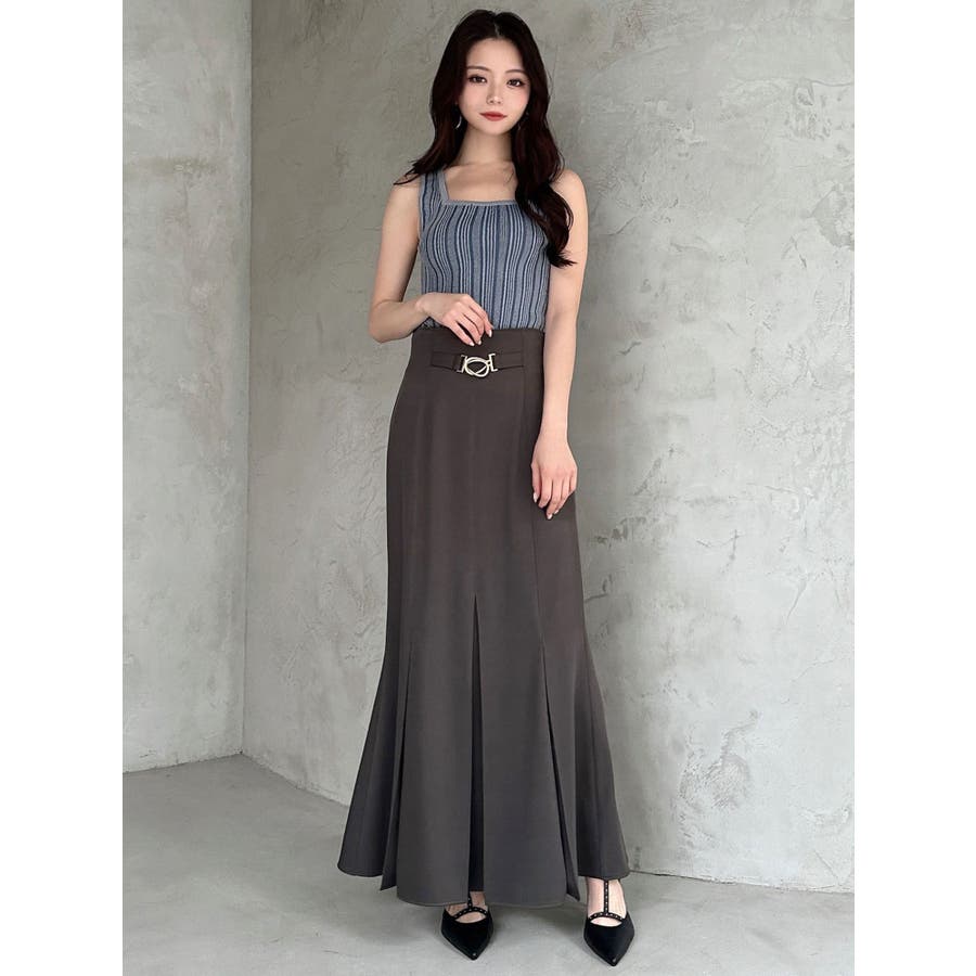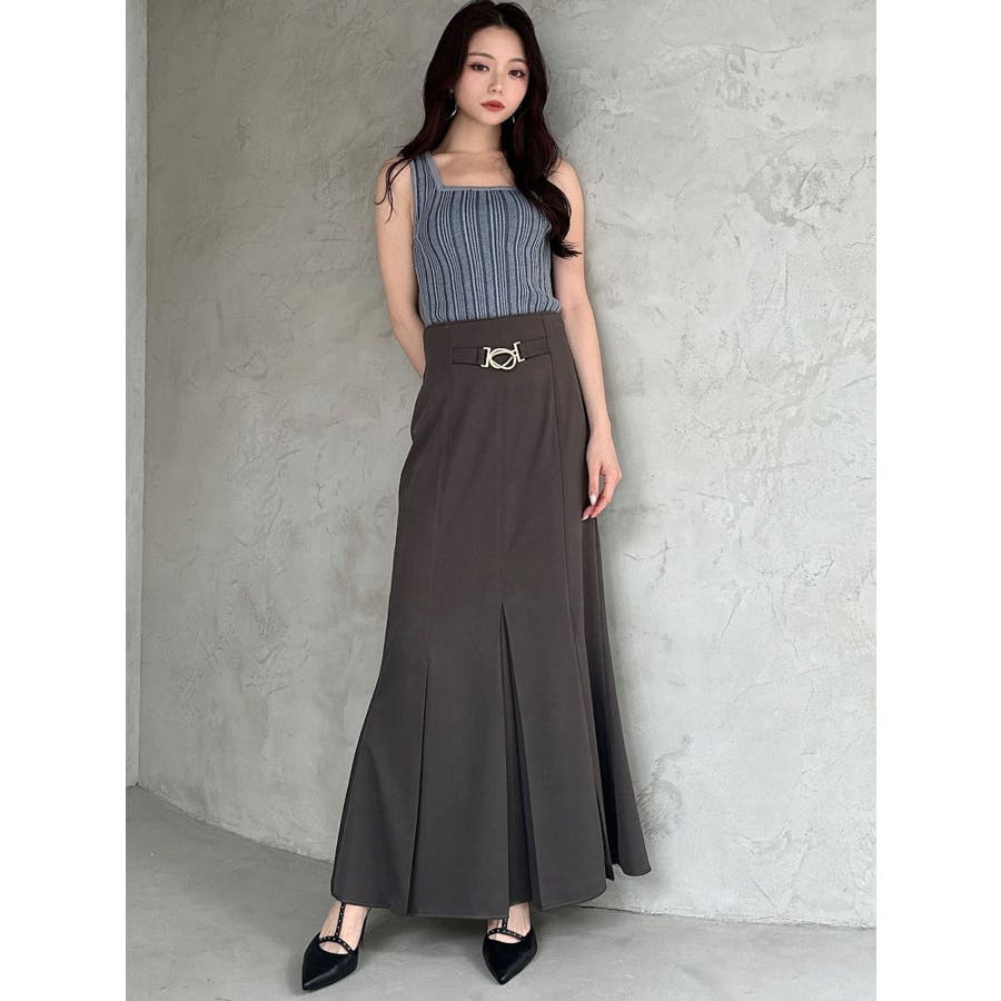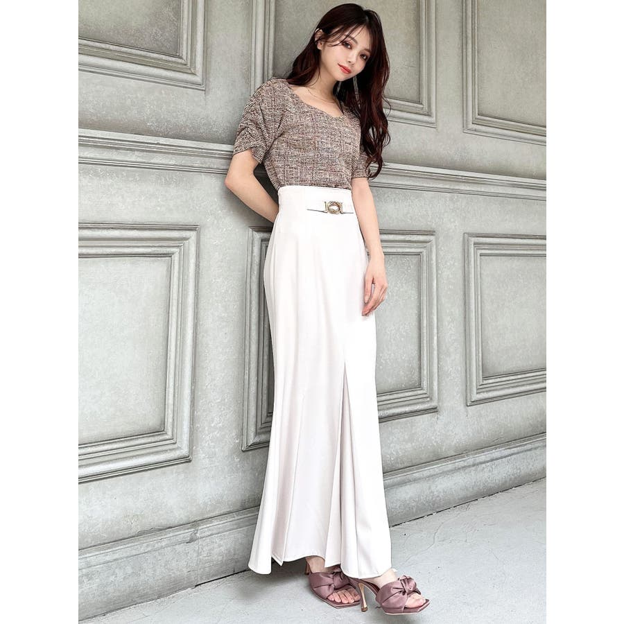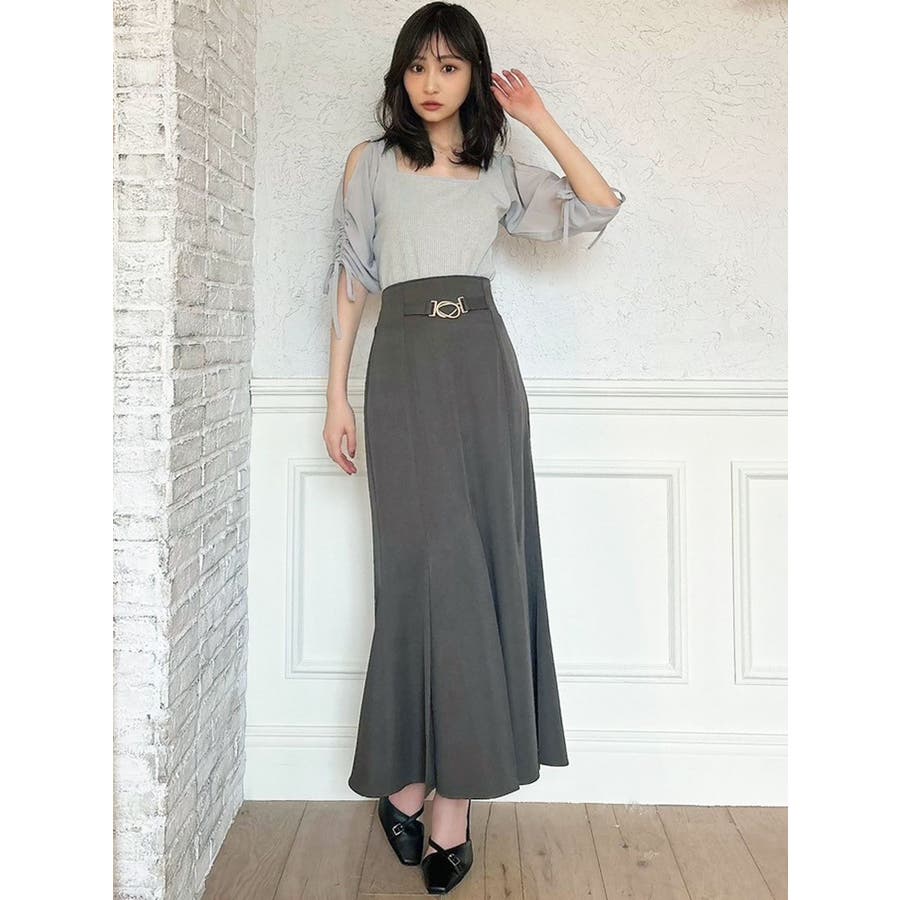 昨年大人気だったスカートが今年も登場!▽デザイン▽センターバックルがポイントのマーメイドスカートが今年も登場。フロントには3ヵ所のタックを入れ、動きの出るデザインに仕上げました。サイドはステッチで抑え、裾のみタックにすることでホールド感を出しボディラインに沿った美シルエットを演出。フロントにはマットゴールドの変形バックルを付けワンポイントに◎ハイウエストなのでウエストラインをしっかりと引き締めてくれスタイルアップ!▽カラー▽白・チャコールグレー・パープルの3色展開。▽スタイリング▽ブラウスやニットでキレイめなスタイリングからあえてTシャツでラフにまとめたスタイリングもオススメ!シーズンレスに使えるので1枚持っていると重宝します。デイリー使いはもちろん、オフィスコーデにもオススメ!※着用画像はフラッシュの加減で実際の製品と色味等が異なる場合がございますので、生地のズームアップ画像をご確認ください。※ご利用の端末画面の設定により実際の商品と色味が異なる場合がございます。【商品特徴】透け感:なし伸縮性:なし生地の厚さ:普通サイズ感:普通裏地:ありポケット:なし