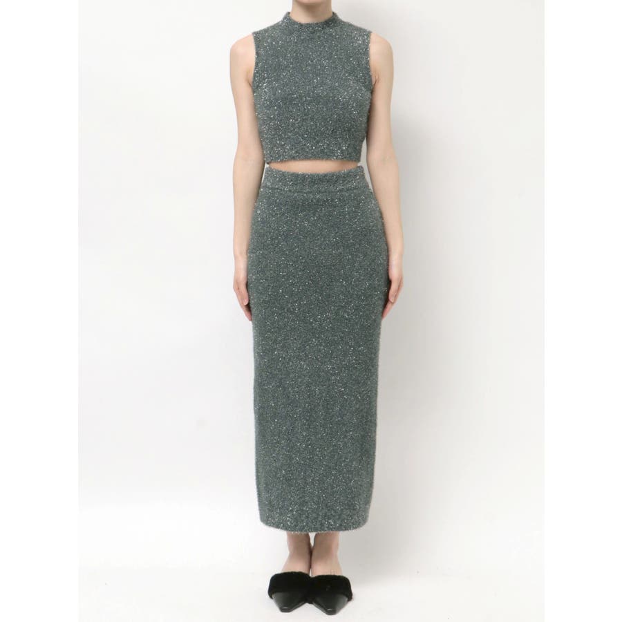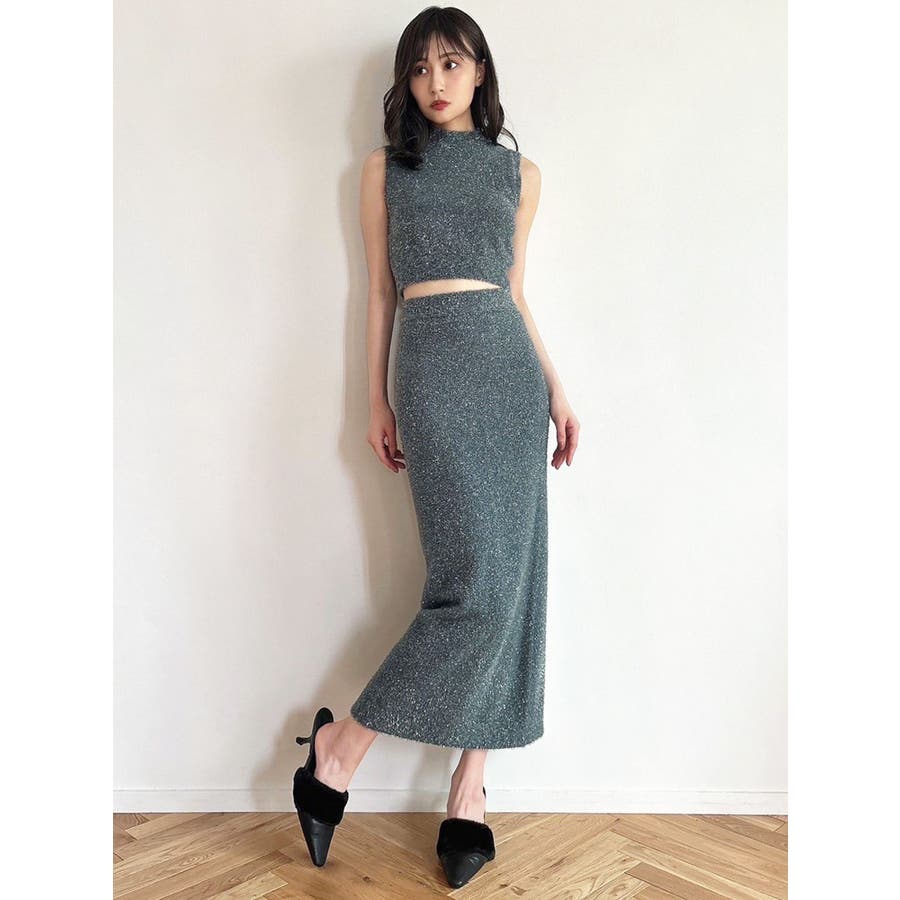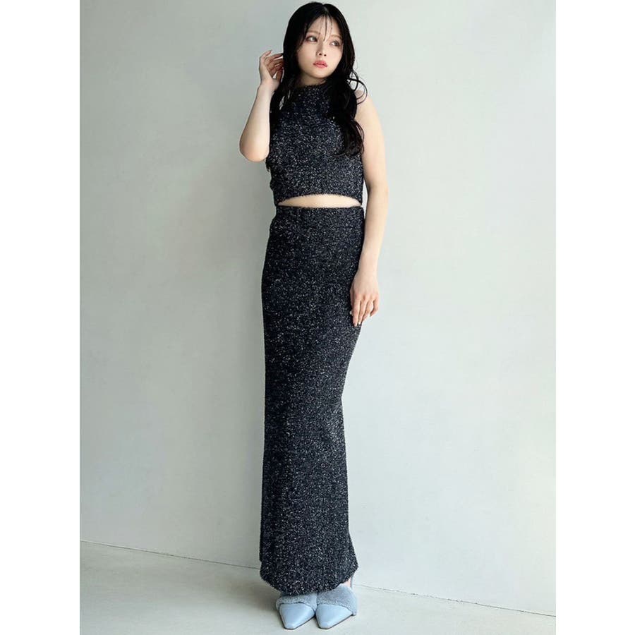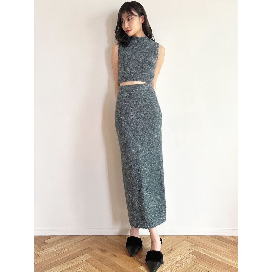 キラキラのラメ糸がポイントのニットスカート▽デザイン▽トレンドのIラインシルエットのニットスカート。ラメ糸を使い煌めきをプラスした主役級アイテム♪ニット生地なので伸縮性があり履きやすく、Iラインシルエットなのでボディラインを拾いすぎずタイトな印象に仕上げます。ウエストゴムなのでストレスフリーに着用可能◎デザイン自体はシンプルで、ラメが映えるアイテムです。ニットですが厚すぎない編地にしたので秋先にピッタリ!▽カラー▽黒・グレー・ピンクの3色展開。▽スタイリング▽同色のニットを合わせればセットアップとして着用可能◎1枚で存在感があるアイテムなのでシンプルなトップス合わせもサマになります。ブラウス合わせでキレイ目にも、スウェットを合わせてラフなコーデも◎タイトなシルエットなのでアウターも合わせやすく着回ししやすいアイテムです。【セットアップアイテムはコチラ】152442639601:グリッターノースリニットトップス