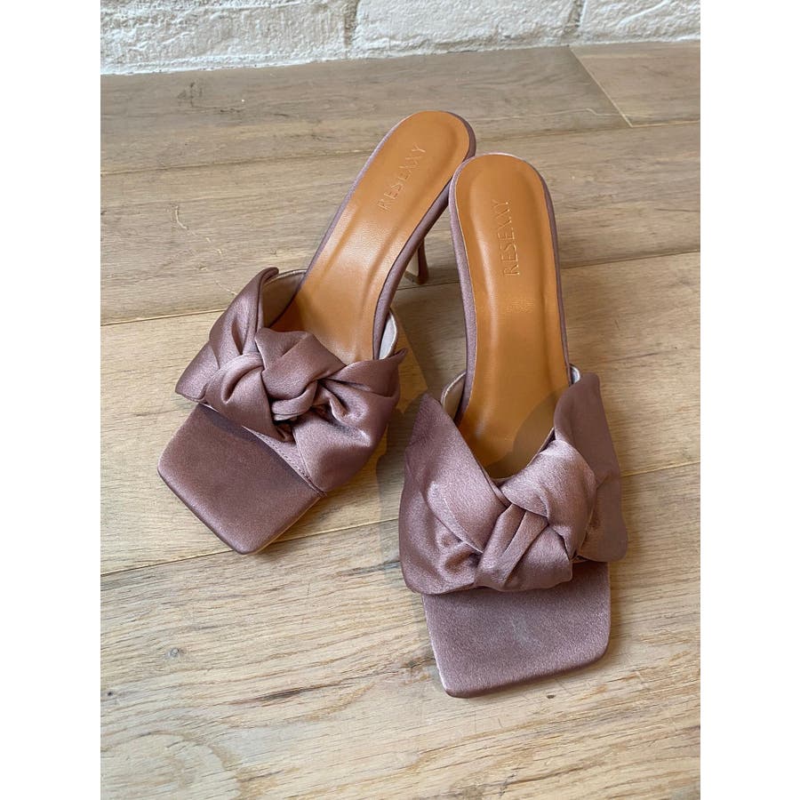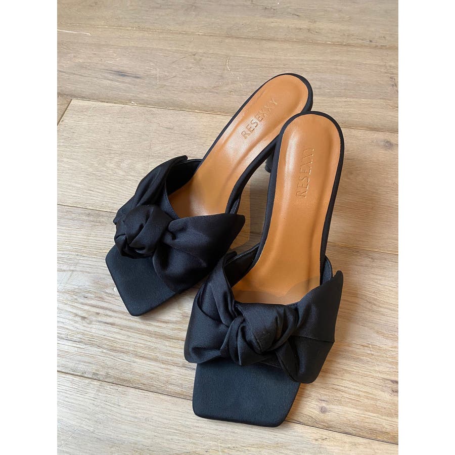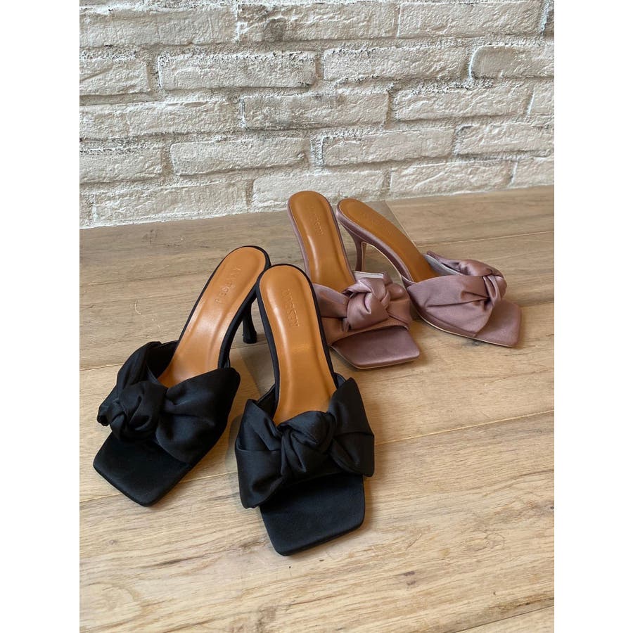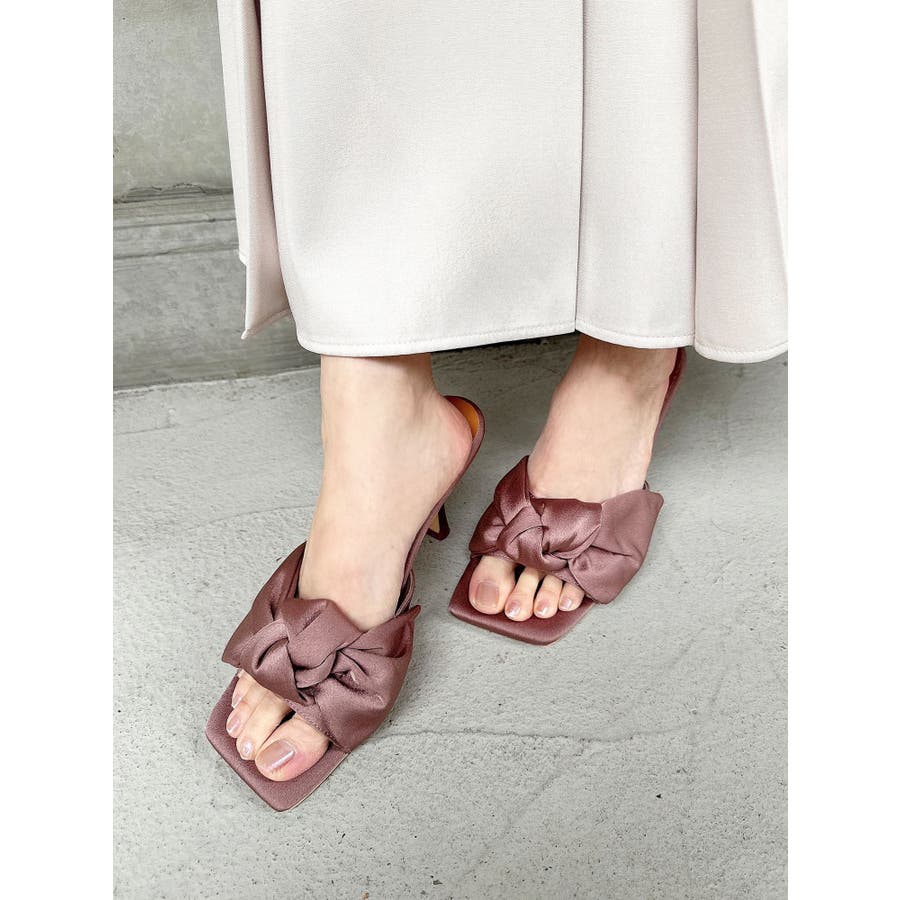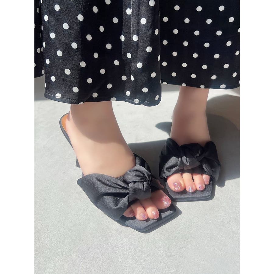 大きなリボンモチーフをフロントにあしらったサンダル▽デザイン▽存在感のあるリボンと華奢なピンヒールを組み合わせたデザイン性のある1足。つま先のラインはスクエアトゥでシャープに仕上げてモードな雰囲気もプラスしました。サテン生地にしたことで高級感もあり、スタイリングのアクセントに。デザイン性だけでなく、歩きやすいよう低めのピンヒールにこだわりました。デニム合わせなどの普段使いからパーティーシーンまで、幅広いシーンでお使いいただけます。▽カラー▽黒・ピンクの2色展開。【スタッフ着用レビュー】スタッフD(普段のサイズ: 24.0cm/足の幅: 9.5cm/甲の高さ: 5.2cm/ふくらはぎ周り:31.5cm)Lサイズ着用がジャストサイズでした!足幅もぴったりでホールドされるので歩きやすいです。