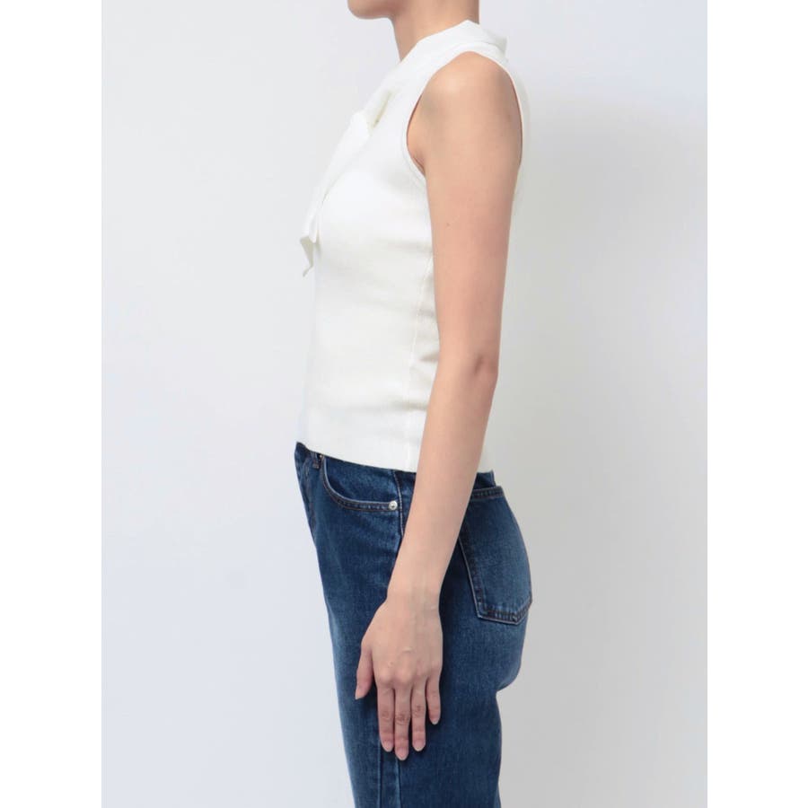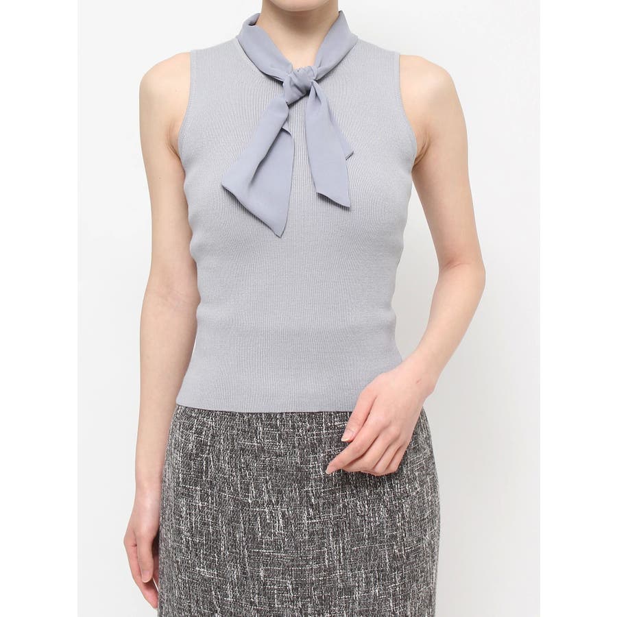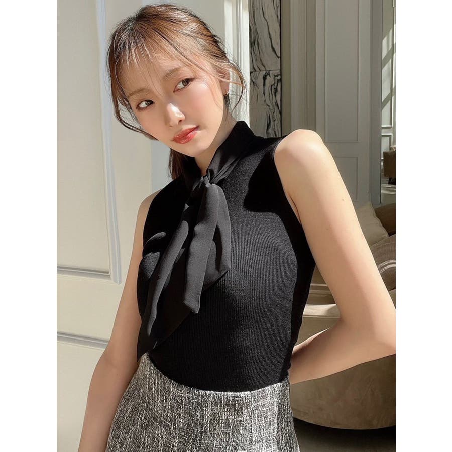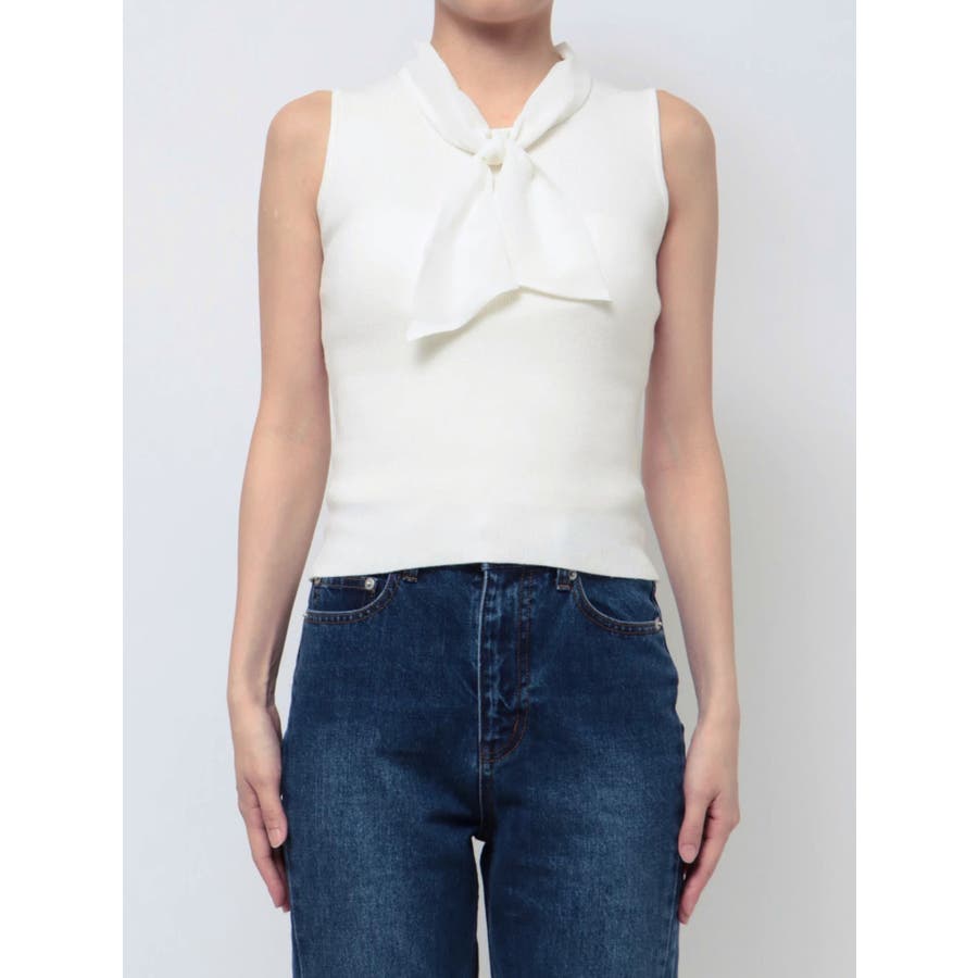 ノースリーブボウタイニットトップス