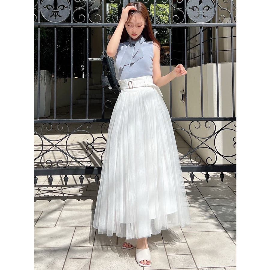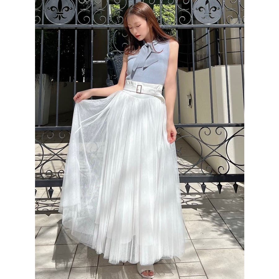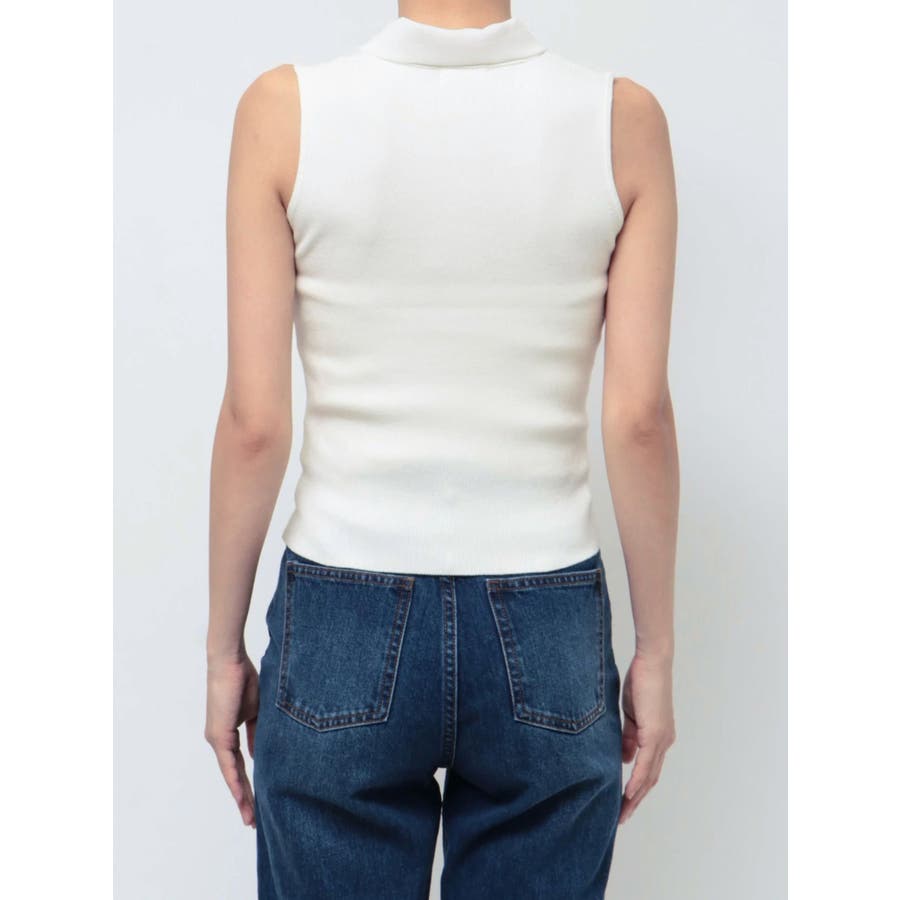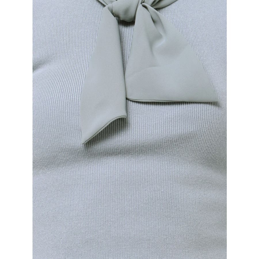 ノースリーブボウタイニットトップス