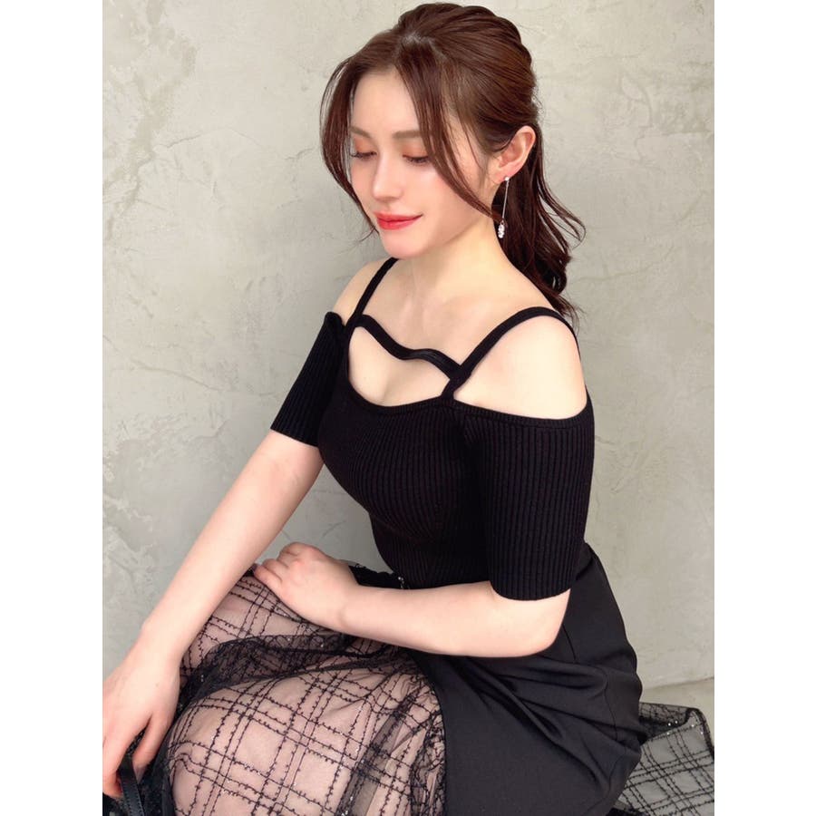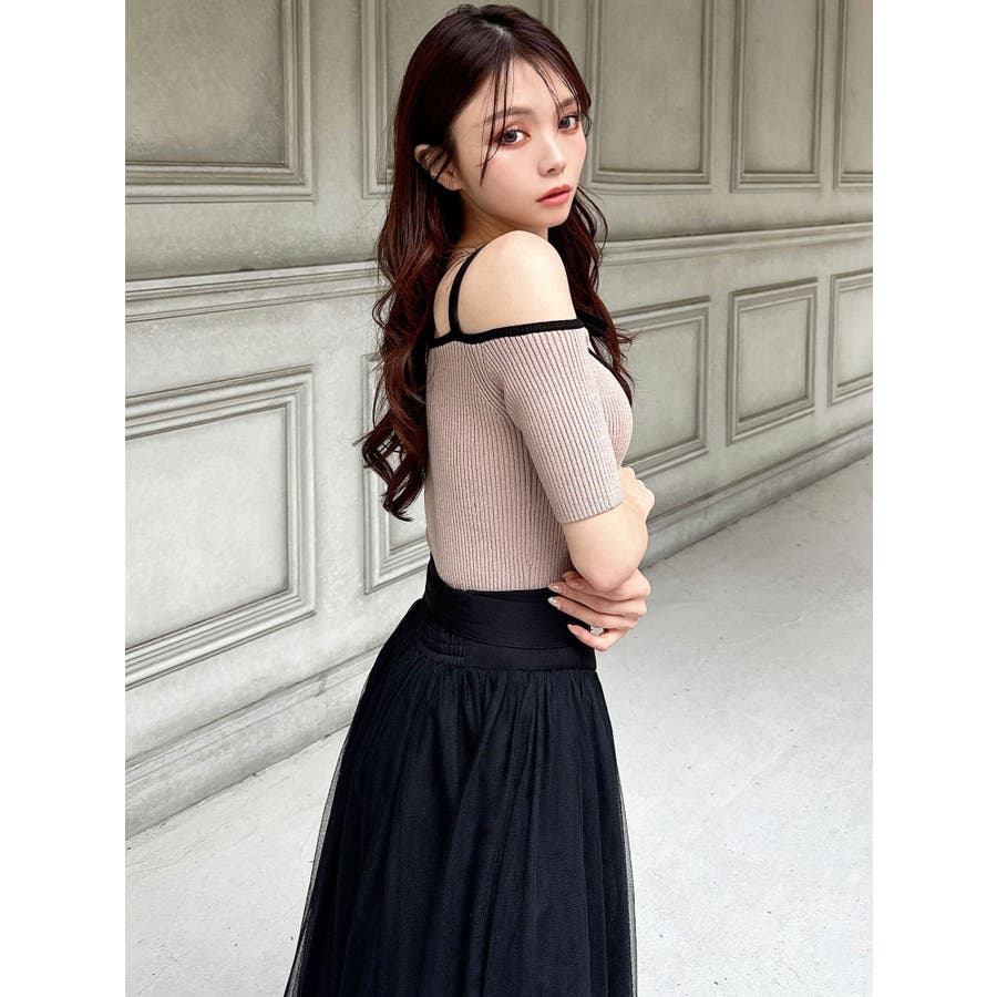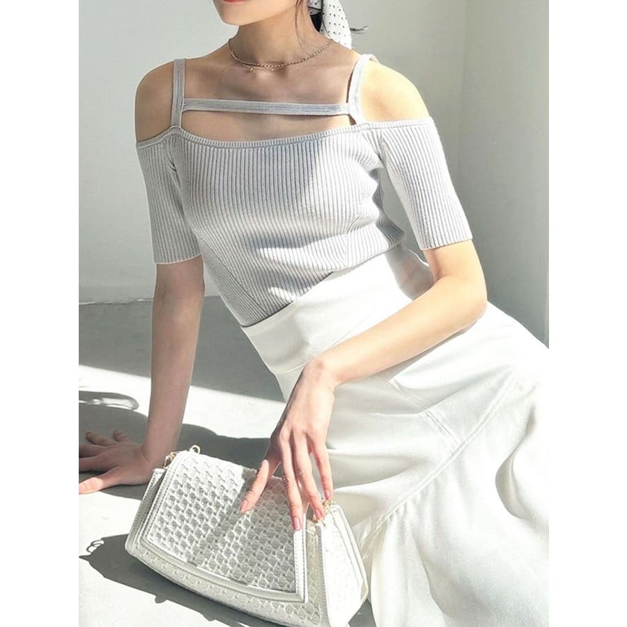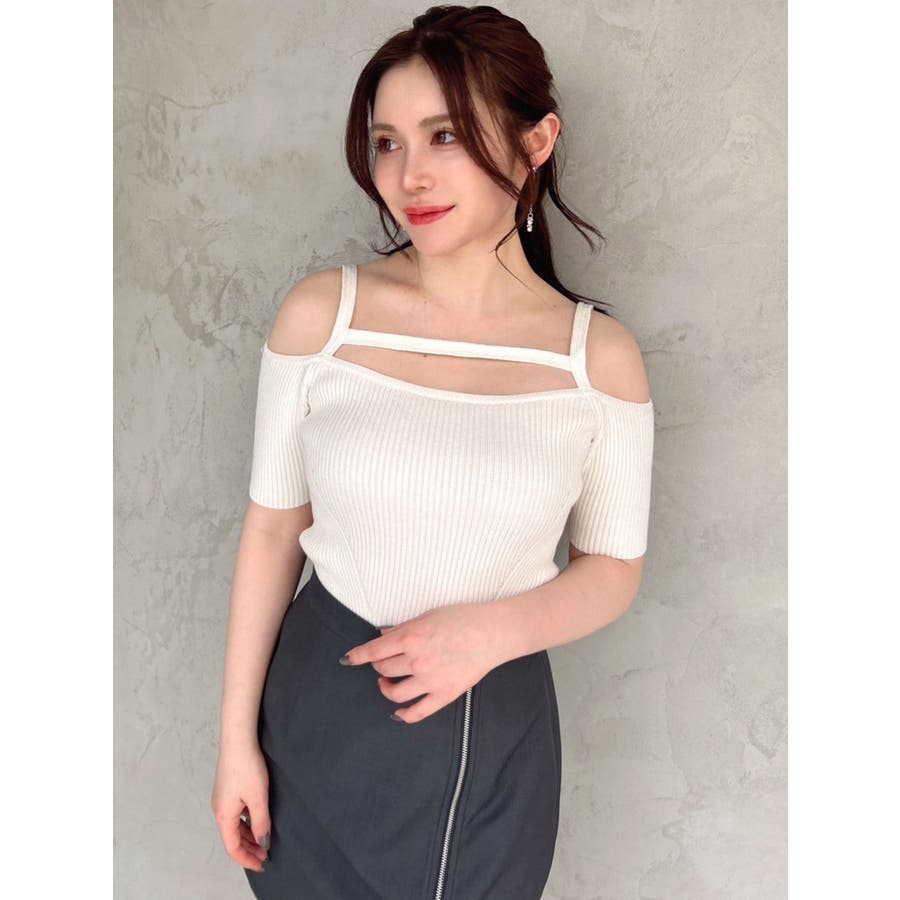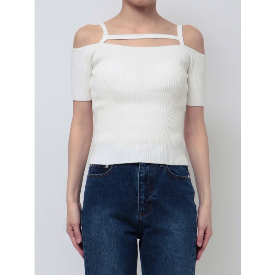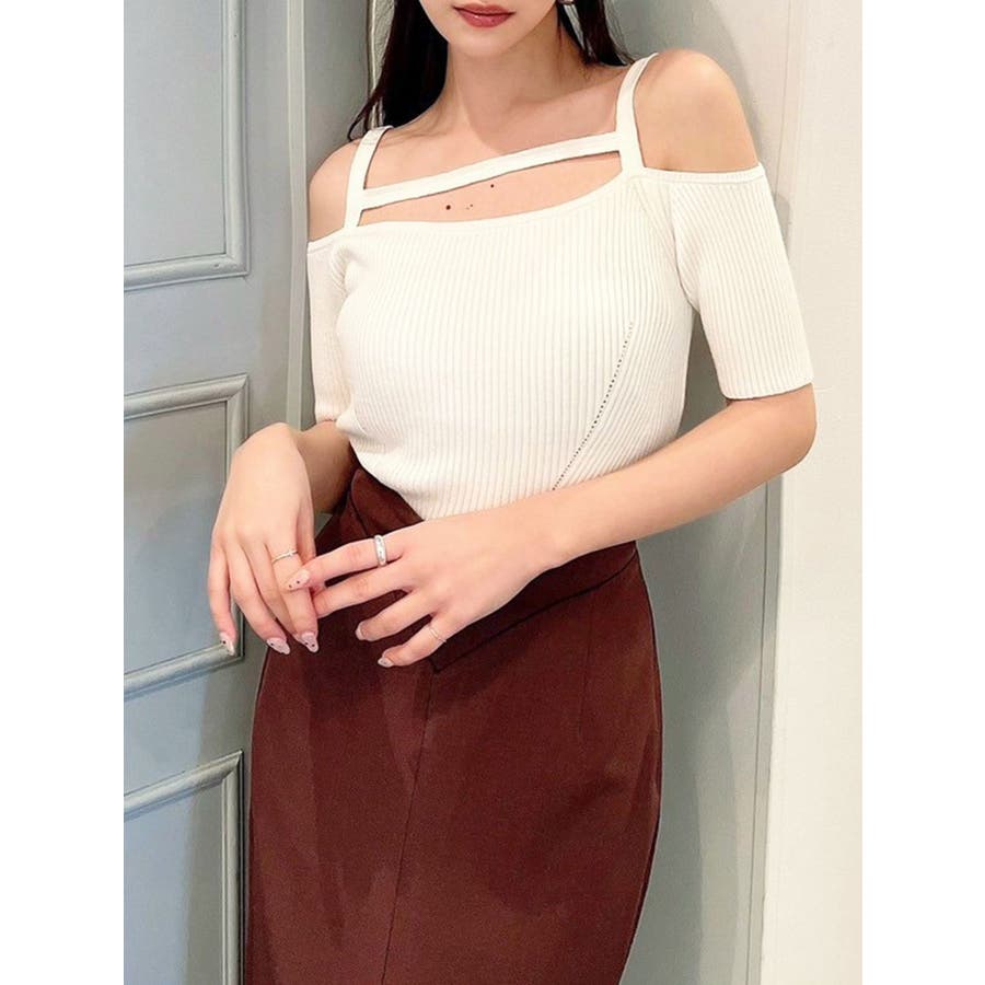 ストリングデザインニットトップス