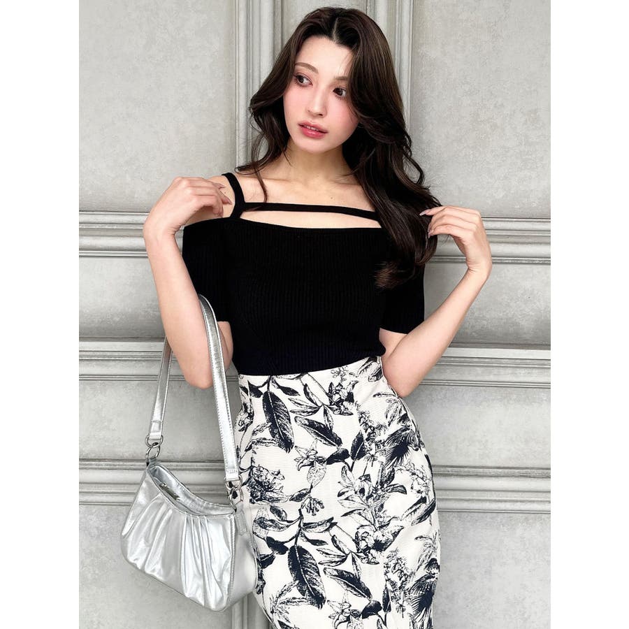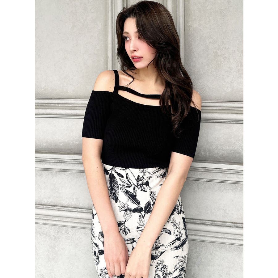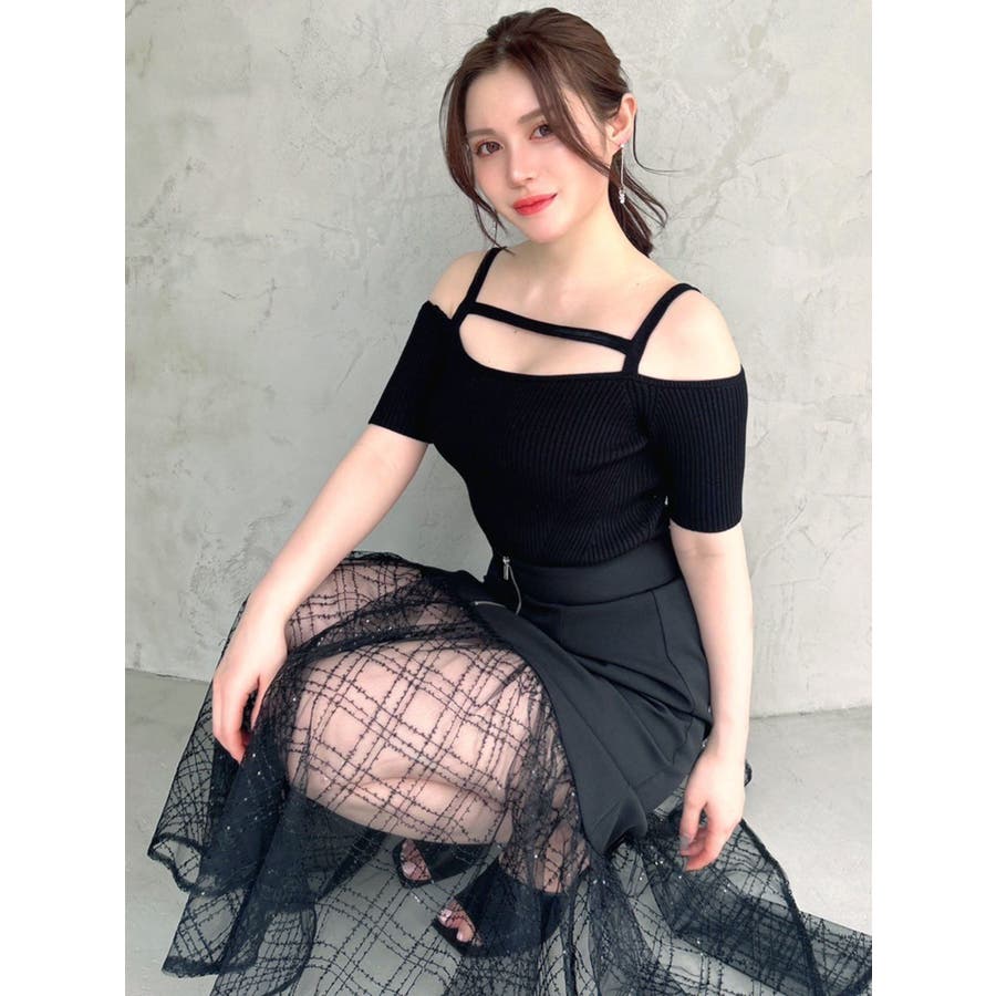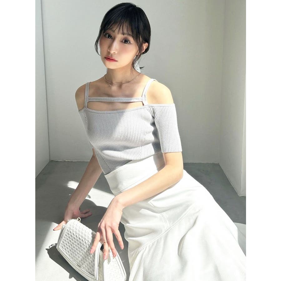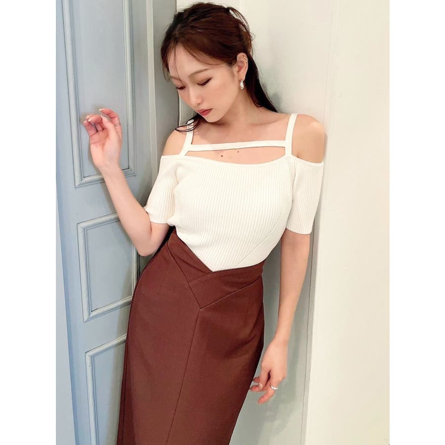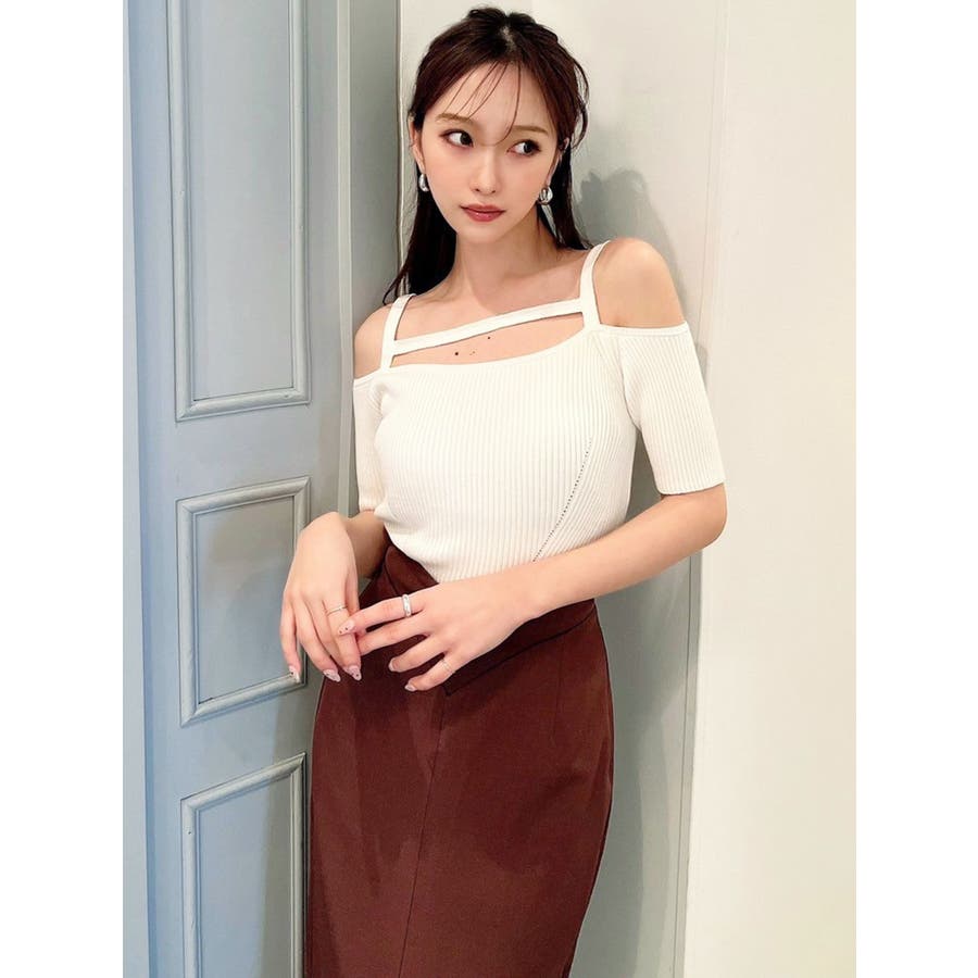 ストリングデザインニットトップス