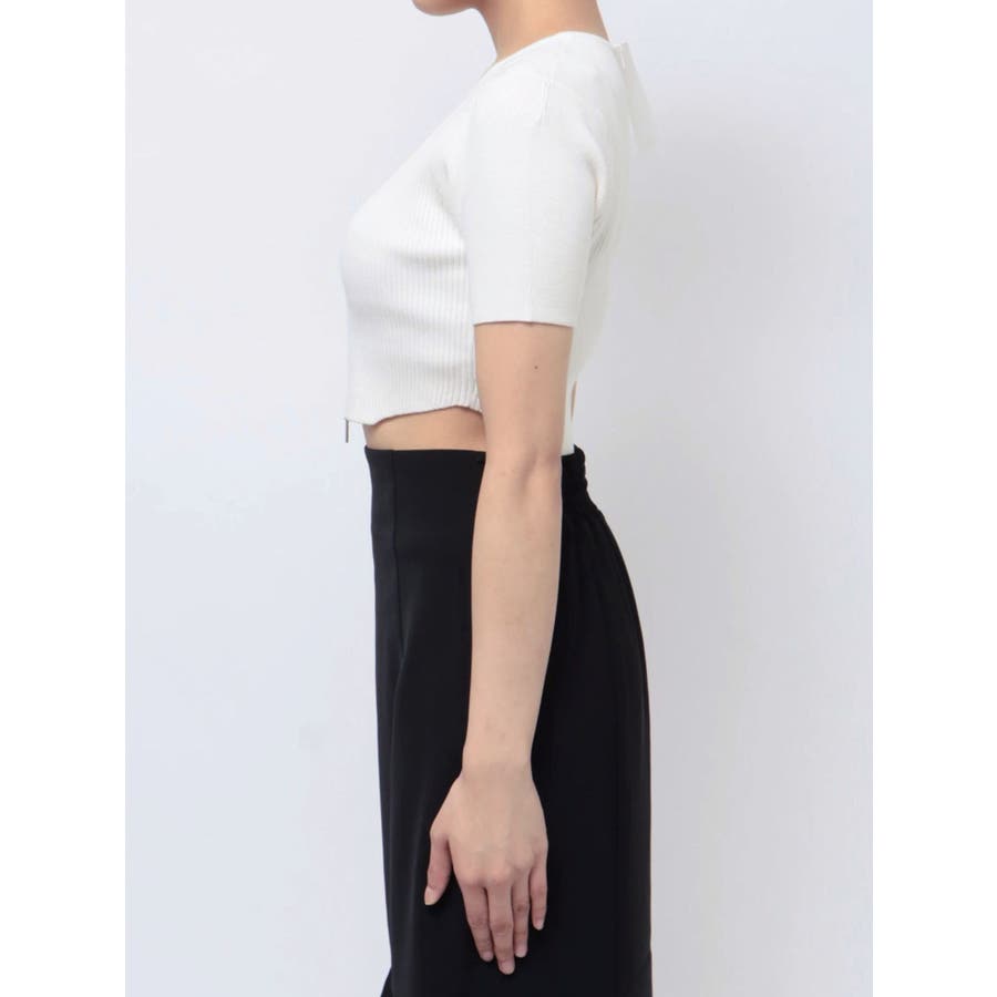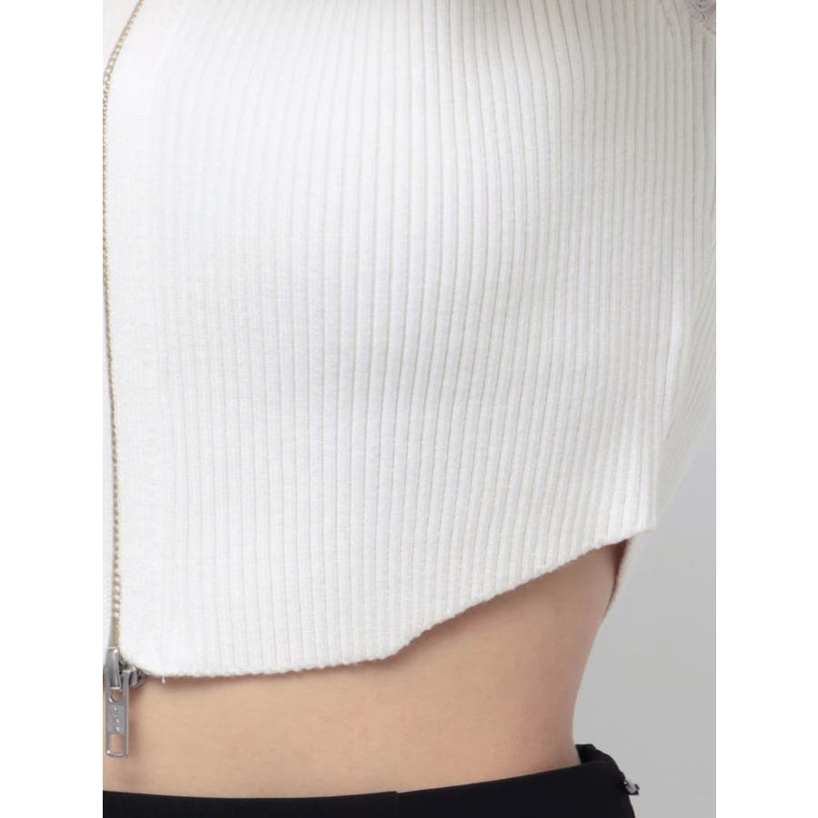 ジップデザインクロップドニットトップス