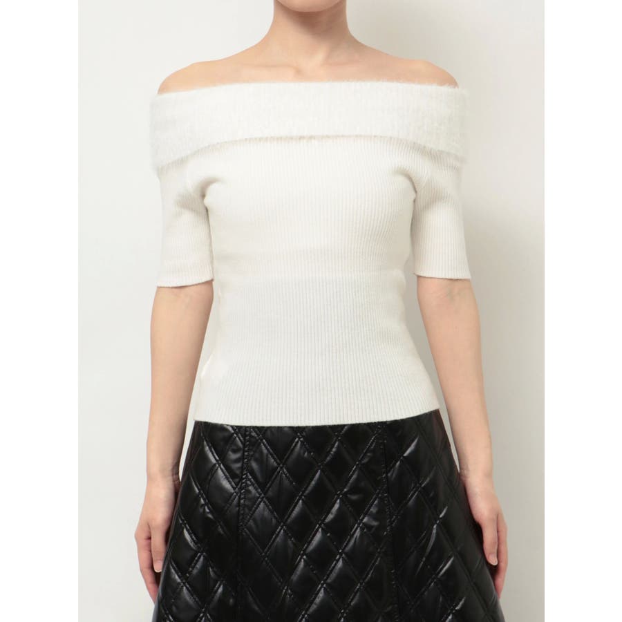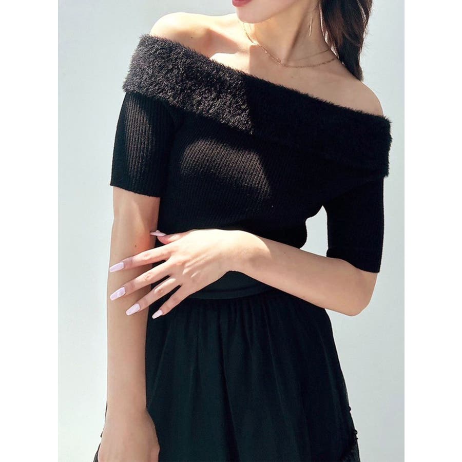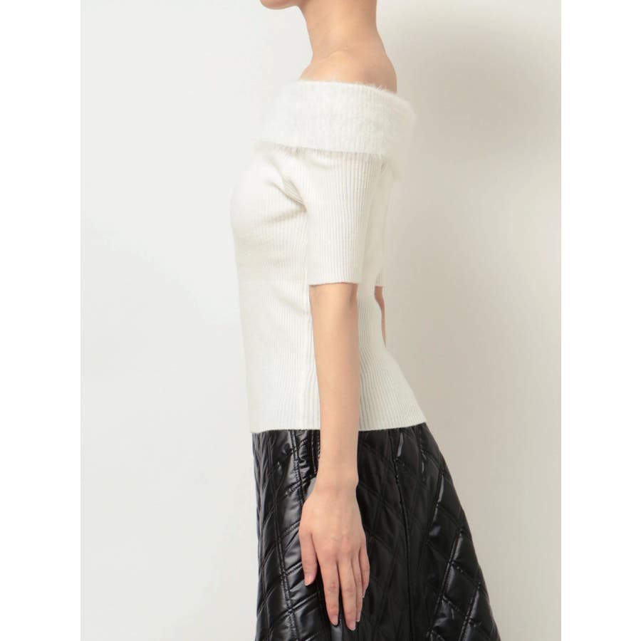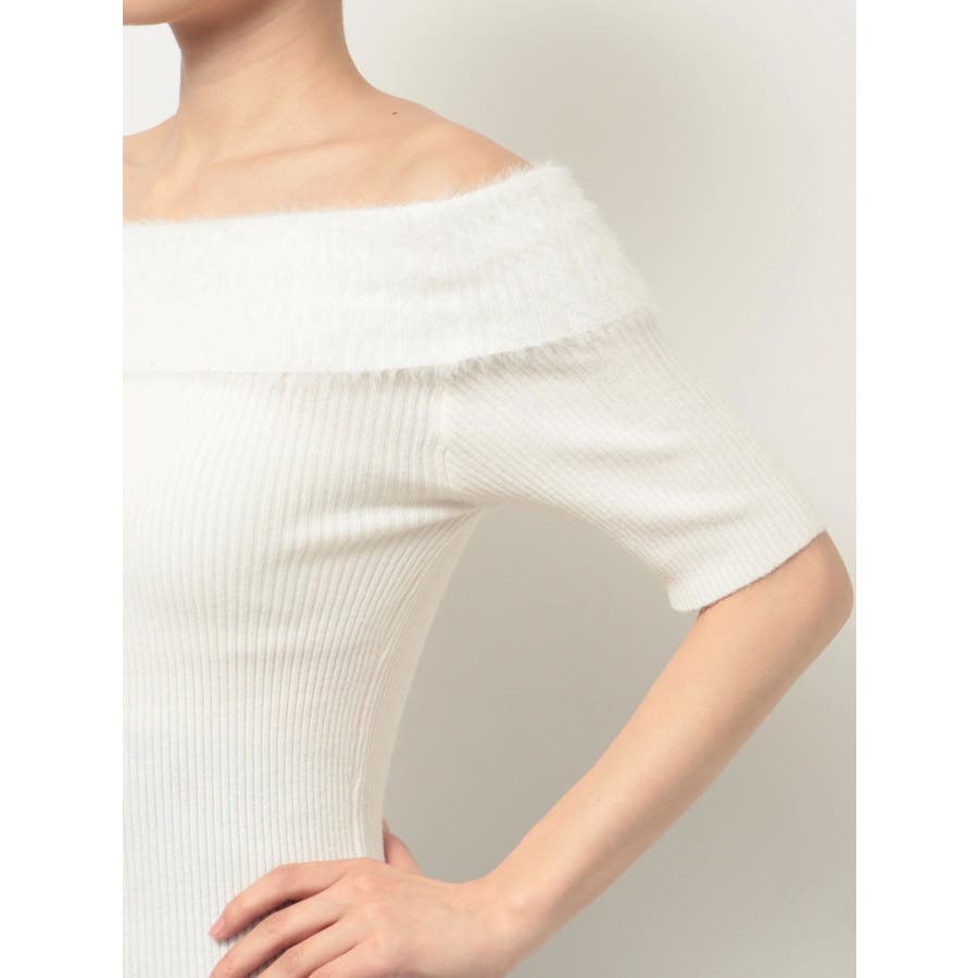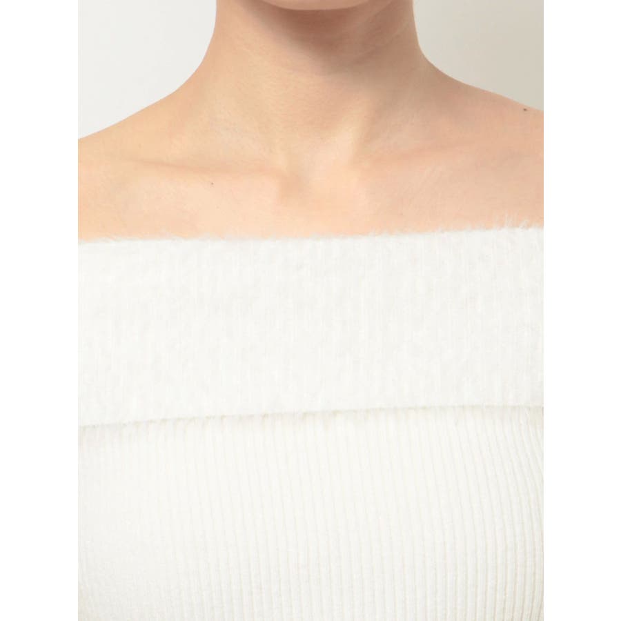 シャギーコンビオフショルニットトップス