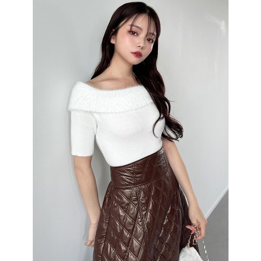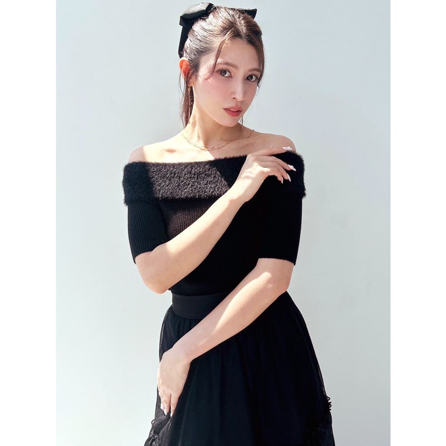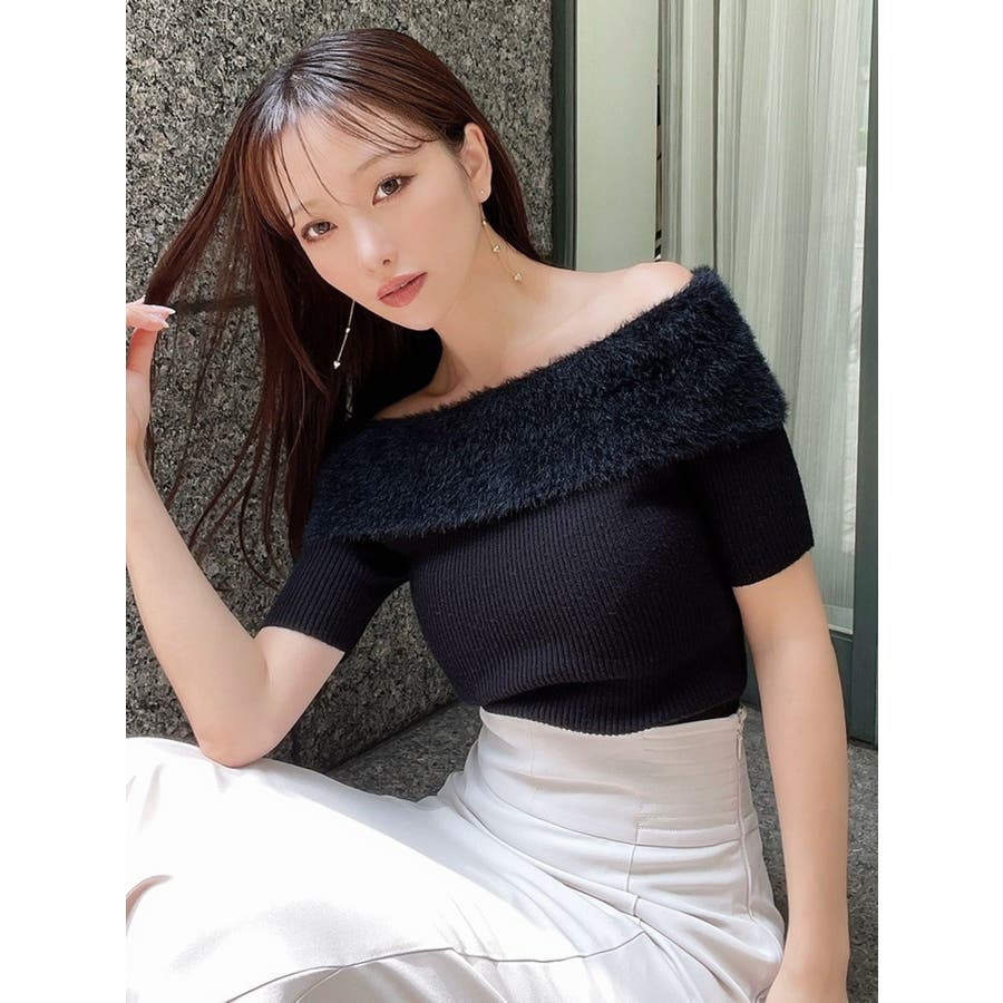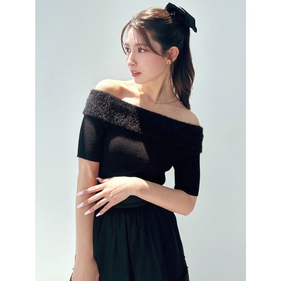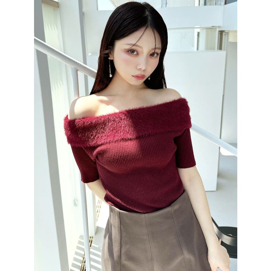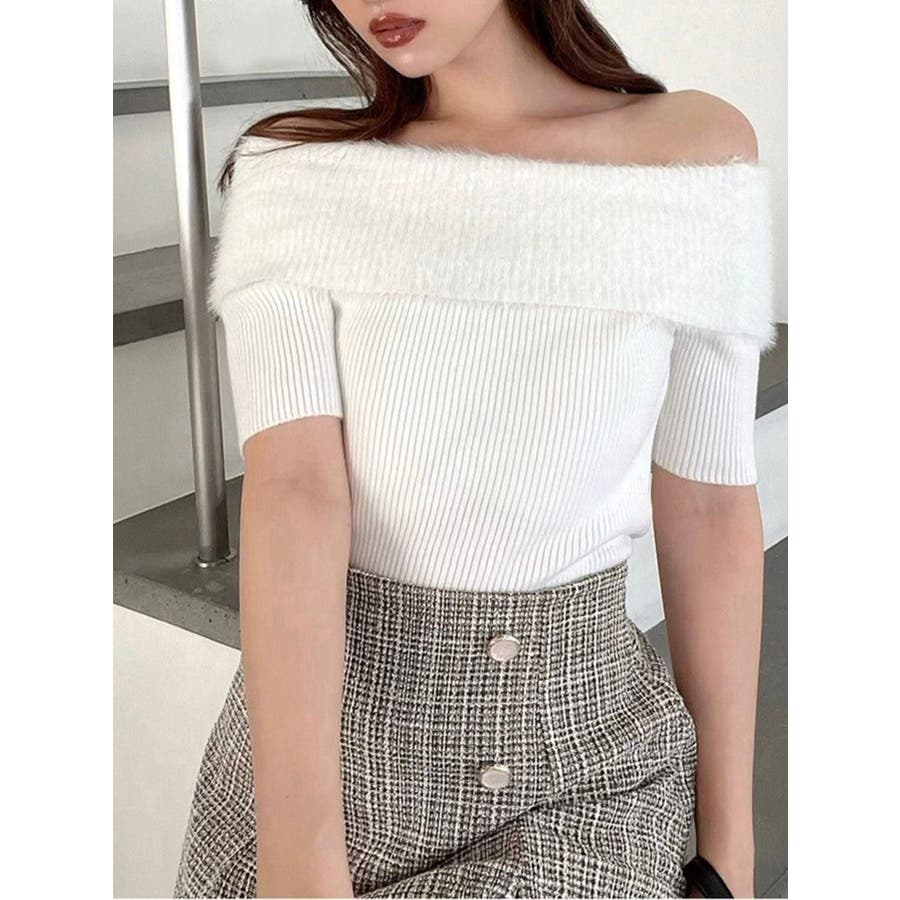 シャギーコンビオフショルニットトップス