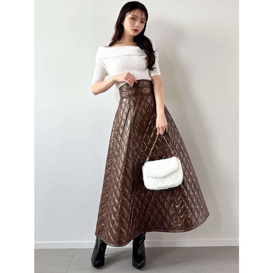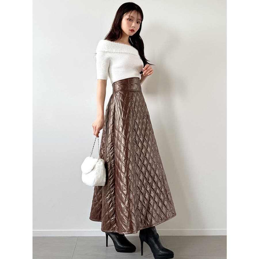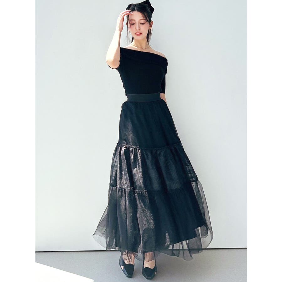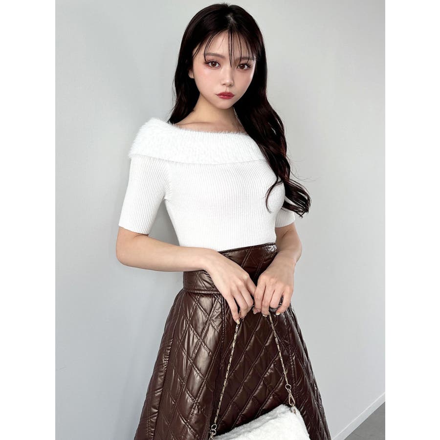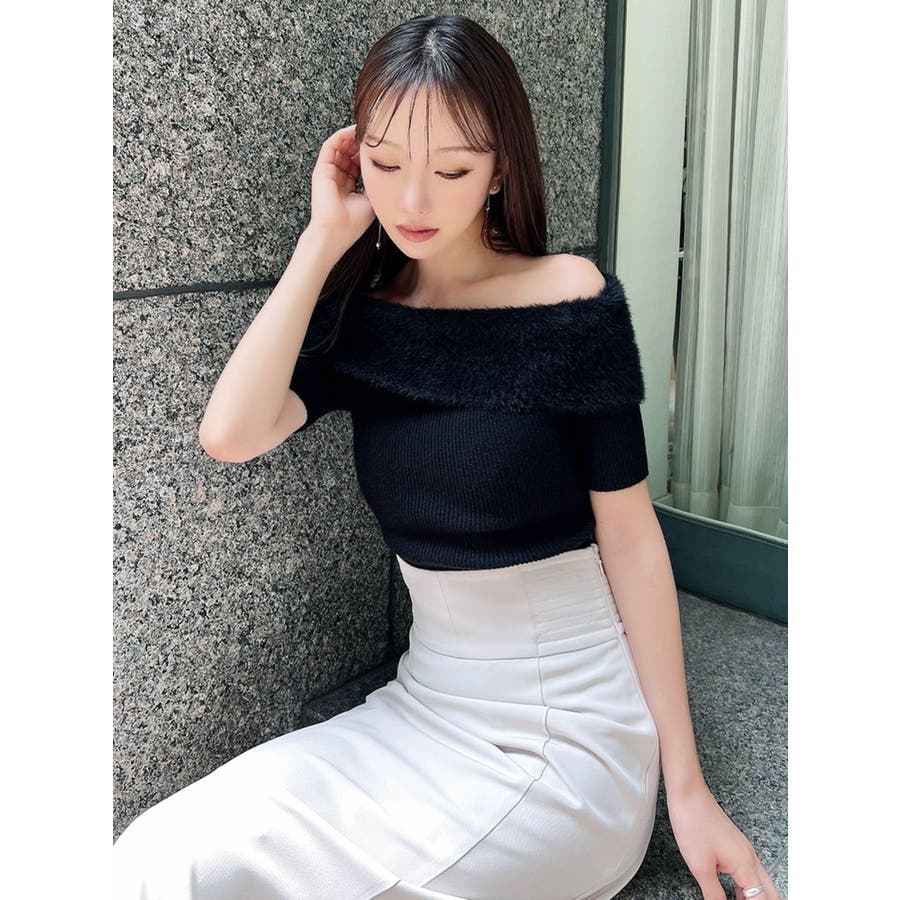 シャギーコンビオフショルニットトップス