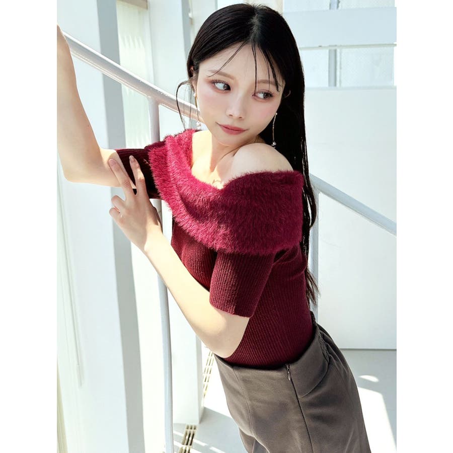 異素材ドッキングと肌見せがポイントのニット▽デザイン▽起毛感あるシャギーをリブ編みと組み合わせた異素材感が可愛いニット♪オフショルニットなのでデコルテが綺麗に見え、女性らしさUPすること間違いなしの1着。リブニット素材なのでボディに沿ったシルエットでタイトな印象に仕上げます。袖丈は長めなので気になる二の腕周りもしっかりカバー。▽カラー▽白・黒・赤の3色展開。▽スタイリング▽形はベーシックなのでボトムも選ばずスタイリングが組みやすい万能ニット。ハイウエストボトムにインしてコンパクトにまとめるのがオススメ!※着用画像はフラッシュの加減で実際の製品と色味等が異なる場合がございますので、生地のズームアップ画像をご確認ください。※ご利用の端末画面の設定により実際の商品と色味が異なる場合がございます。【商品特徴】透け感:なし伸縮性:あり生地の厚さ:普通サイズ感:細身裏地:なしポケット:なし