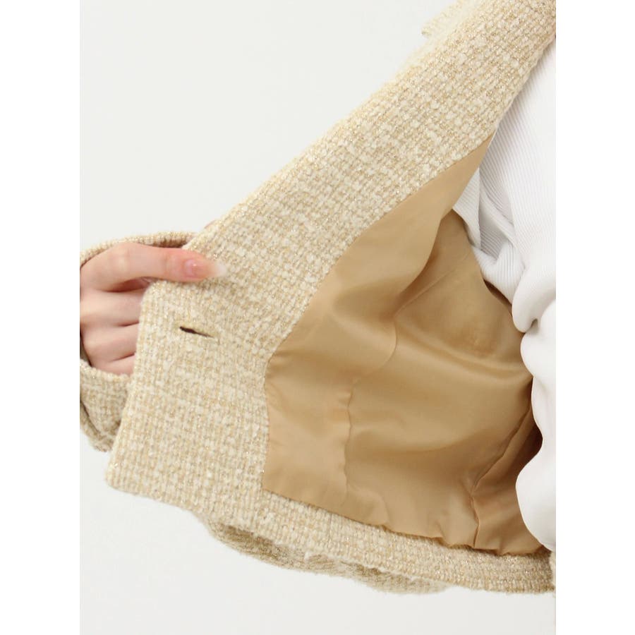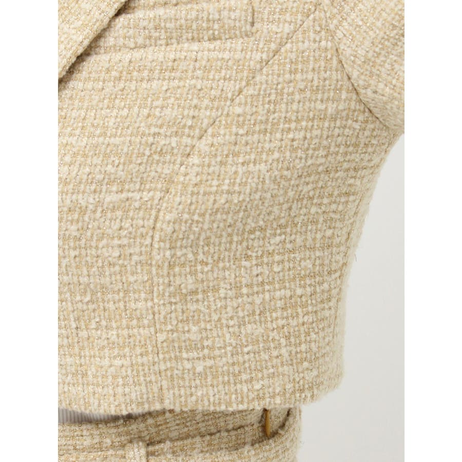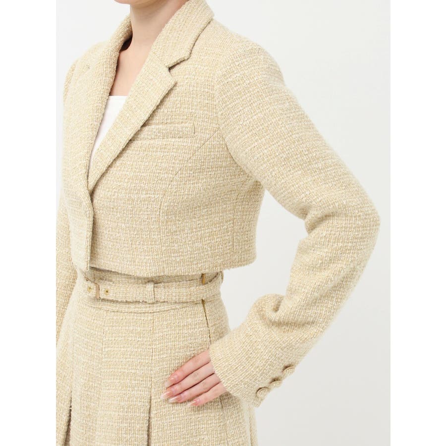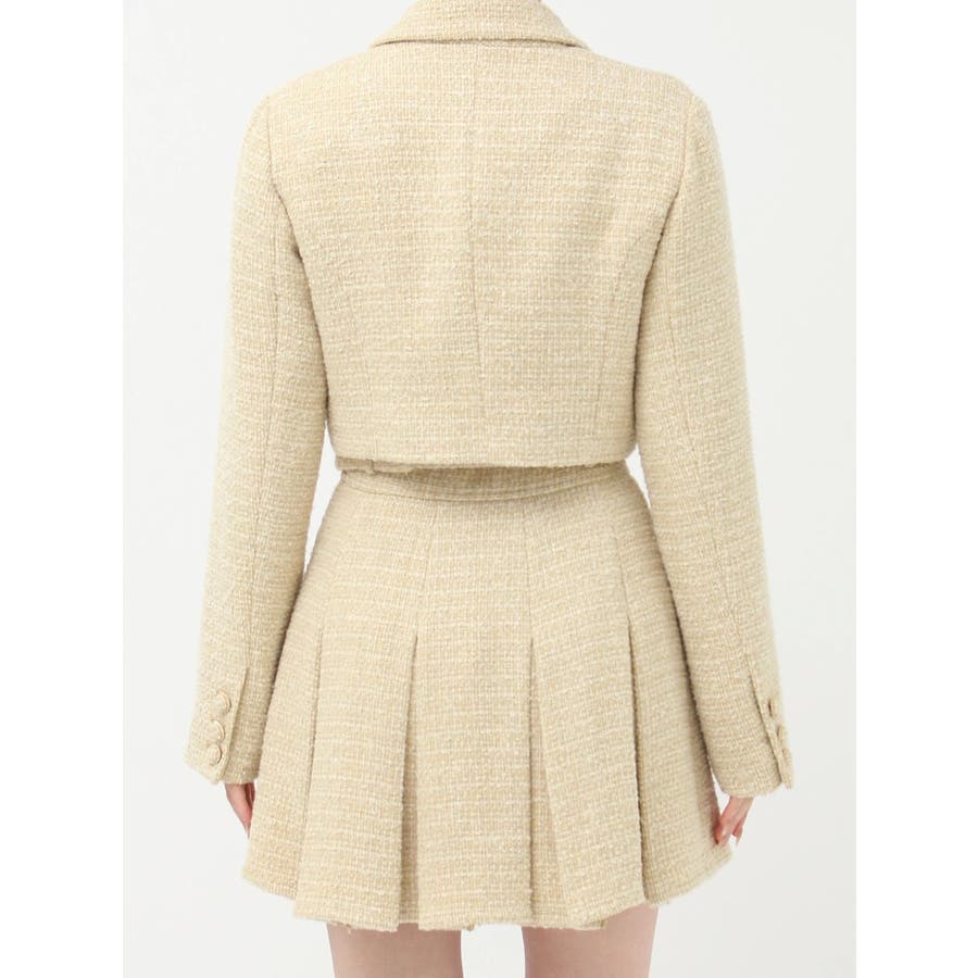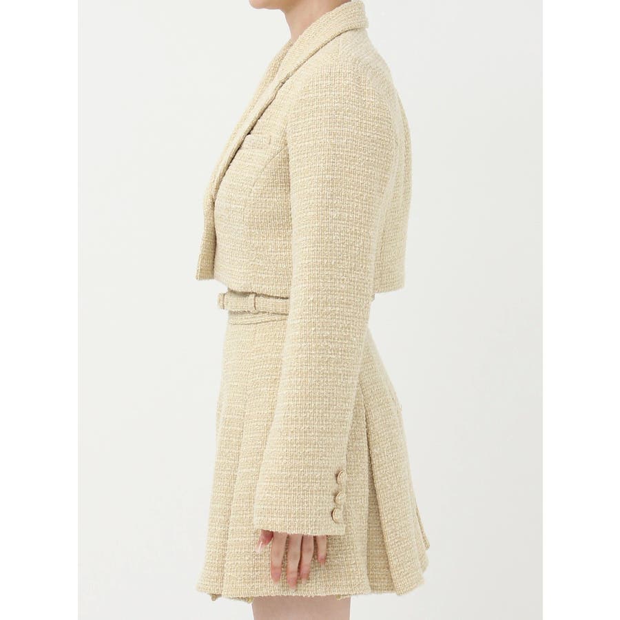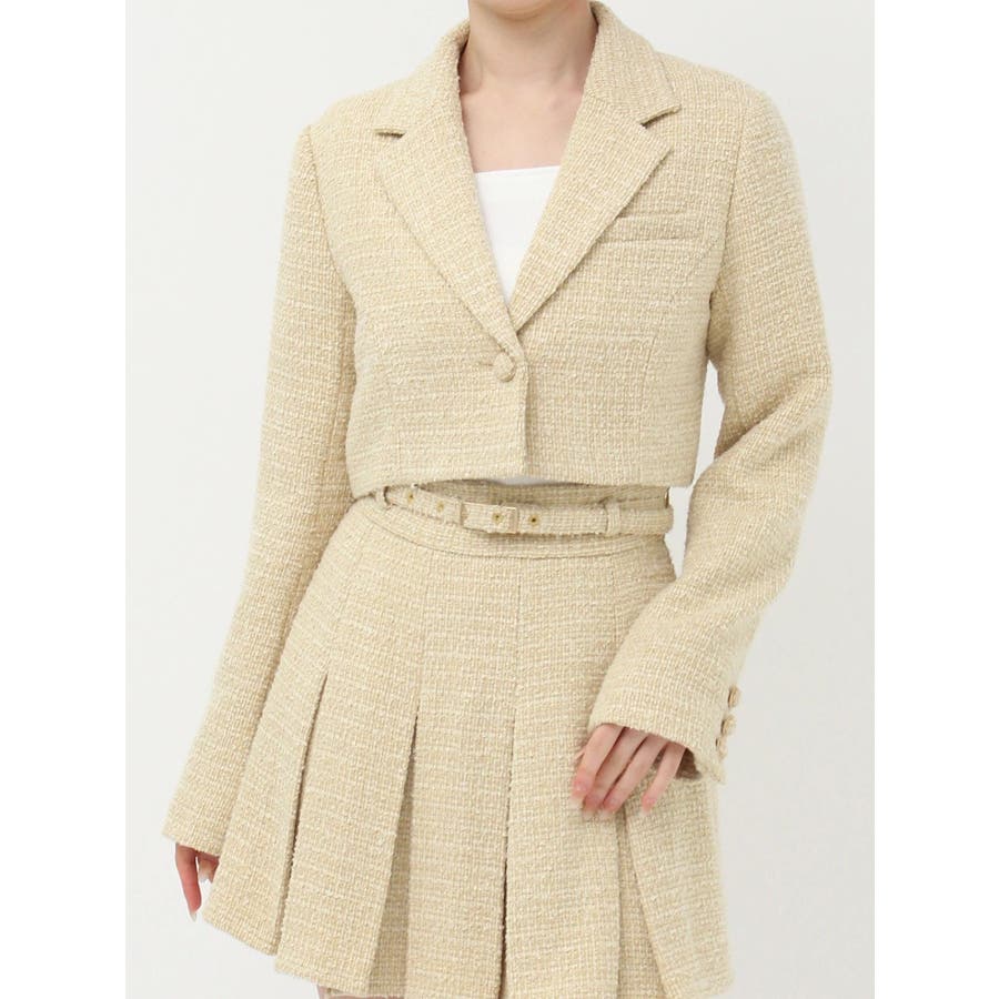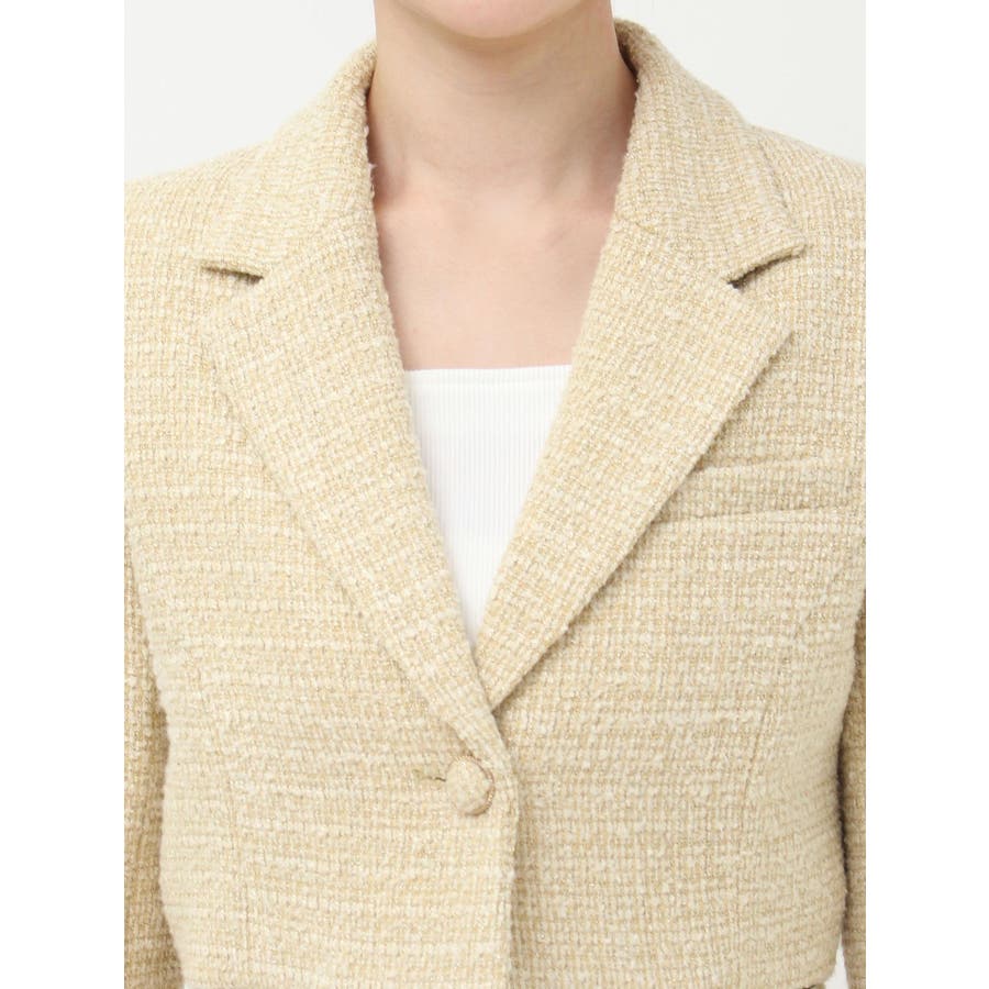 コンパクトなサイズ感でスタイルアップできるジャケット▽デザイン▽トレンドのクロップド丈でコンパクトなサイジングがポイント◎ツイードデザインが高級感があり、上品な着こなしが叶います。しっかりとした生地感で秋口や春先にピッタリの1枚。▽カラー▽黒・青・黄色の3色展開。▽スタイリング▽同素材のミニスカートと合わせればセットアップとして着用可能◎クロップド丈のジャケットなのでワンピースやスカートとも好相性!【セットアップアイテムはコチラ】152450851601:ツイードプリーツミニスカート※着用画像はフラッシュの加減で実際の製品と色味等が異なる場合がございますので、生地のズームアップ画像をご確認ください。※ご利用の端末画面の設定により実際の商品と色味が異なる場合がございます。【商品特徴】透け感:なし伸縮性:なし生地の厚さ:普通サイズ感:普通裏地:ありポケット:なし