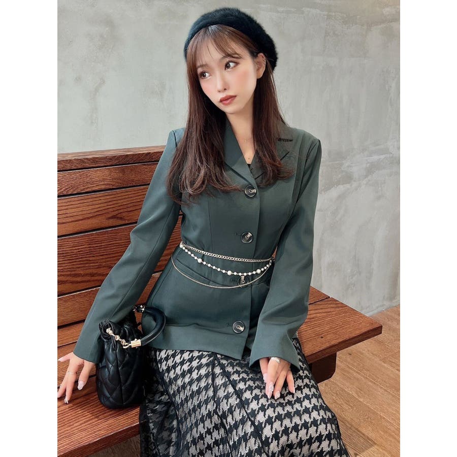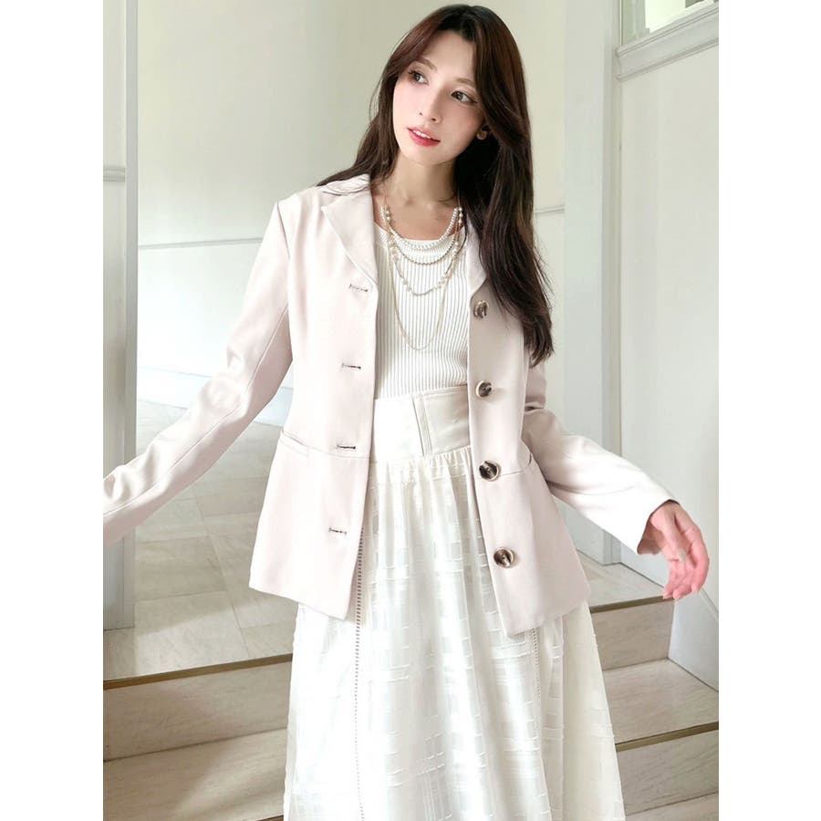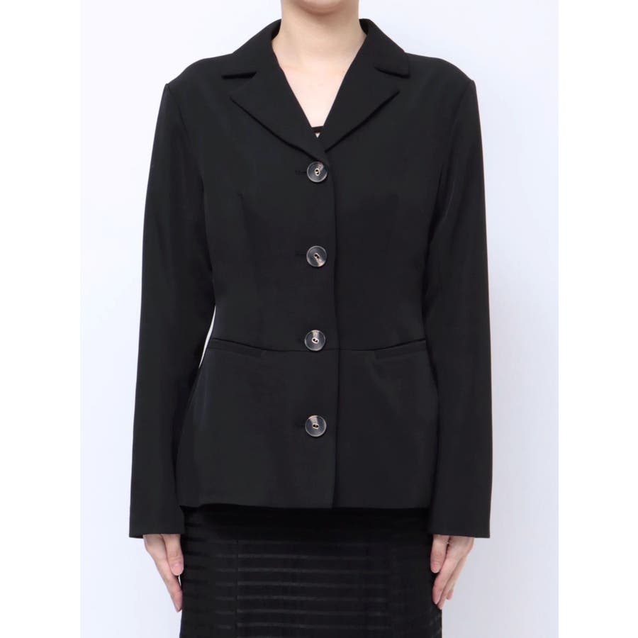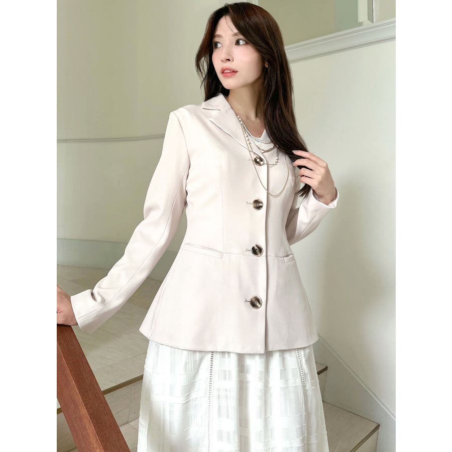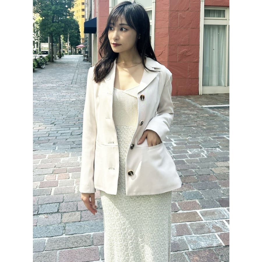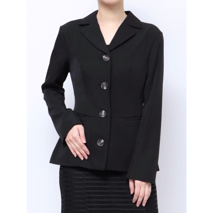 前を閉めるとペプラムシルエットになり、さりげなく女性らしさUP。