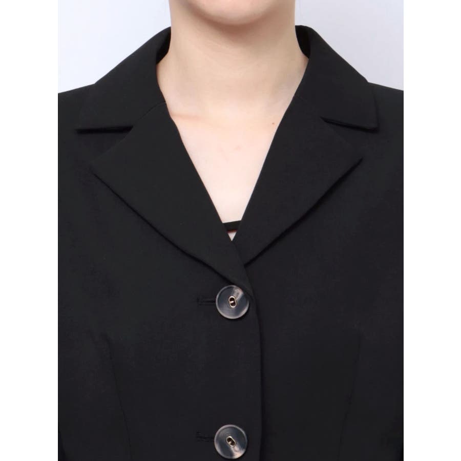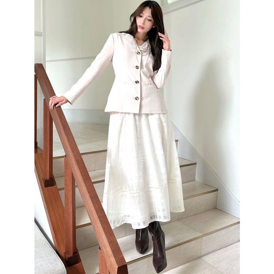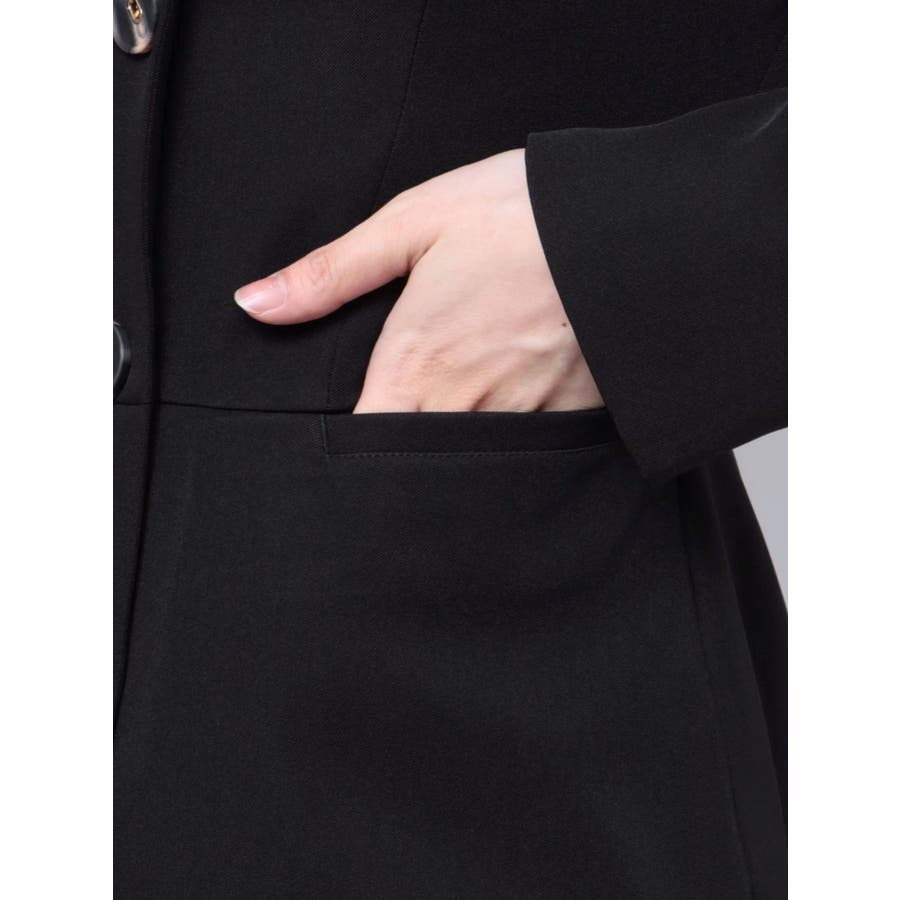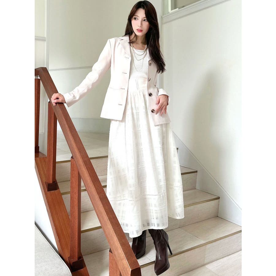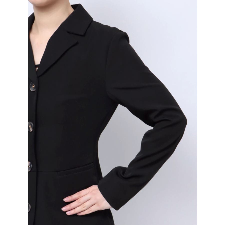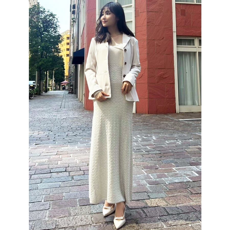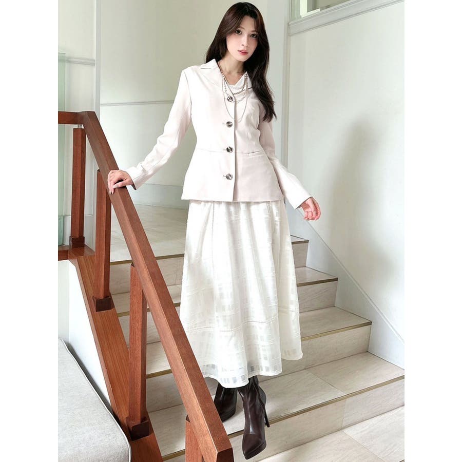 前を閉めるとペプラムシルエットになり、さりげなく女性らしさUP。