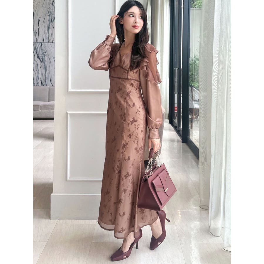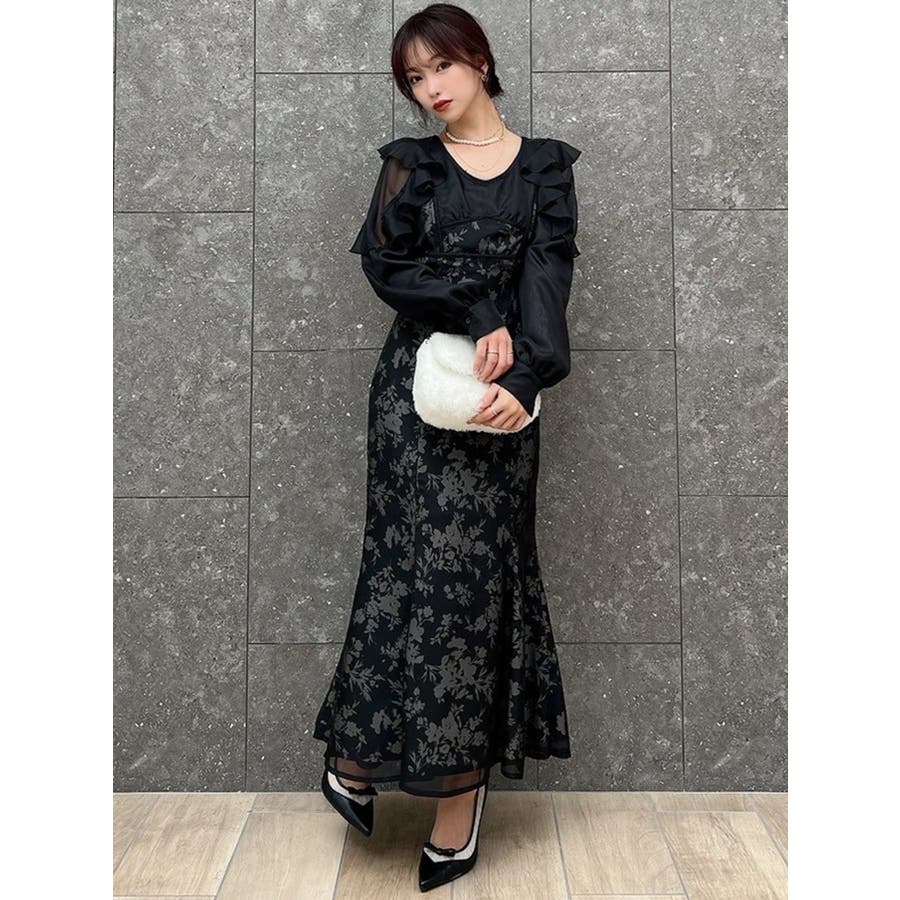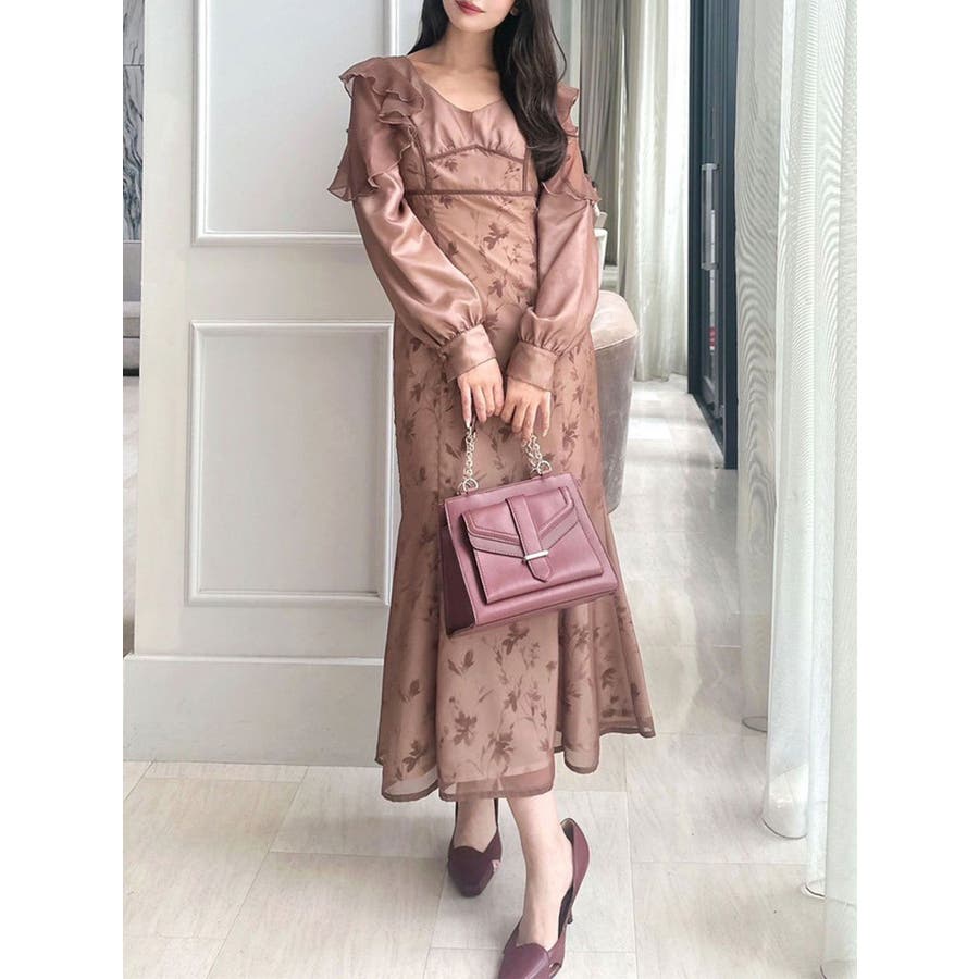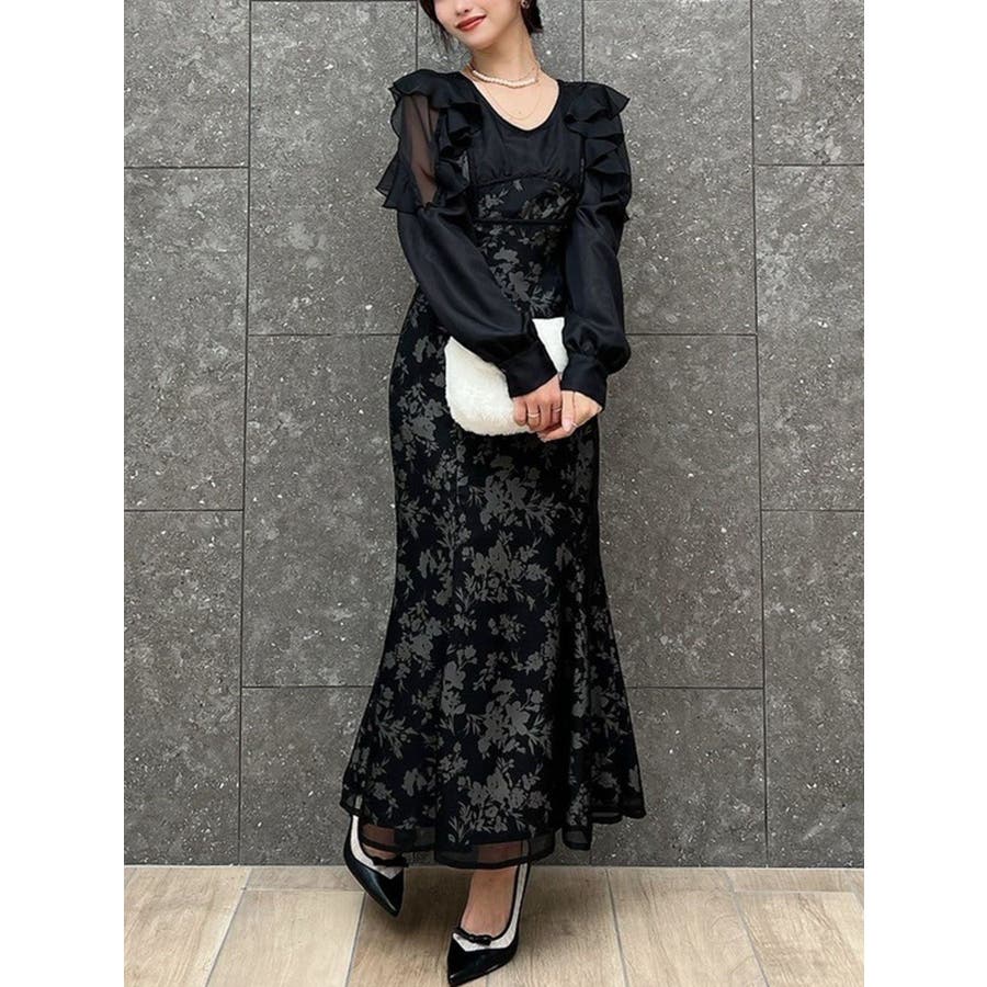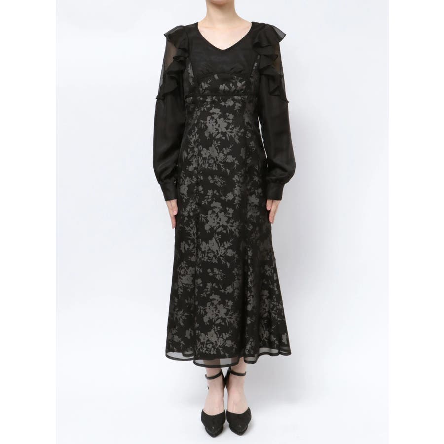 女性らしい着こなしが1枚で叶うワンピース▽デザイン▽フラワーデザインが上品で、さり気ないシアー感が魅力◎バスト下に切り替えをほどこしたことで1枚でスタイルアップが叶います。ショルダーはフリルデザインにしたことで顔周りを華やかに。マーメイドシルエットが女性らしさをプラスします。▽カラー▽黒・青・ブラウンの3色展開。▽スタイリング▽1枚で上品なキレイ目スタイリングが完成します。シューズや小物もキレイめなアイテムでまとめるのがオススメ!デイリーはもちろん、結婚式やパーティーなどオケージョンシーンにもピッタリのアイテムです。※着用画像はフラッシュの加減で実際の製品と色味等が異なる場合がございますので、生地のズームアップ画像をご確認ください。※ご利用の端末画面の設定により実際の商品と色味が異なる場合がございます。【商品特徴】透け感:なし伸縮性:なし生地の厚さ:普通サイズ感:普通裏地:ありポケット:なしファスナー:あり(後)
