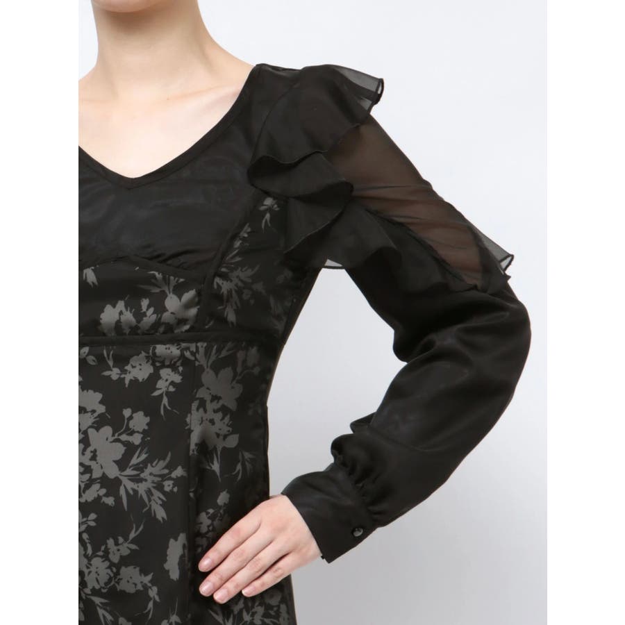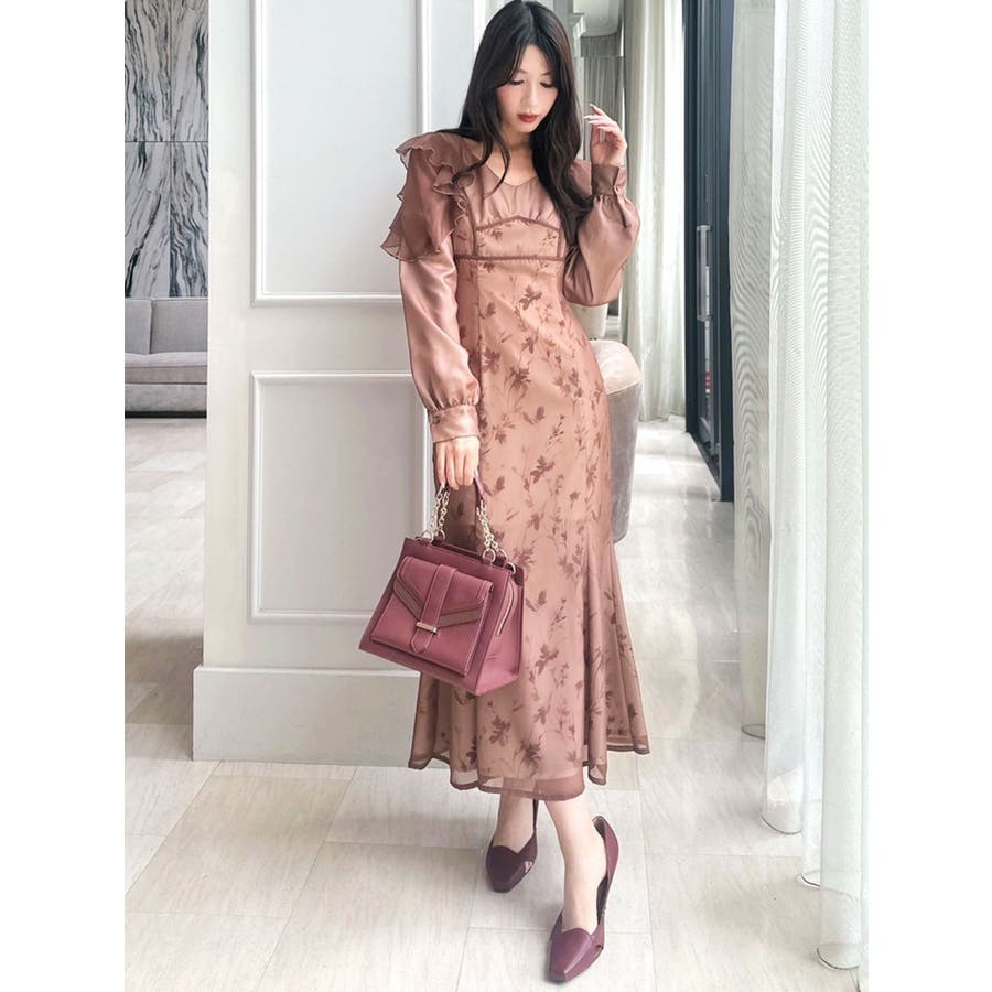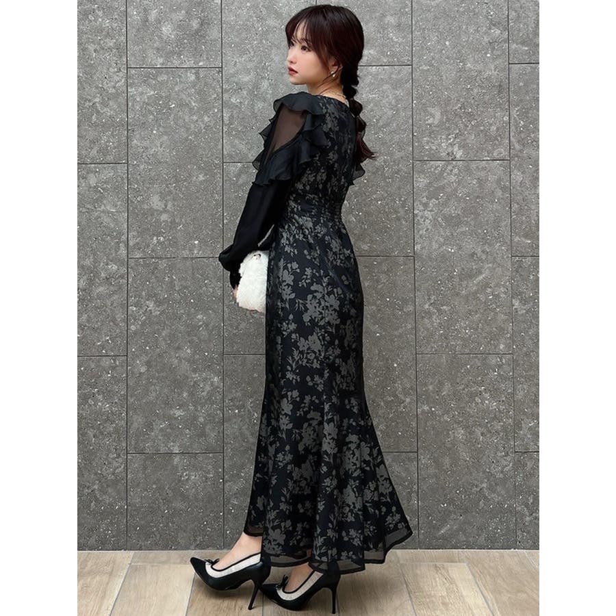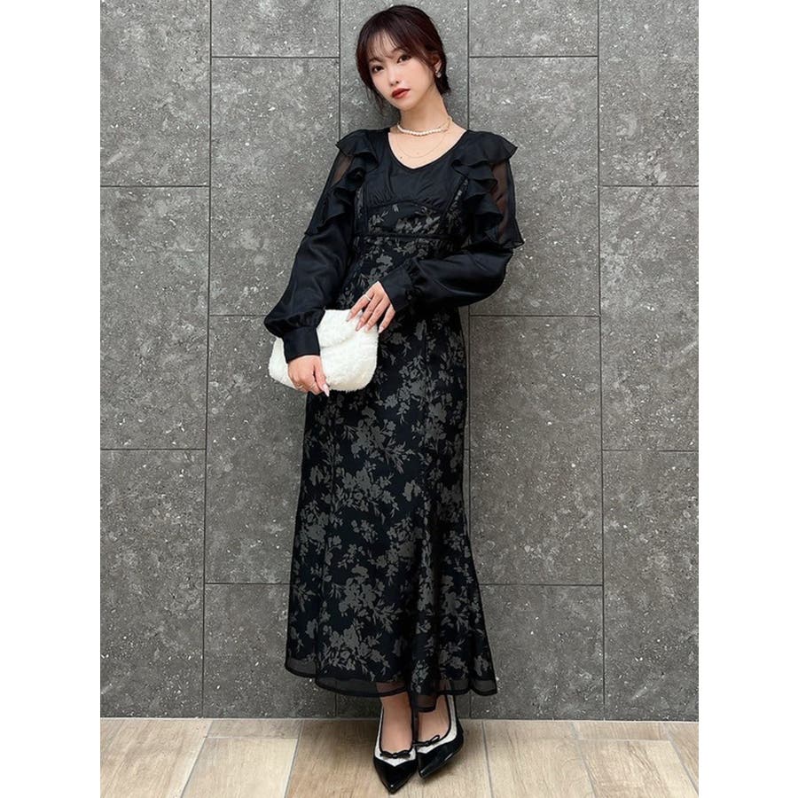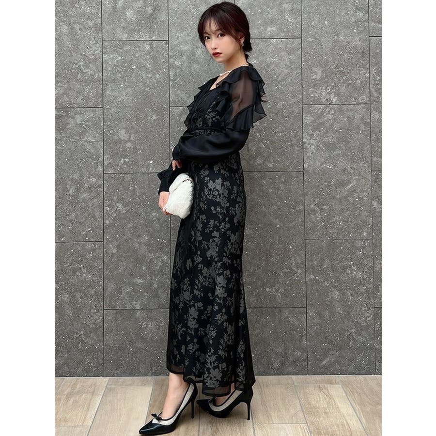 女性らしい着こなしが1枚で叶うワンピース▽デザイン▽フラワーデザインが上品で、さり気ないシアー感が魅力◎バスト下に切り替えをほどこしたことで1枚でスタイルアップが叶います。ショルダーはフリルデザインにしたことで顔周りを華やかに。マーメイドシルエットが女性らしさをプラスします。▽カラー▽黒・青・ブラウンの3色展開。▽スタイリング▽1枚で上品なキレイ目スタイリングが完成します。シューズや小物もキレイめなアイテムでまとめるのがオススメ!デイリーはもちろん、結婚式やパーティーなどオケージョンシーンにもピッタリのアイテムです。※着用画像はフラッシュの加減で実際の製品と色味等が異なる場合がございますので、生地のズームアップ画像をご確認ください。※ご利用の端末画面の設定により実際の商品と色味が異なる場合がございます。【商品特徴】透け感:なし伸縮性:なし生地の厚さ:普通サイズ感:普通裏地:ありポケット:なしファスナー:あり(後)