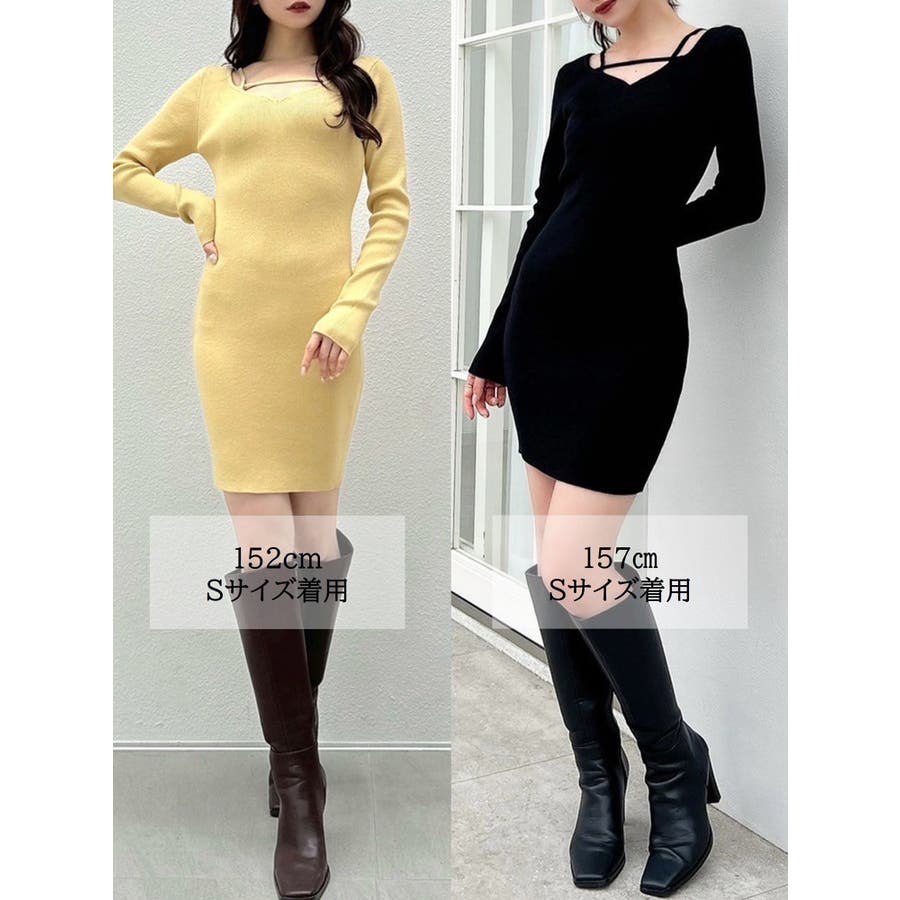 スタイルアップを叶えるタイトワンピース▽デザイン▽ウエストや腰まわりをすっきりさせたコンパクトなシルエットに、ストラップデザインを入れてこなれた雰囲気に仕上げました。顔周りがすっきり見えるネックデザインがポイント◎リブニット素材で伸縮性があり着やすく、ボディに沿った美シルエットを演出。S・Mの2サイズ展開で雰囲気も変わるのでサイズ違い、色違いでのGETもオススメ!▽カラー▽黒・ベージュのベーシックカラーと、トレンドカラーの黄色の3色展開。▽スタイリング▽1枚でサラッと着れてキレイ目コーデが完成◎タイトシルエットなので1枚での着用はもちろんジャケットやコートなどどんなアウターにもマッチするので着回し抜群!※Sサイズは膝上のミニ丈、Mサイズは膝下のミディ丈となります。ご購入の際はお間違い無いようご注意ください。※着用画像はフラッシュの加減で実際の製品と色味等が異なる場合がございますので、生地のズームアップ画像をご確認ください。※ご利用の端末画面の設定により実際の商品と色味が異なる場合がございます。【商品特徴】透け感:なし伸縮性:あり生地の厚さ:普通サイズ感:細身裏地:なしポケット:なしファスナー:なし
