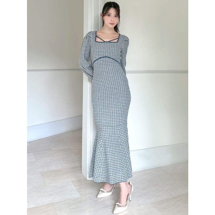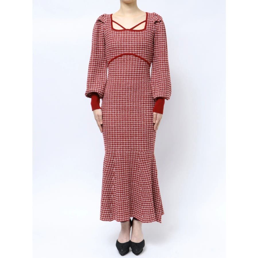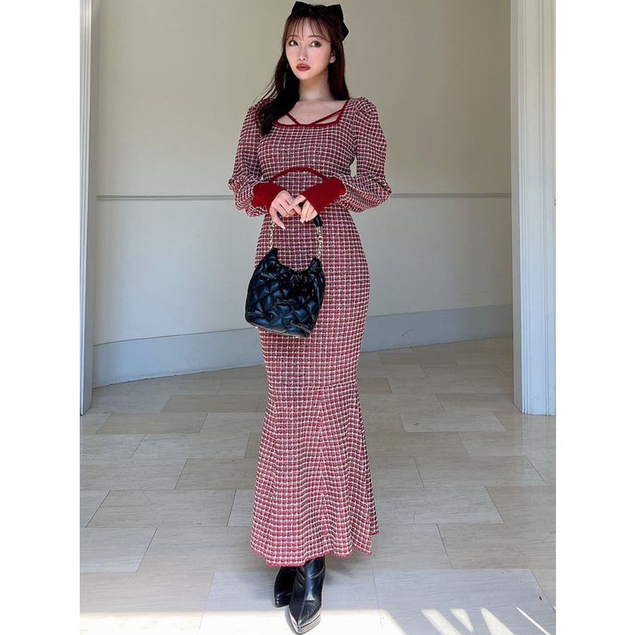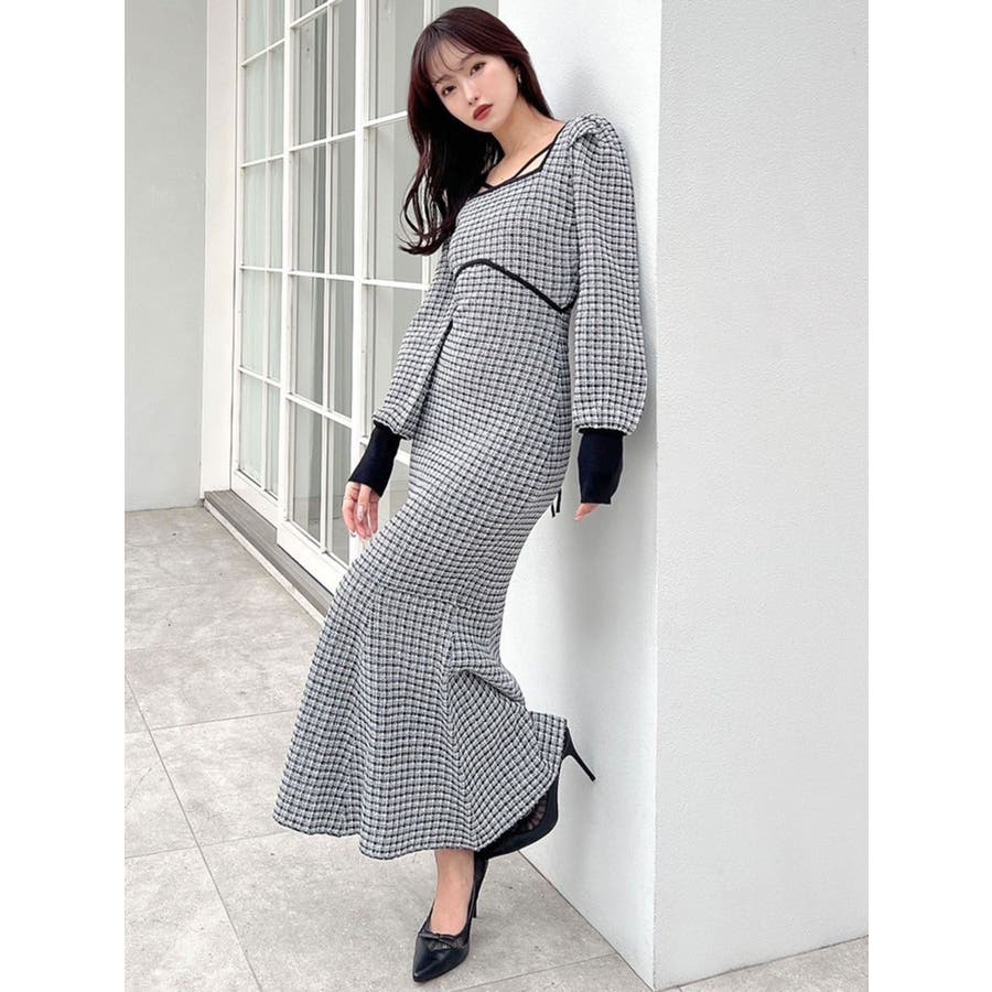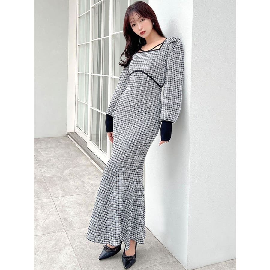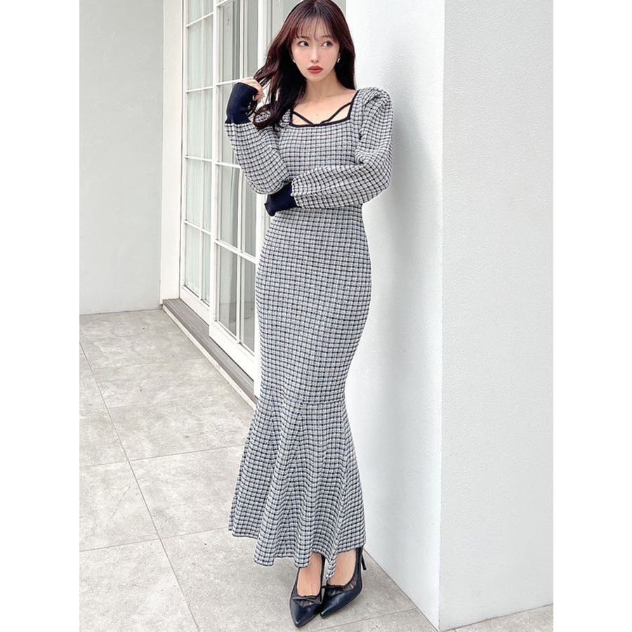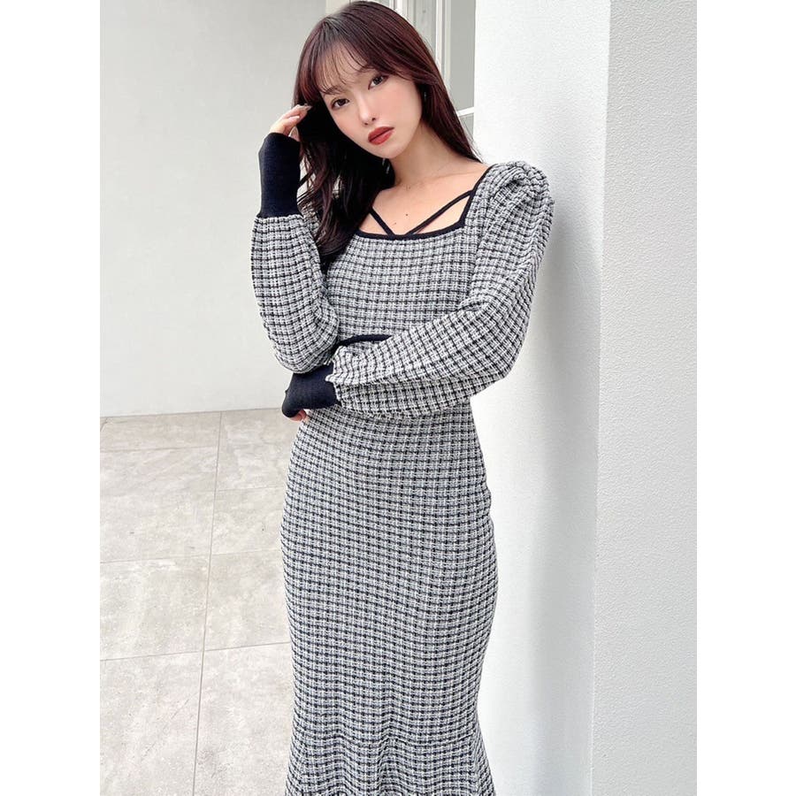 バイカラーツイードマーメイドニットワンピース