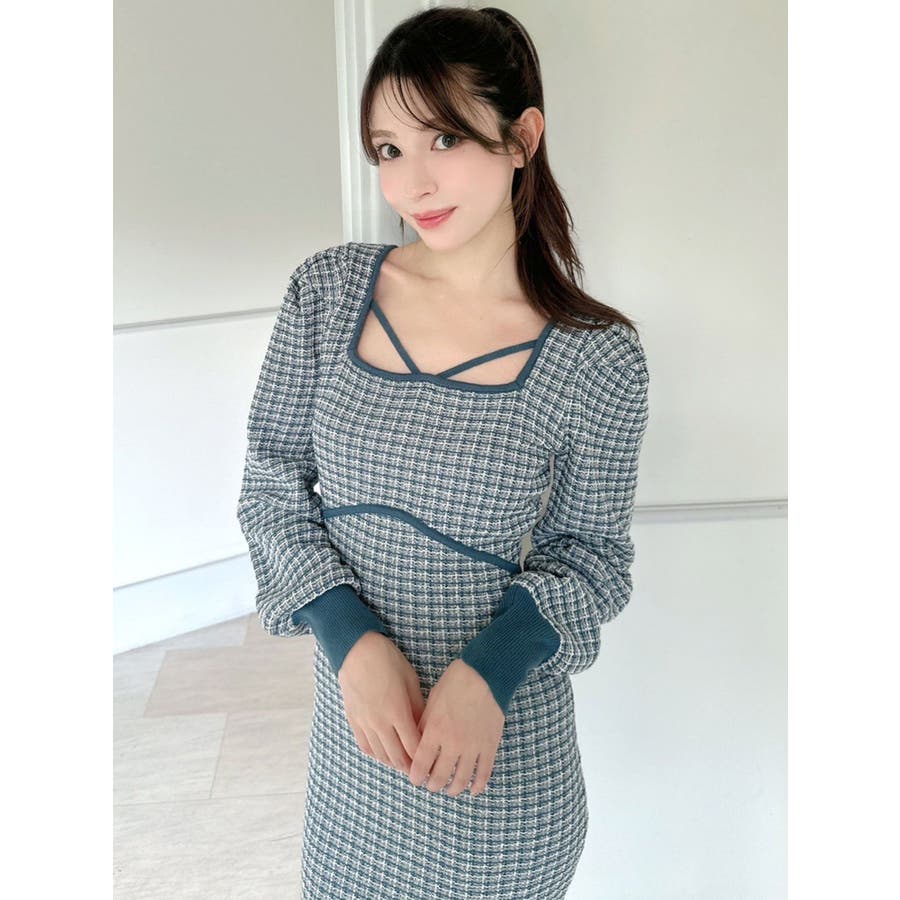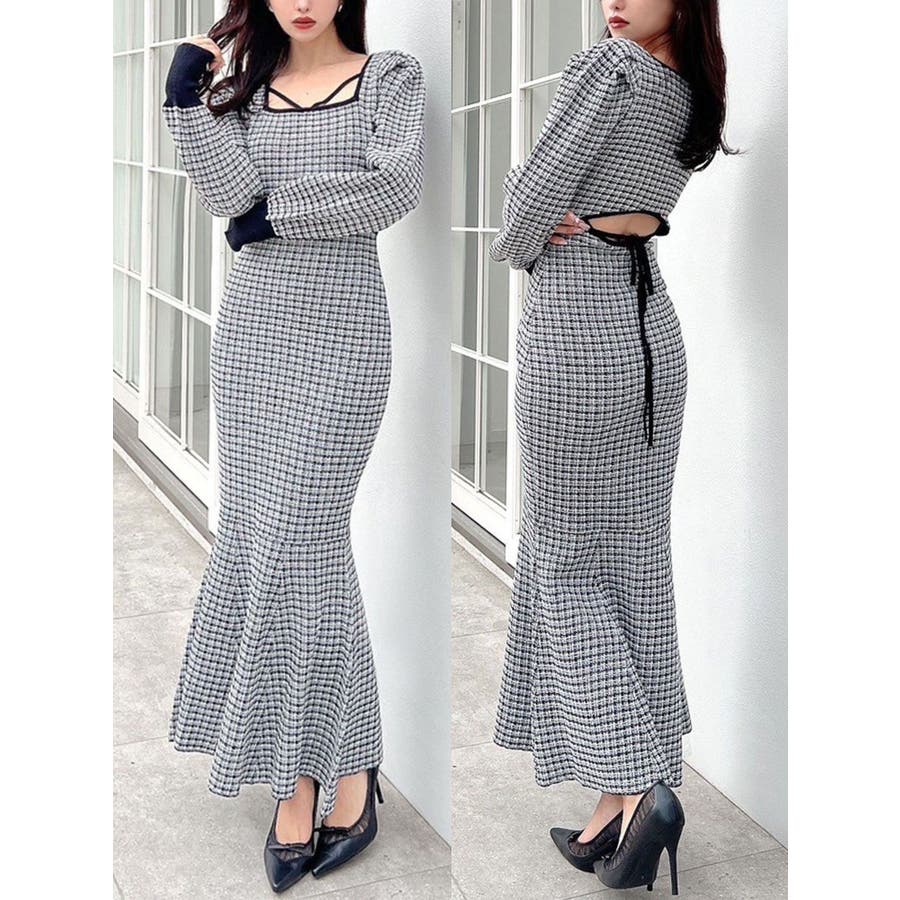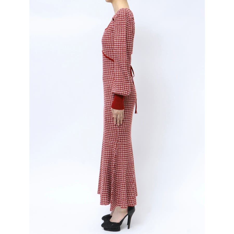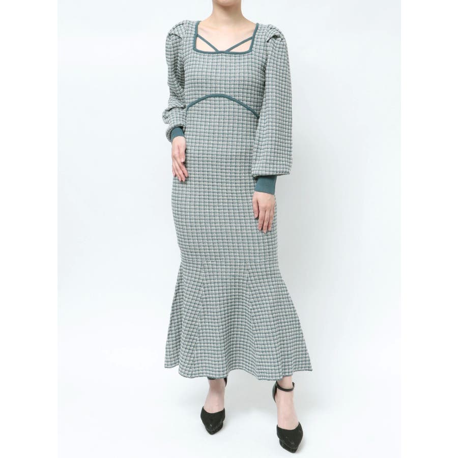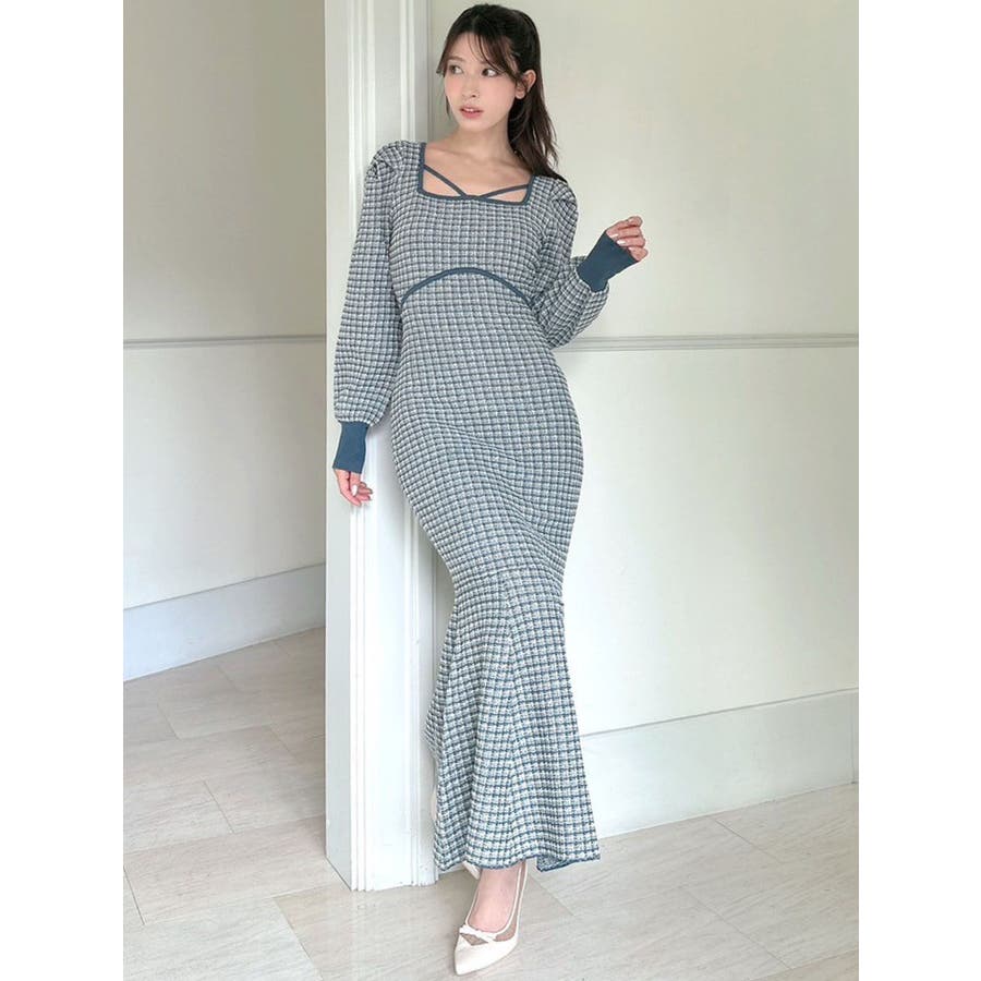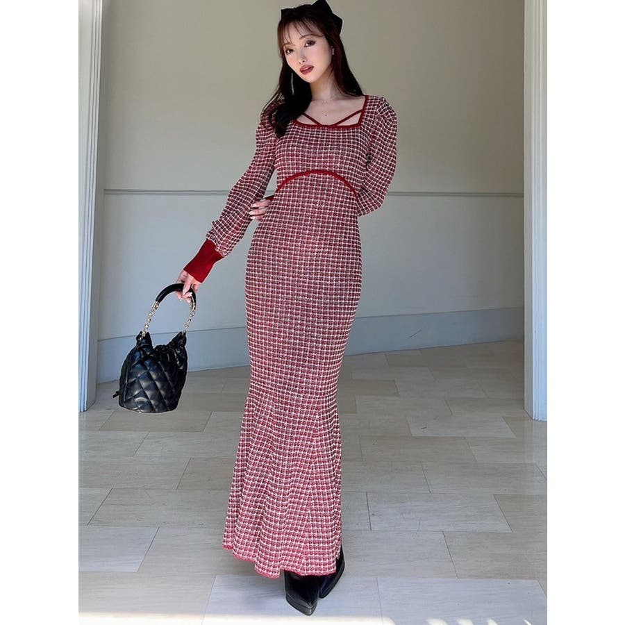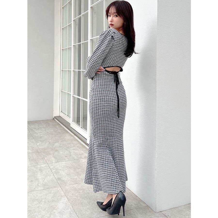 バイカラーツイードマーメイドニットワンピース