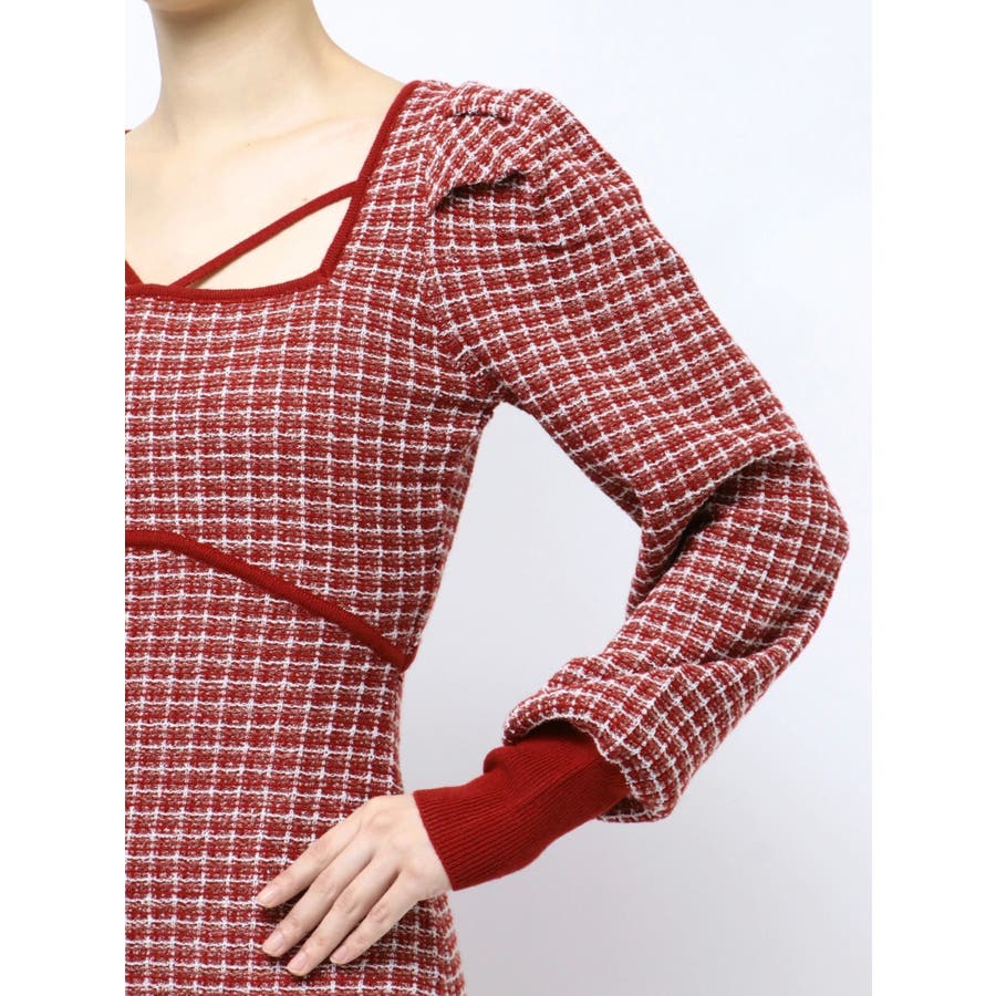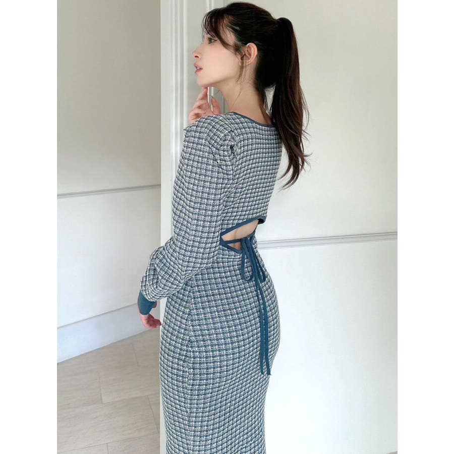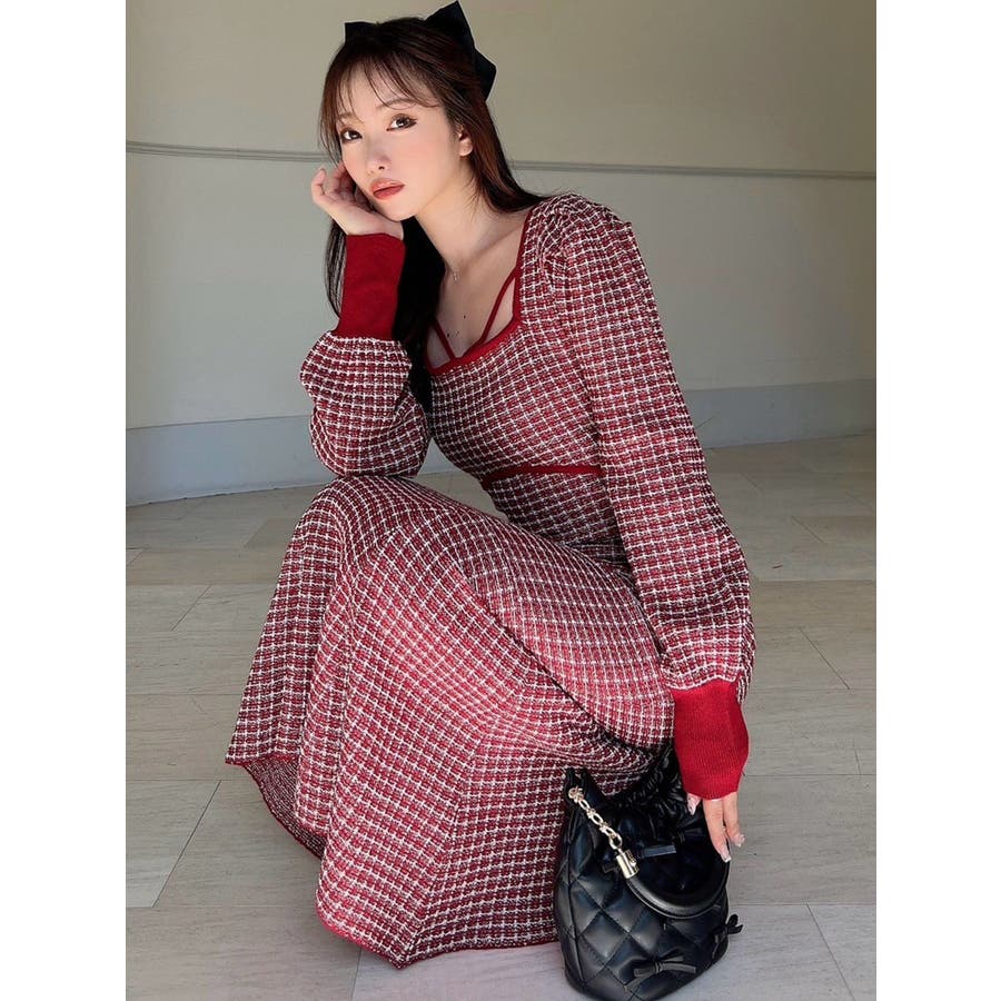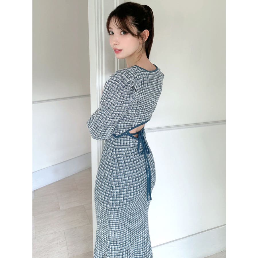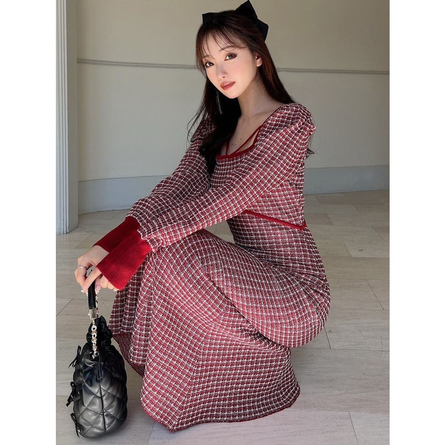 コーデを華やかに冬見せしてくれるマーメイドワンピース▽デザイン▽1枚で女性らしいスタイルが完成するコーデの主役アイテム◎ツイードデザインが上品な印象を与えてくれ、季節感を高めます。バックリボンと背中開きが後ろ姿まで女性らしくデザインポイントに。バスト下にカーブの切り替えを入れ、バックリボンでウエストを絞れるので1枚でウエストの細見えが叶う美シルエットワンピースです。▽カラー▽黒・赤・青の3色展開。▽スタイリング▽1枚でコーデが完成するので小物合わせで様々なスタイルをお楽しみいただけます。アウター合わせはもちろん1枚で着てもサマになるので秋~春先まで長く活躍します。ブーツやミュールなど女性らしいアイテムでまとめるのがオススメ!※着用画像はフラッシュの加減で実際の製品と色味等が異なる場合がございますので、生地のズームアップ画像をご確認ください。※ご利用の端末画面の設定により実際の商品と色味が異なる場合がございます。【商品特徴】透け感:なし伸縮性:あり生地の厚さ:普通サイズ感:普通裏地:ありポケット:なしファスナー:なし