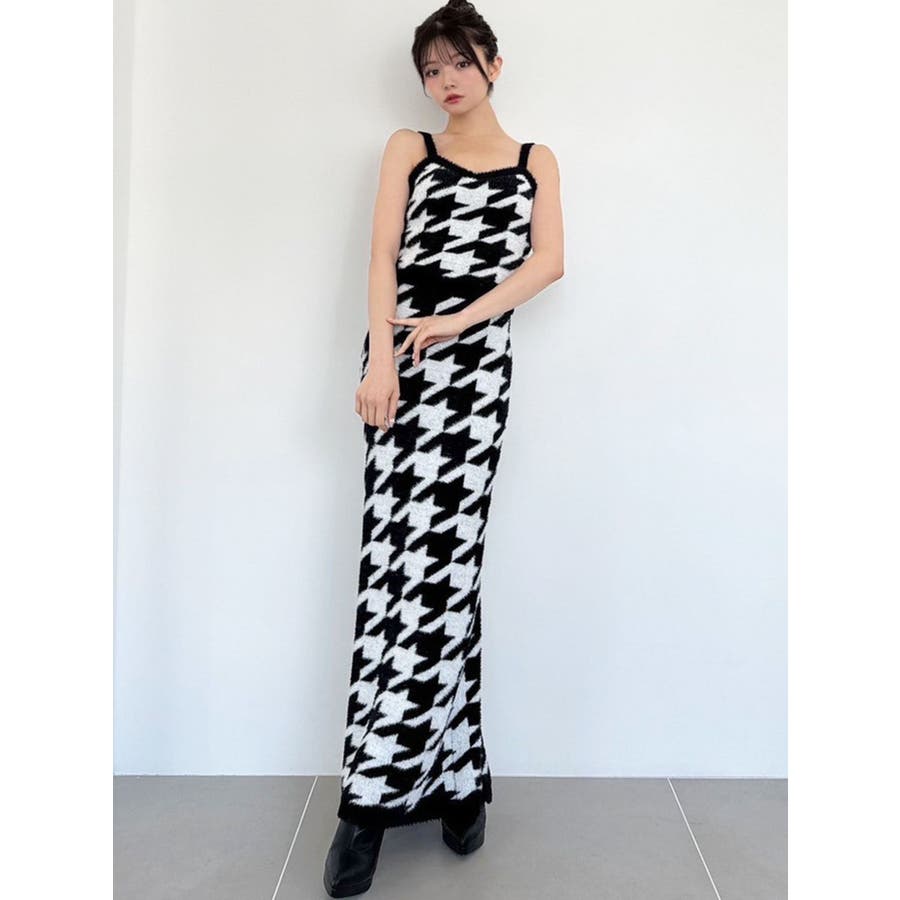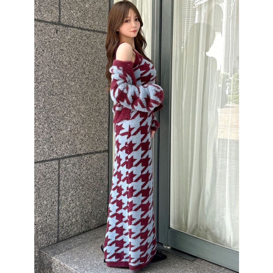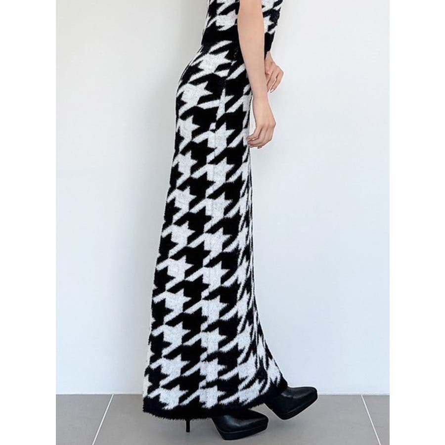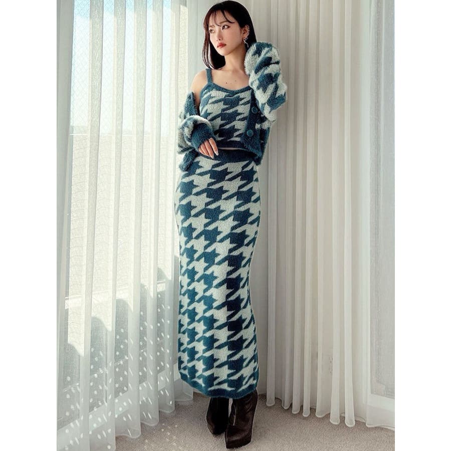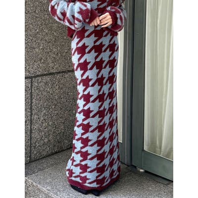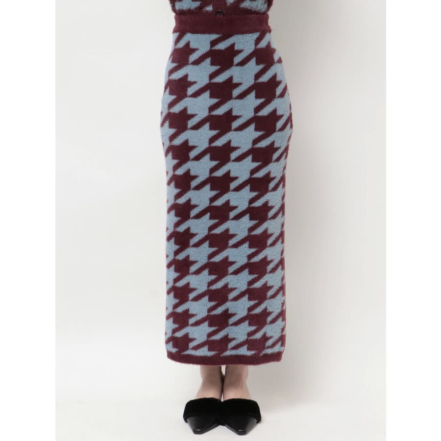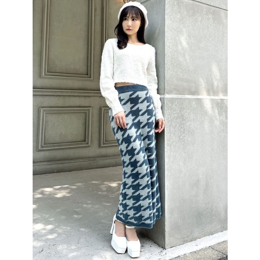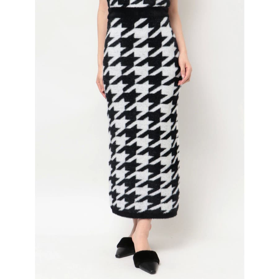 ハウンドトゥースシャギーニットスカート【セットアップ着用可能】
