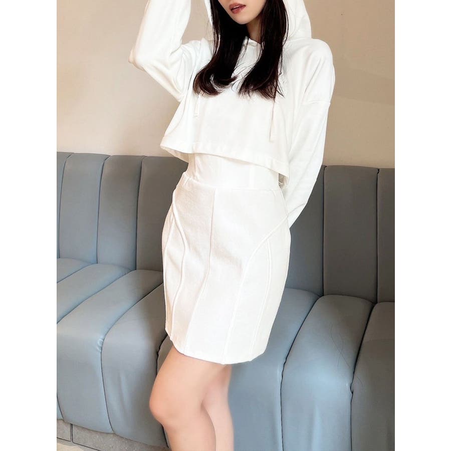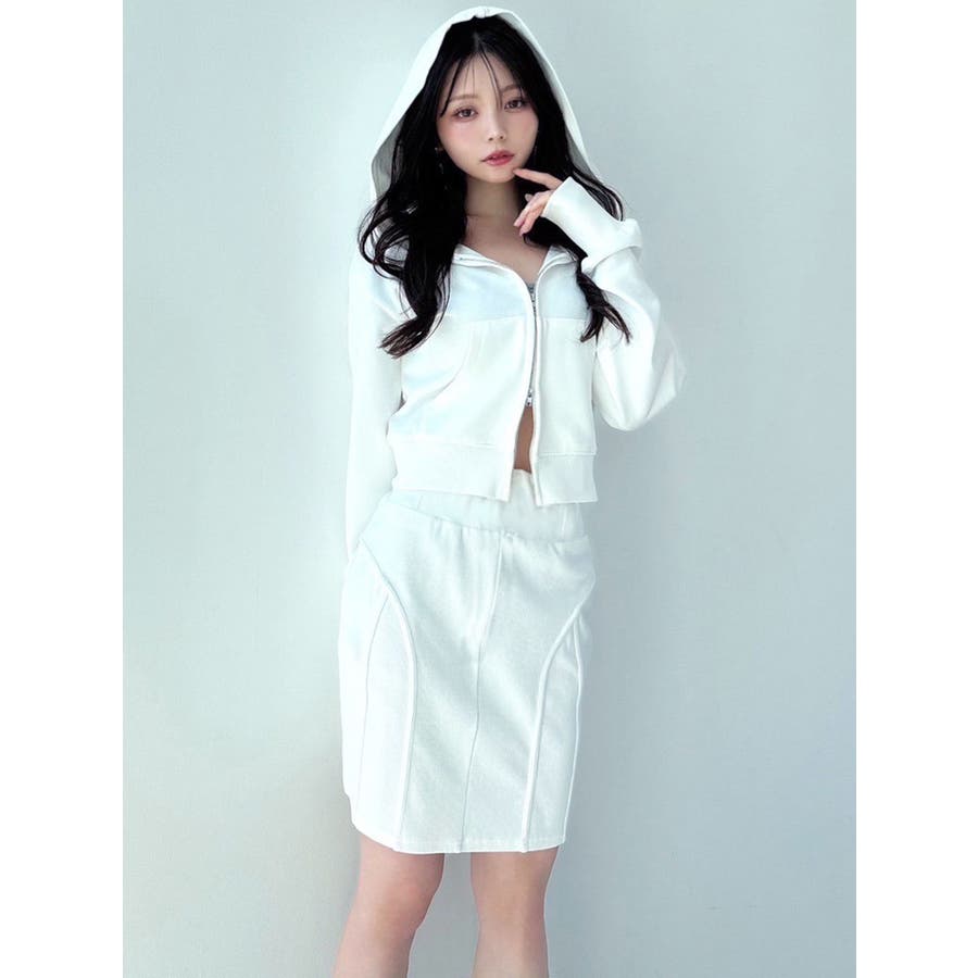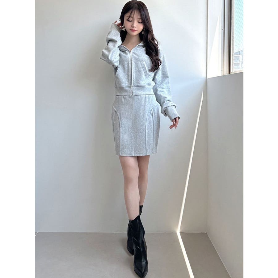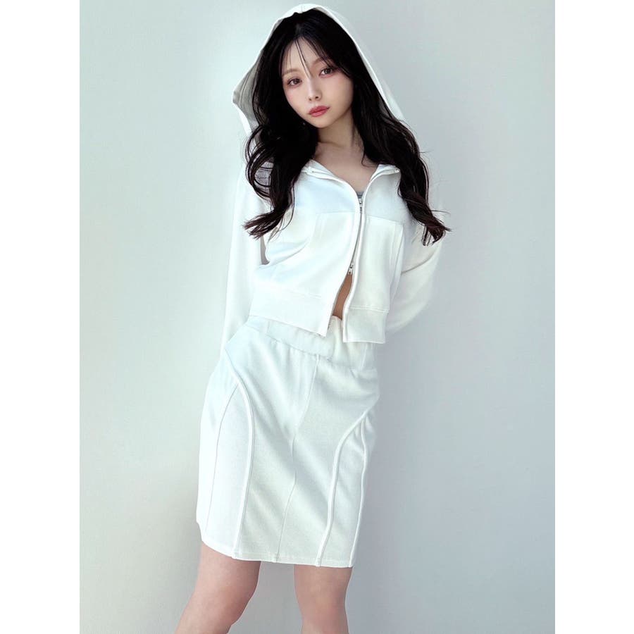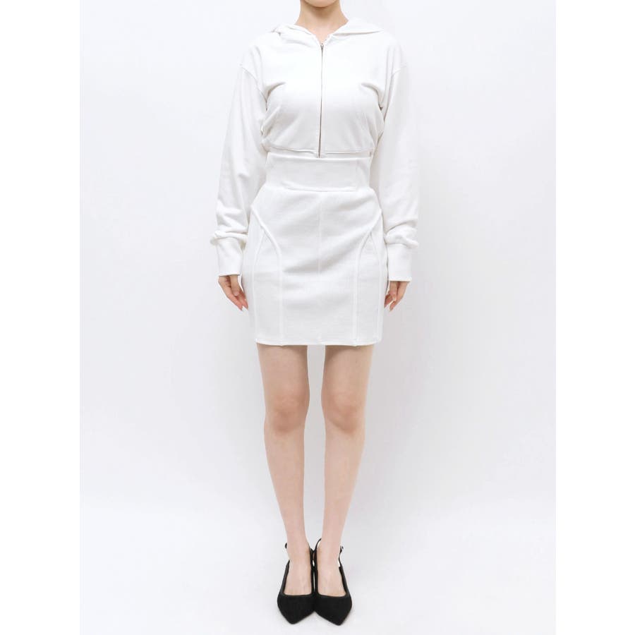 裏毛素材で作ったスポーティーなミニスカート▽デザイン▽ウエストは太めのベルトでコルセット風のデザインにすることでウエストやヒップ周りを引き締め、スタイルアップが叶うアイテムです。カジュアルな素材ながら女性らしいシルエットを演出。コンパクトなサイジングで美脚効果も。▽カラー▽白・黒・グレーの3色展開。▽スタイリング▽同素材で作ったパーカーを合わせればセットアップとして着用可能。ハイウエストなのでスッキリとした印象に仕上げてくれます。【セットアップアイテムはコチラ】152452743501:フロントジップクロップドパーカー
