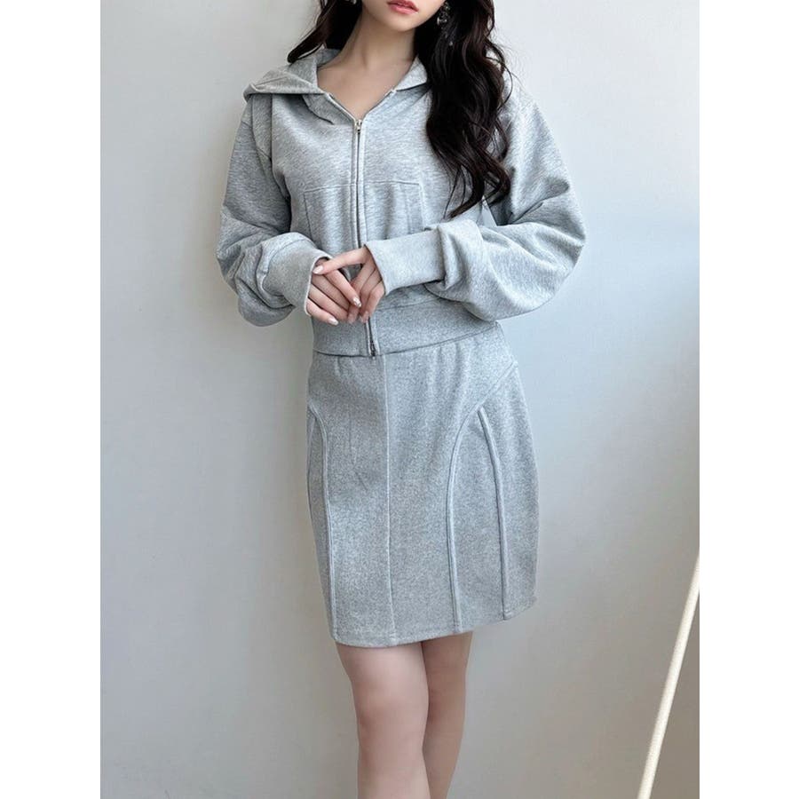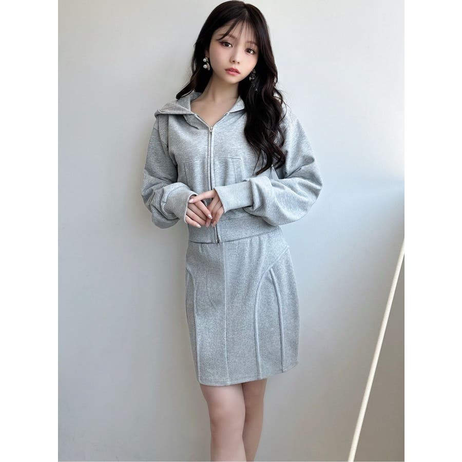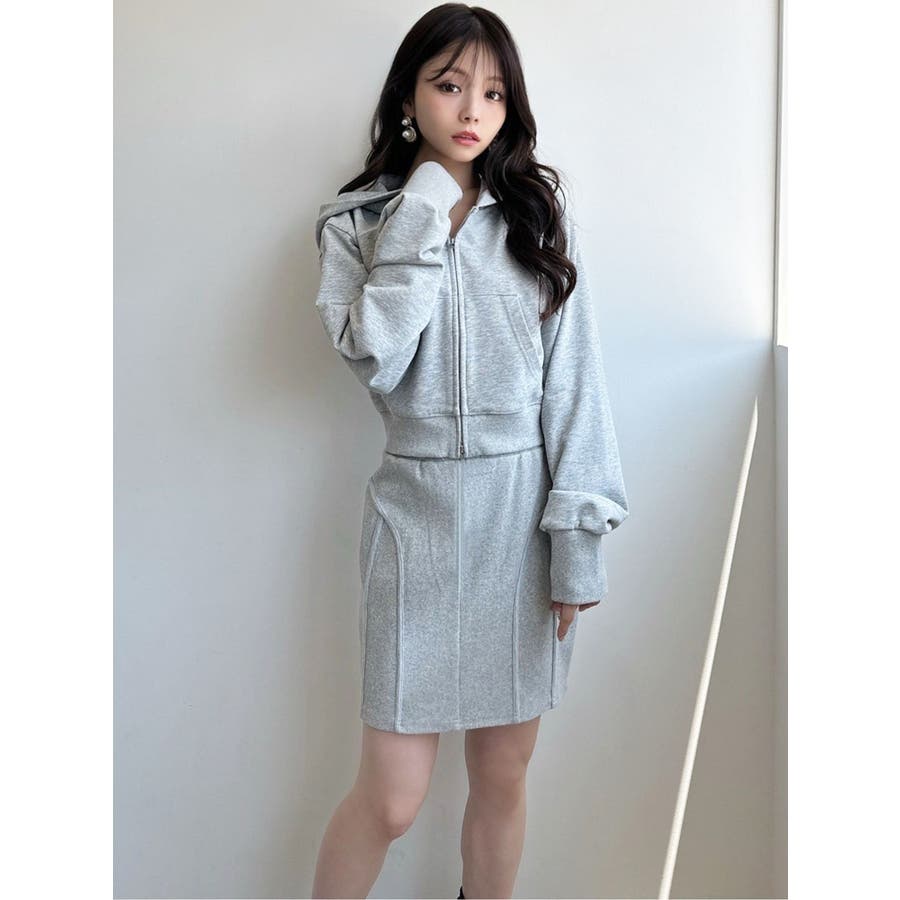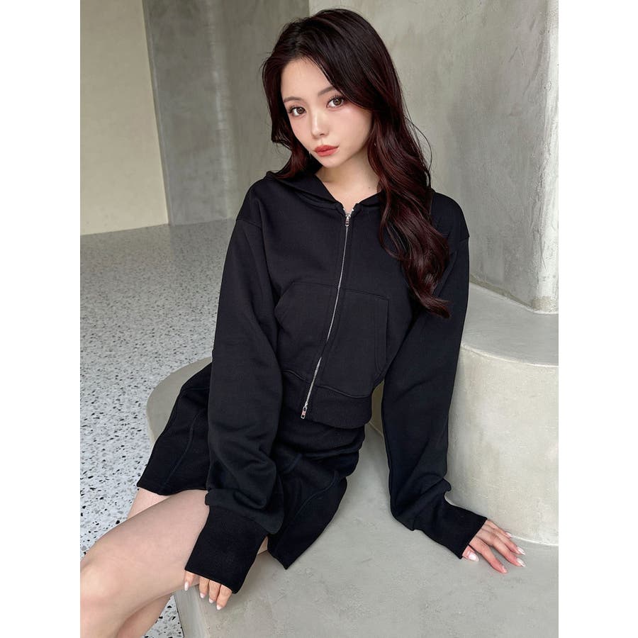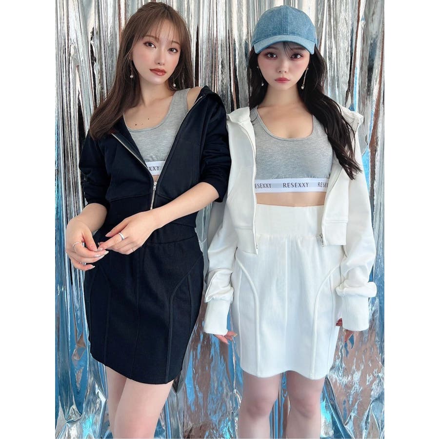 裏毛素材で作ったスポーティーなミニスカート▽デザイン▽ウエストは太めのベルトでコルセット風のデザインにすることでウエストやヒップ周りを引き締め、スタイルアップが叶うアイテムです。カジュアルな素材ながら女性らしいシルエットを演出。コンパクトなサイジングで美脚効果も。▽カラー▽白・黒・グレーの3色展開。▽スタイリング▽同素材で作ったパーカーを合わせればセットアップとして着用可能。ハイウエストなのでスッキリとした印象に仕上げてくれます。【セットアップアイテムはコチラ】152452743501:フロントジップクロップドパーカー