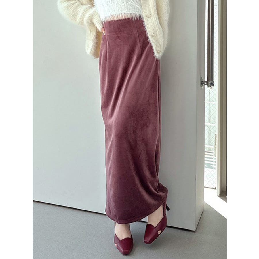 シーズンムード高まるベロアスカート▽デザイン▽ベロア生地で高級感のあるIラインスカート。Iラインなのでボディラインを拾いすぎずスッキリとしたシルエットに。ハイウエストなのでウエストラインが綺麗に見え、美脚効果も◎ストレッチが効いた素材で着心地がいいのもポイントです!ベーシックなので様々なスタイリングに合わせやすい万能スカートでこの秋1枚は持っておきたいマストアイテム♪▽カラー▽黒・チャコールグレー・ブラウンの3色展開。▽スタイリング▽シンプルなのでニットからブラウスまで様々なトップスと好相性。いつものスタイリングを大人っぽく仕上げてくれる1枚で秋口から冬にかけて活躍すること間違いなし!※着用画像はフラッシュの加減で実際の製品と色味等が異なる場合がございますので、生地のズームアップ画像をご確認ください。※ご利用の端末画面の設定により実際の商品と色味が異なる場合がございます。【商品特徴】透け感:なし伸縮性:あり生地の厚さ:普通サイズ感:細身裏地:ありポケット:なし