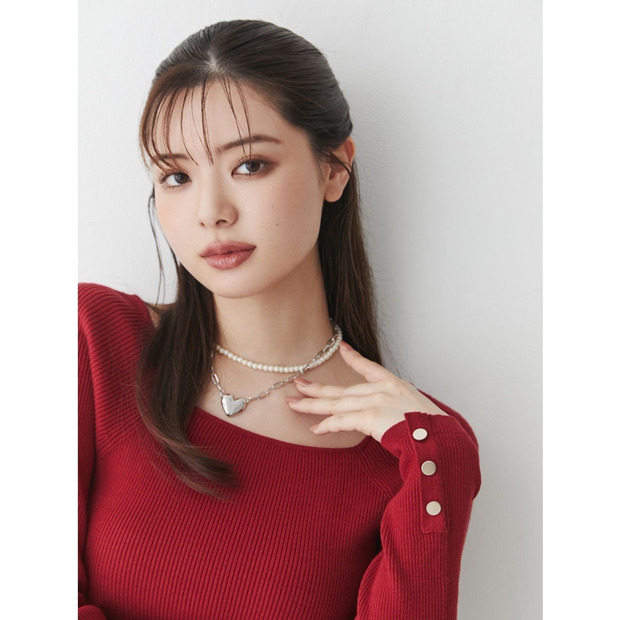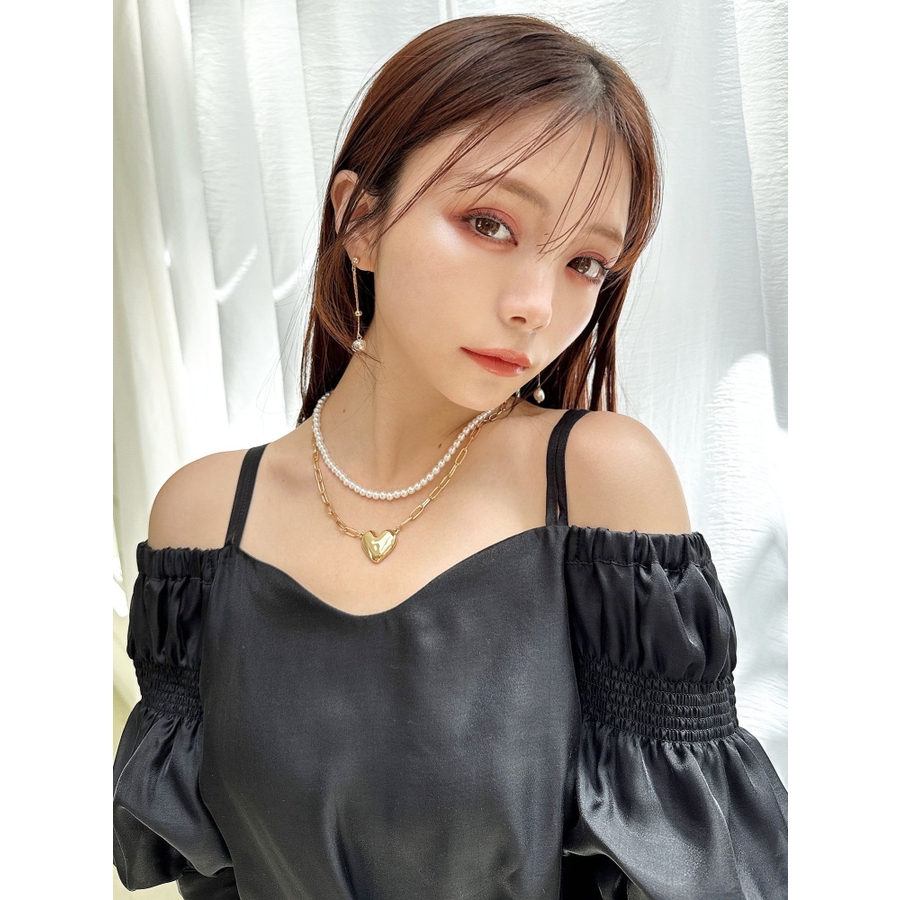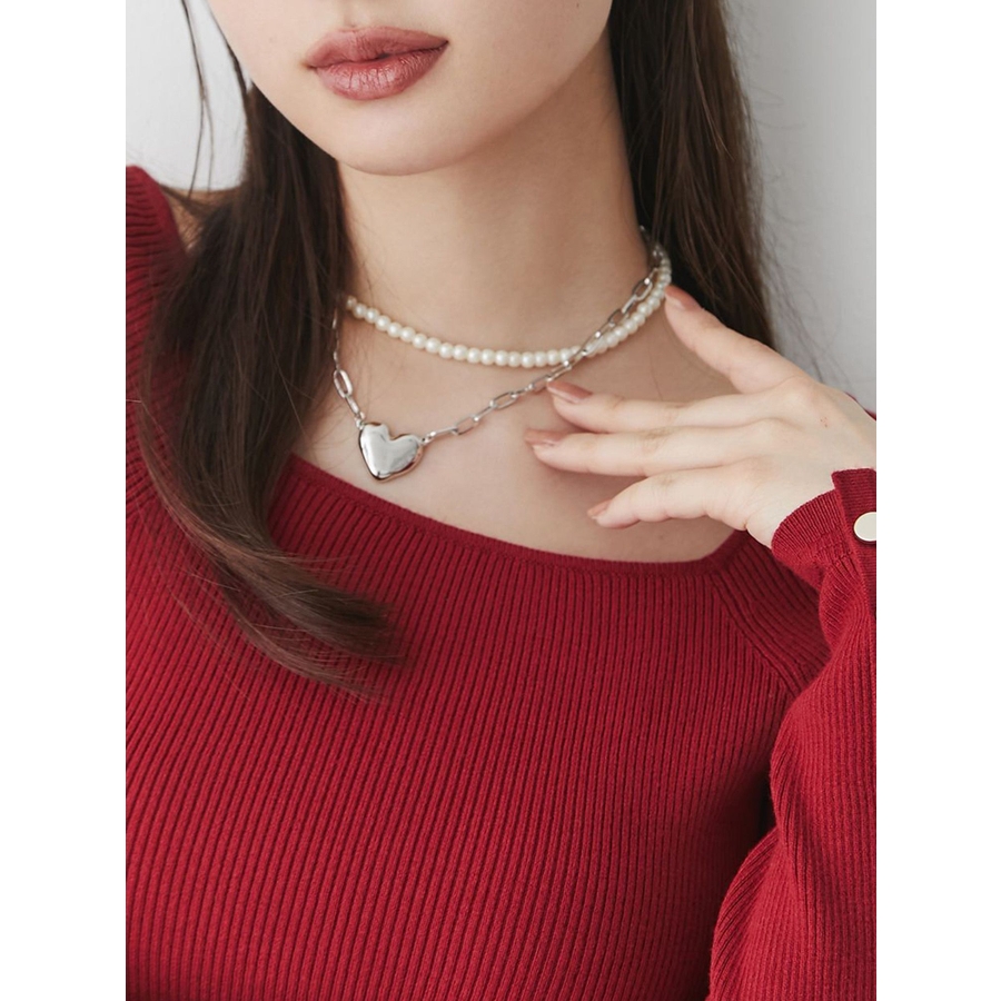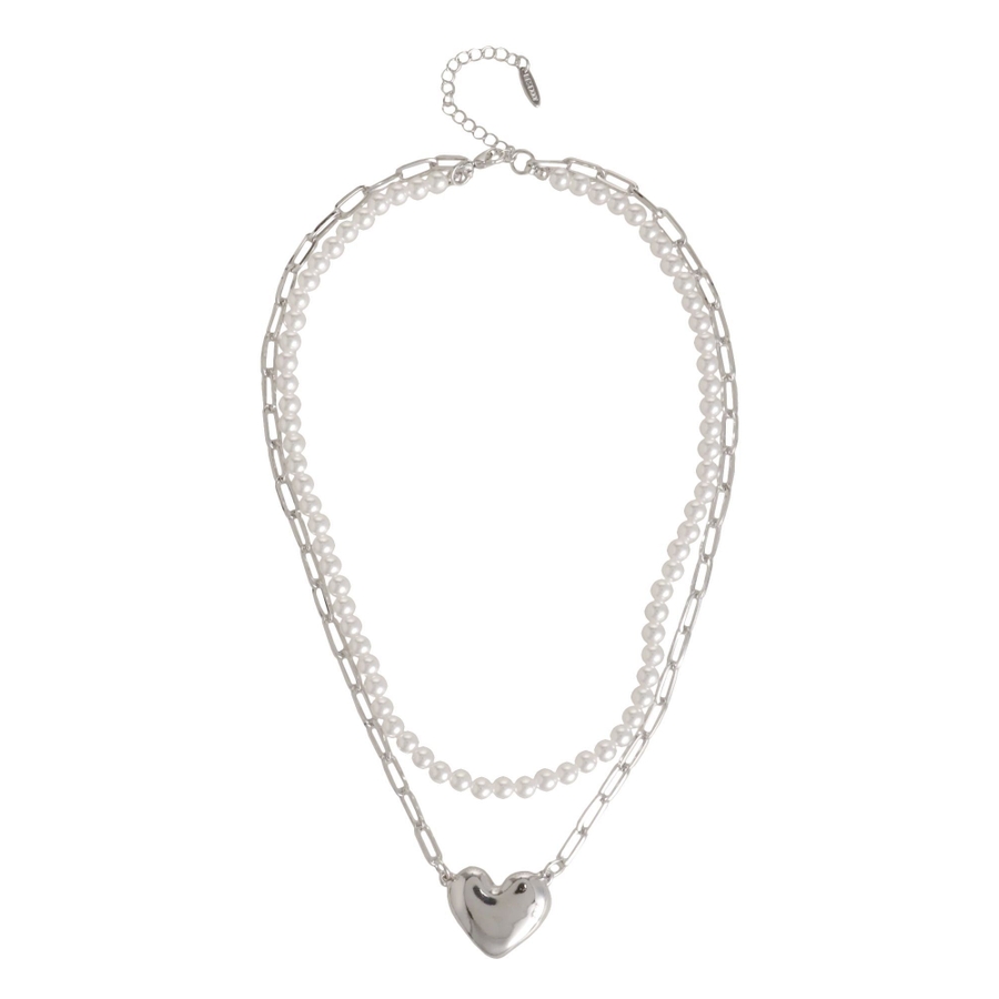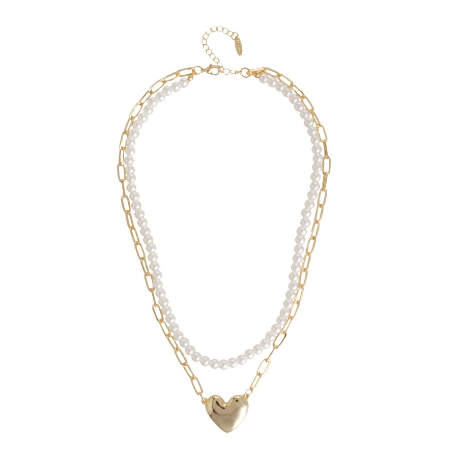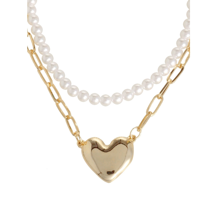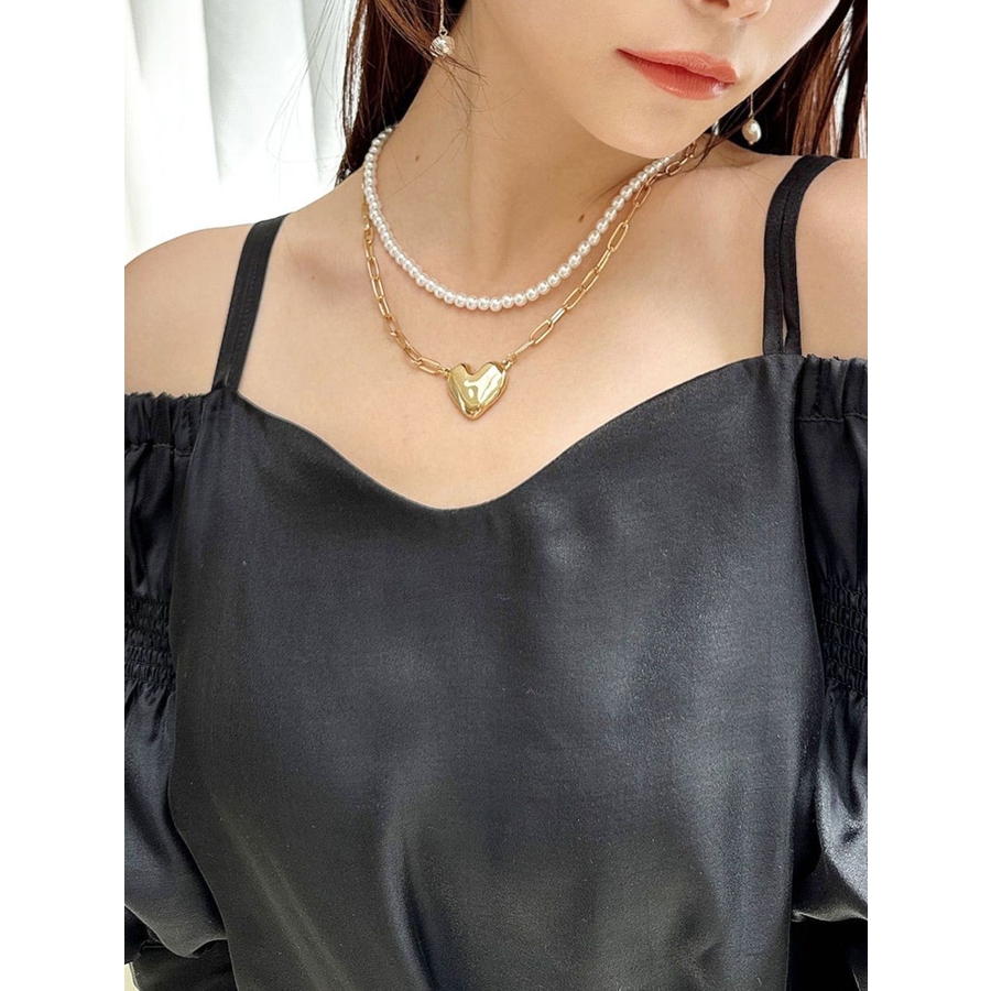 存在感とトレンド感のあるネックレス。トレンドのハートチャームがコーデのアクセントに!パールとチェーンの2連デザインでキレイめ要素もプラスしたアイテムです。