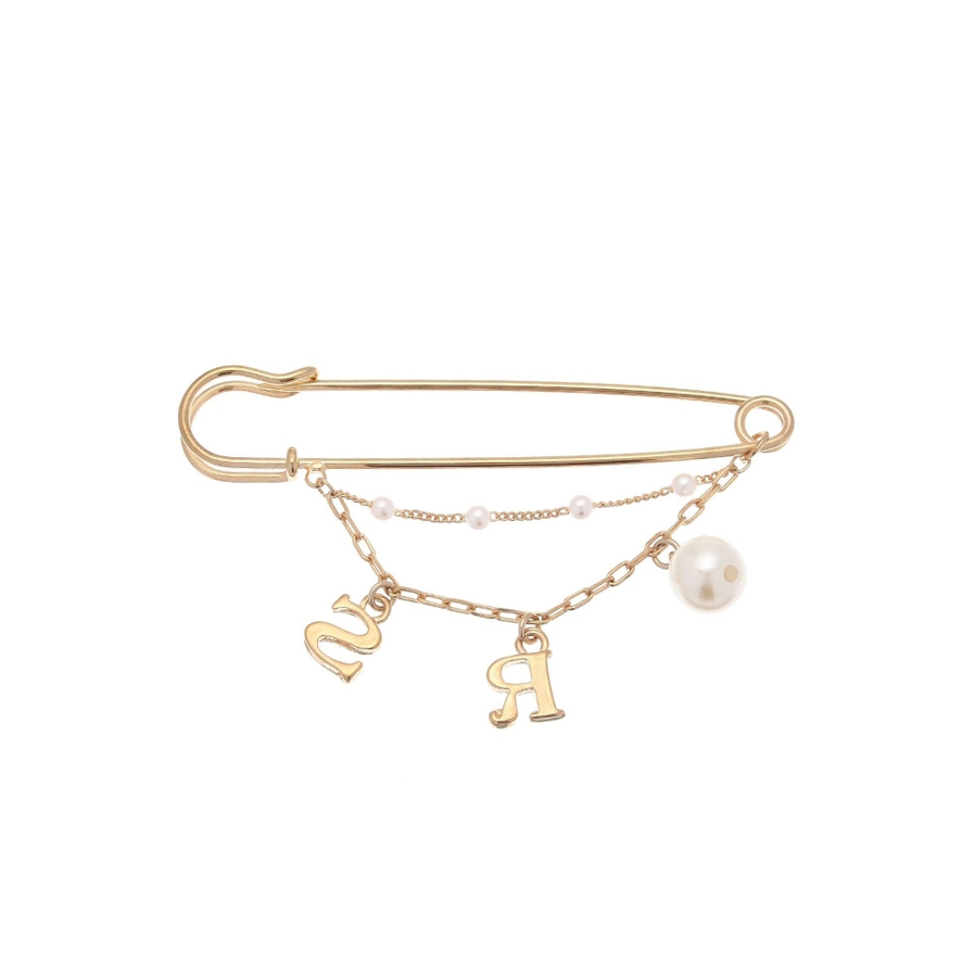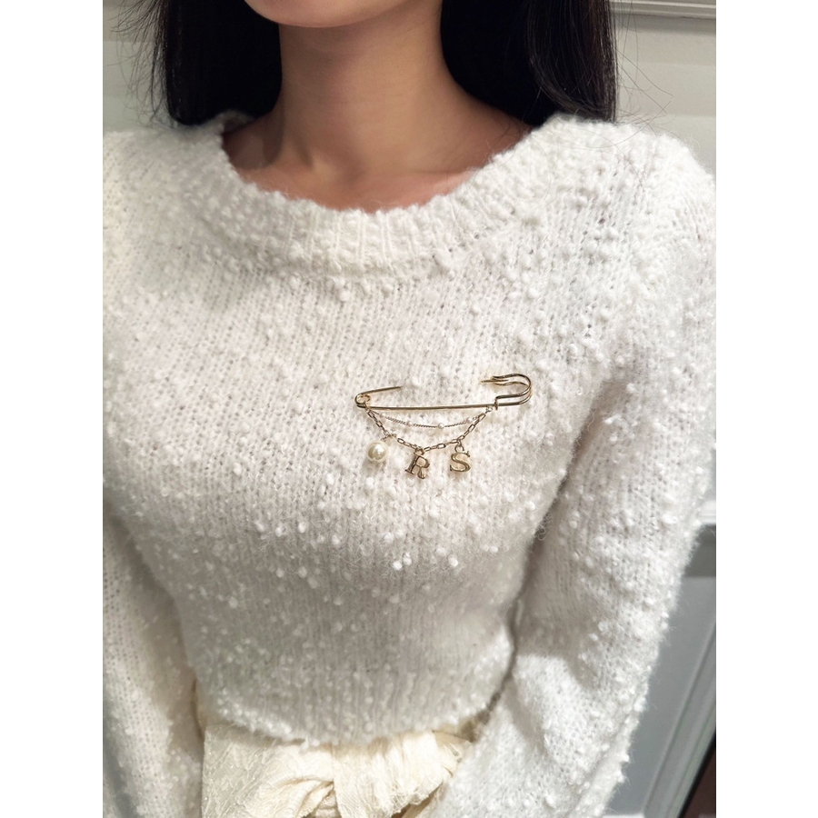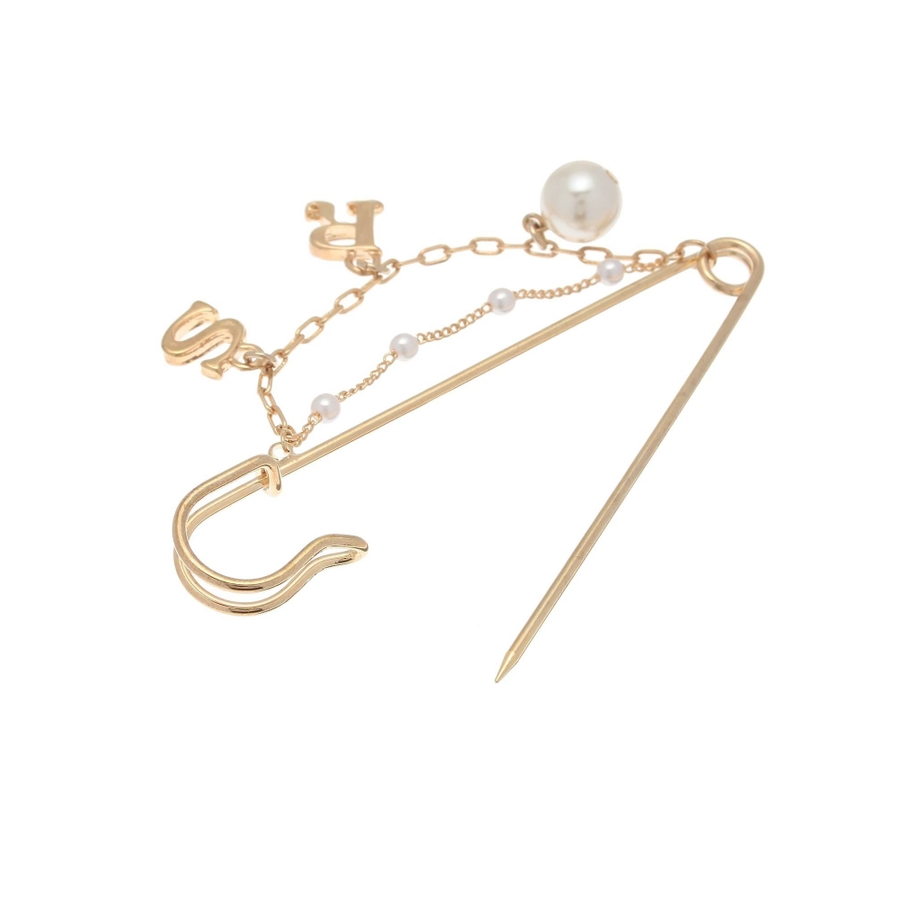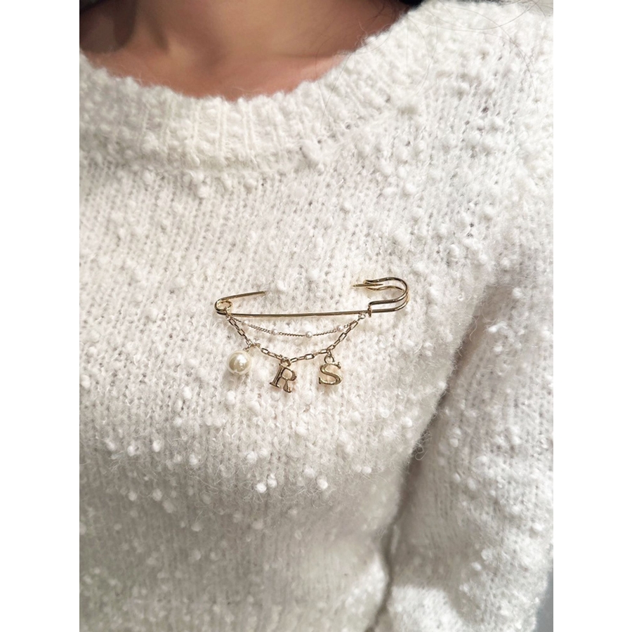 他と被らないロゴモチーフのブローチ▽デザイン▽揺れるパールとロゴが可愛く、いつものニットやワンピースをアップグレード♪ピンが大きくなっている為、付けやすいのもポイント!シンプルなアイテムにプラスするだけで華やかな雰囲気になります。