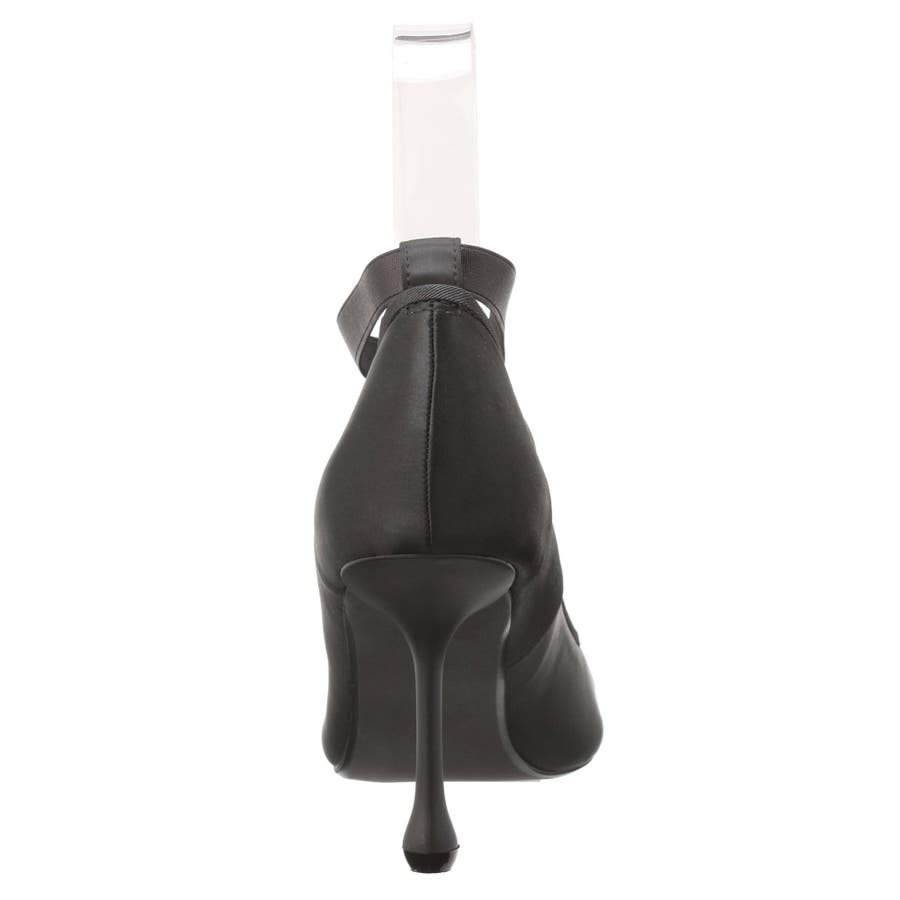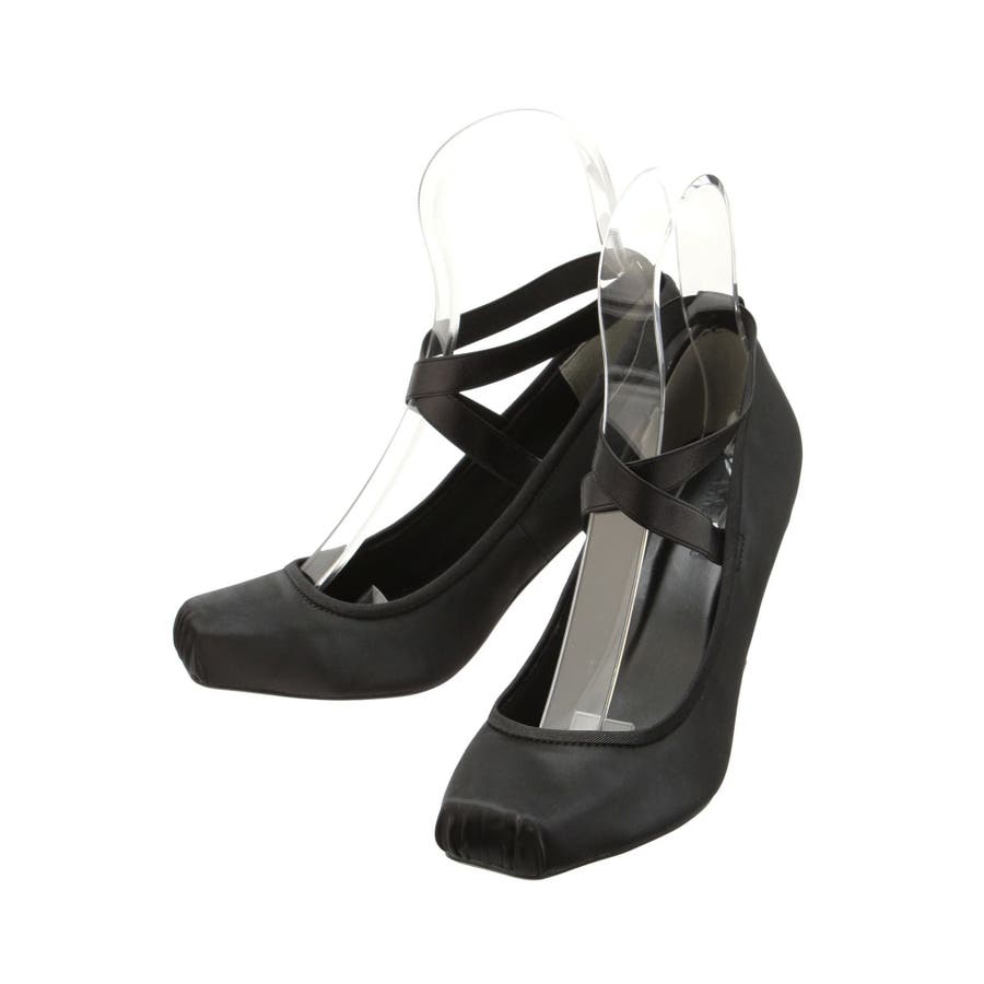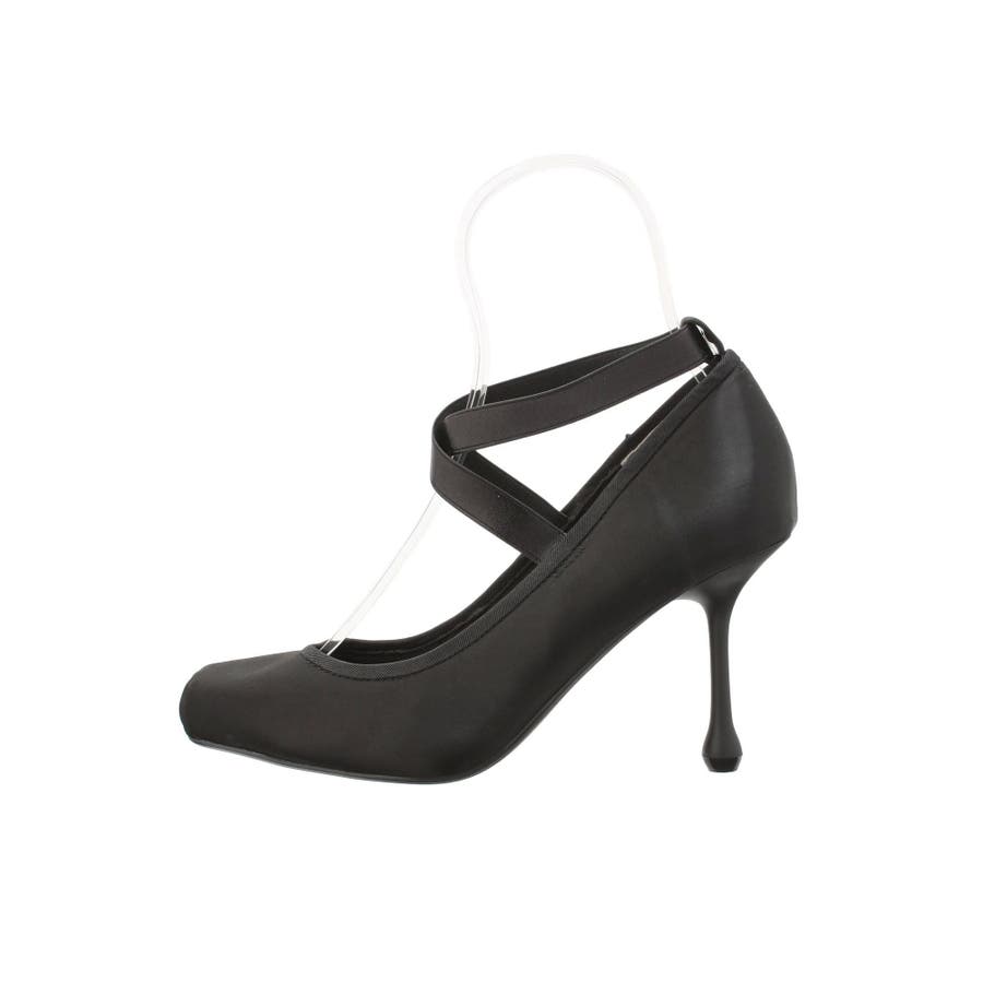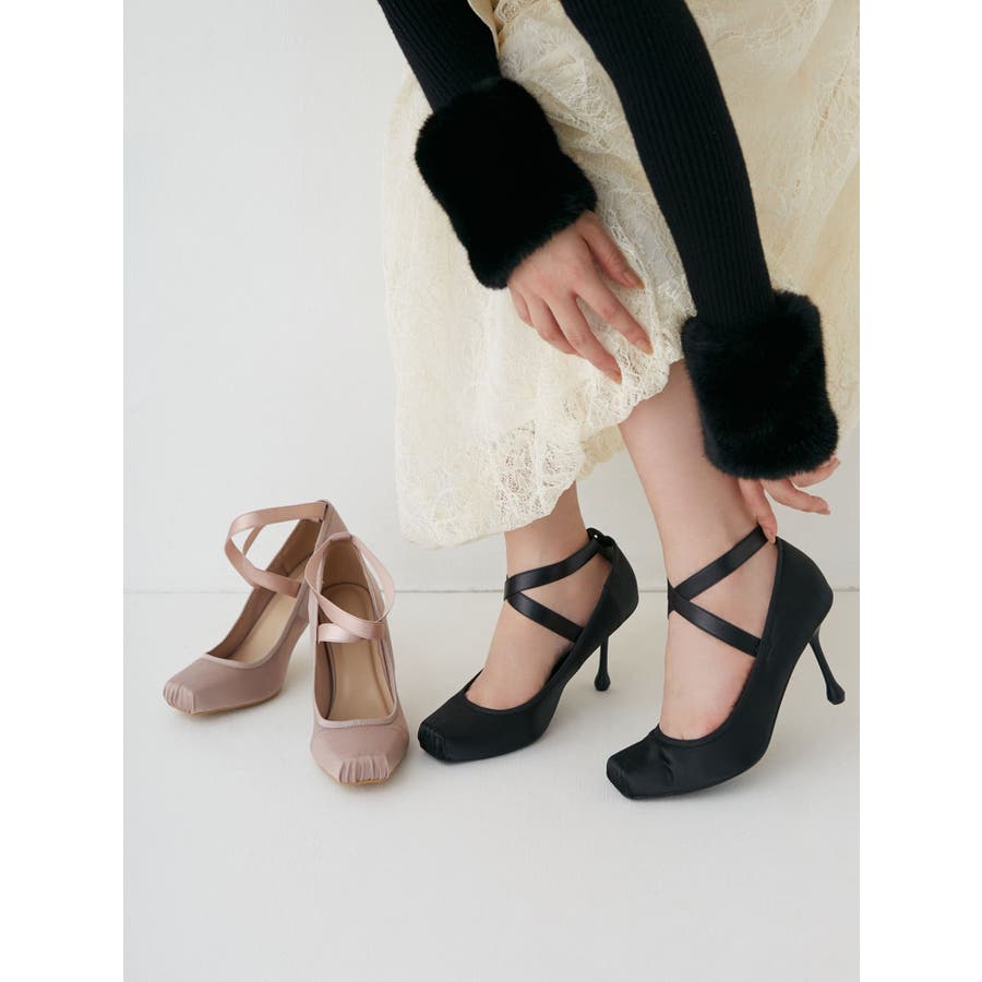 トレンドのバレエコアアイテム▽デザイン▽トゥシューズからインスピレーションを受けて作ったピンヒールパンプス。アッパー部分は程良い艶のあるサテン生地で、エレガントな雰囲気に仕上げました。足首のストラップはゴムになっているので足が抜けたりせず履き心地にもこだわりました。女性らしいピンヒールに遊び心を加えたデザインです。▽カラー▽黒・ピンクの2色展開。【スタッフ着用レビュー】スタッフC(普段のサイズ: 24.0cm/足の幅: 9.7cm/甲の高さ: 6.1cm/ふくらはぎ周り:33.5cm)Lサイズ着用でピッタリでした。足首のストラップがゴムになっているのでとても履きやすいです。ほどよい高さのヒールなのでどんなコーディネートにも合いそうです。