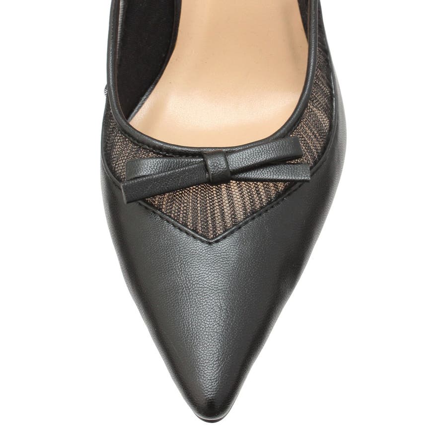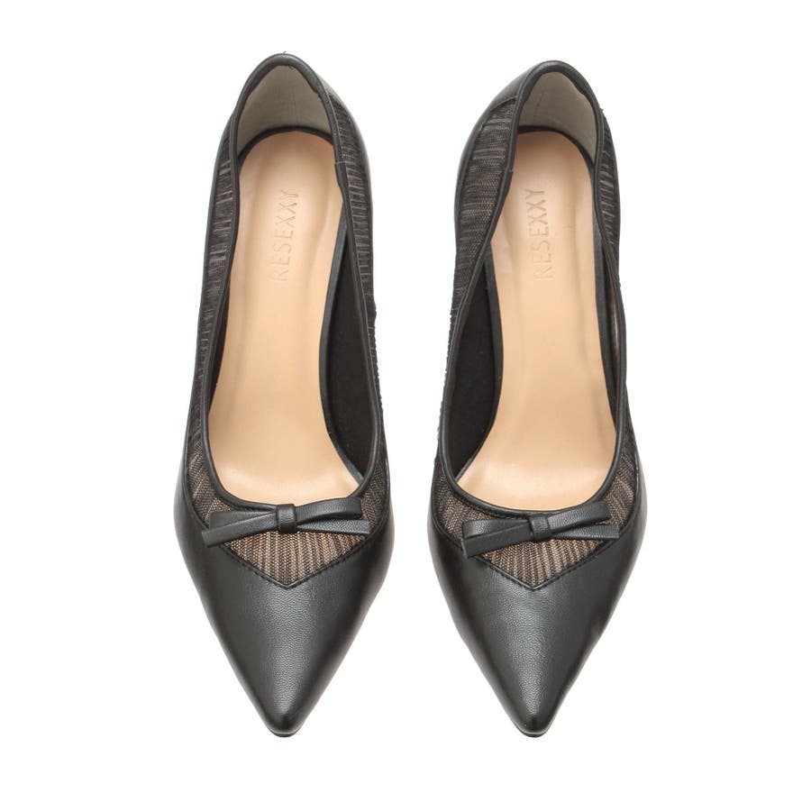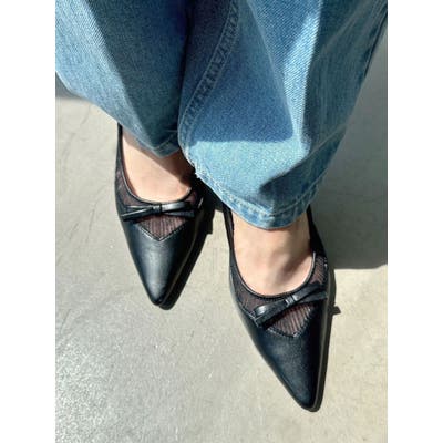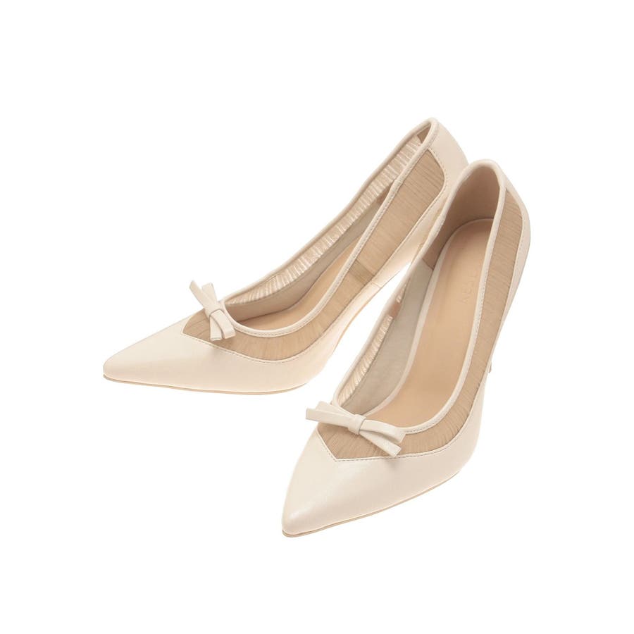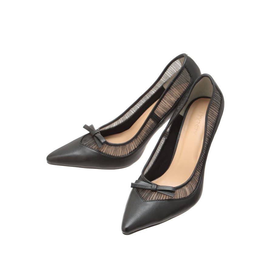 透け感とリボンがワンポイントのパンプス▽デザイン▽フェイクレザーとシアー素材を組み合わせることで上品な印象に。ポインテッドトゥで細見えし足元を華奢に見せてくれます。リボンを付けたことで今年らしく、アクセントに。大人っぽく仕上がり、シーズンレスに着用していただけます。デイリー使いはもちろん、結婚式やパーティーなどオケージョンシーンにもオススメ!▽カラー▽白・黒とバイカラーのミックスの3色展開。【スタッフ着用レビュー】スタッフC(普段のサイズ: 24.0cm/足の幅: 9.7cm/甲の高さ: 6.1cm/ふくらはぎ周り:33.5cm)Mサイズ着用でピッタリでした。シアー素材とリボンで一気に大人可愛いスタイルになります。美脚効果抜群です。