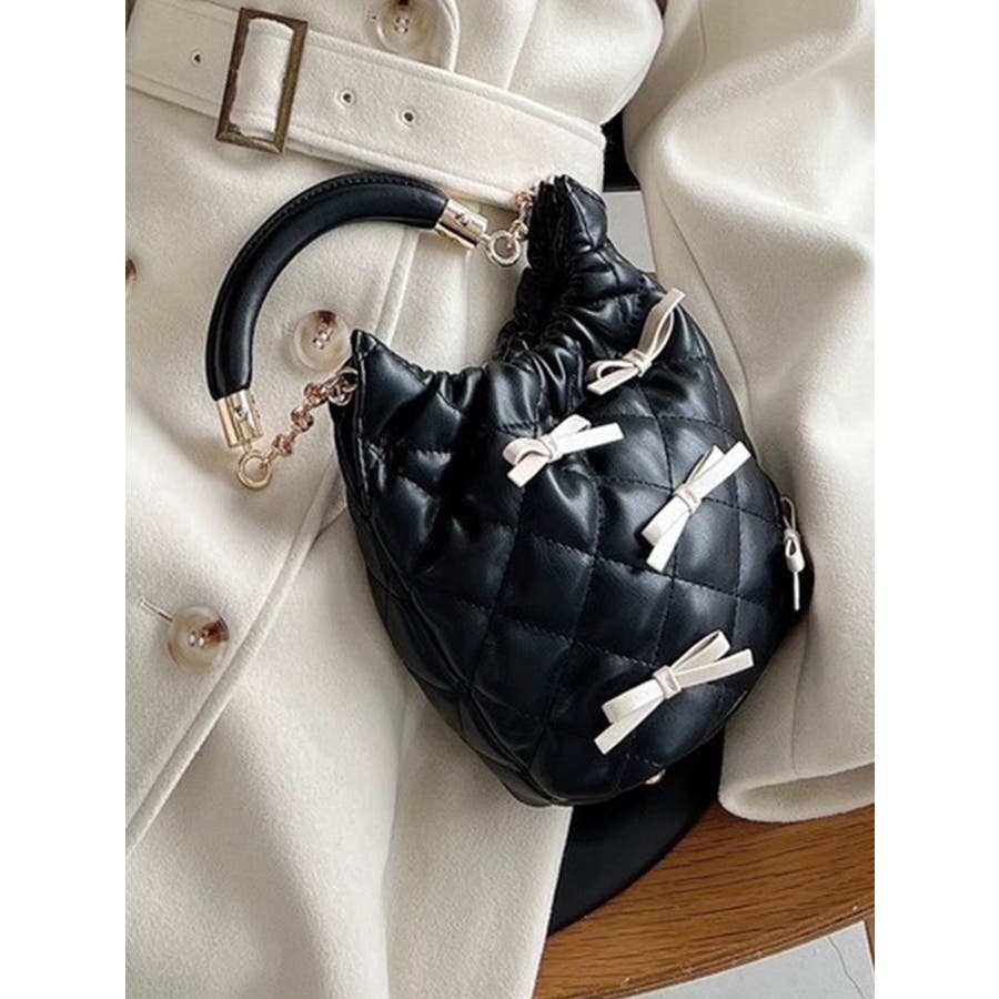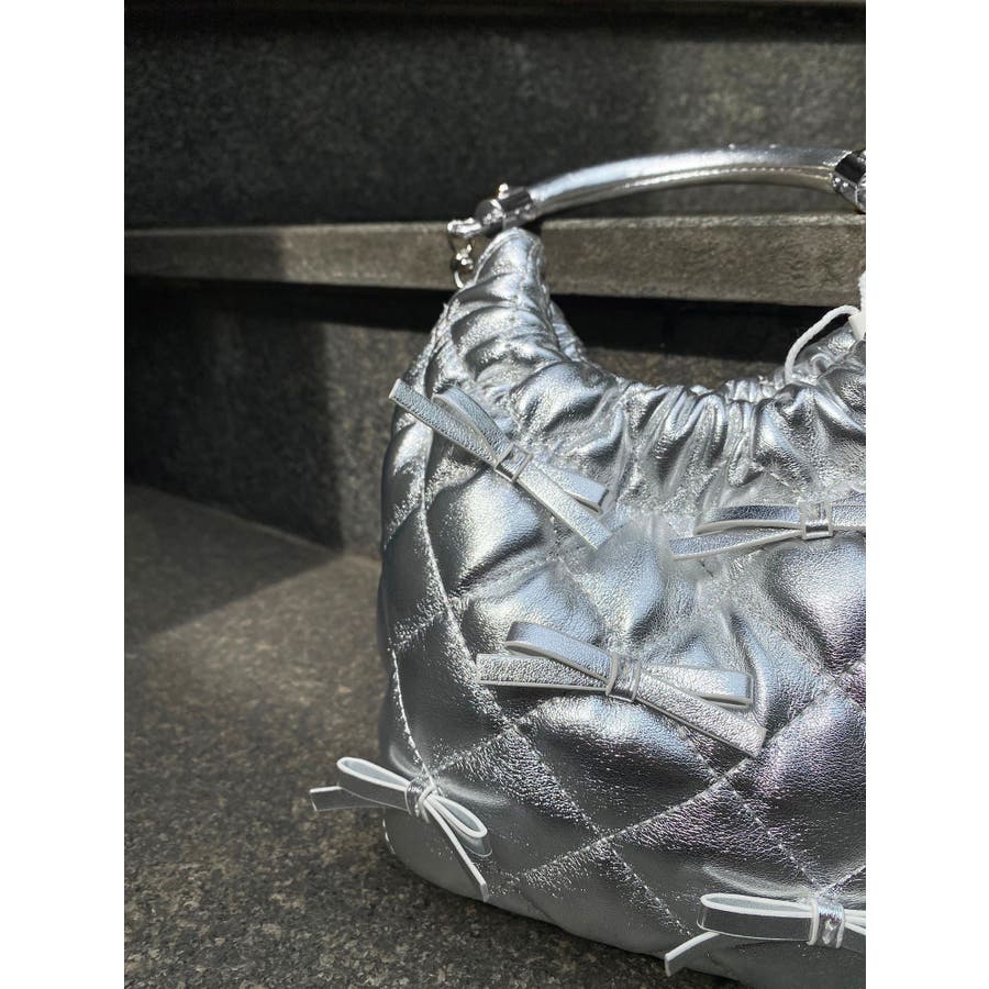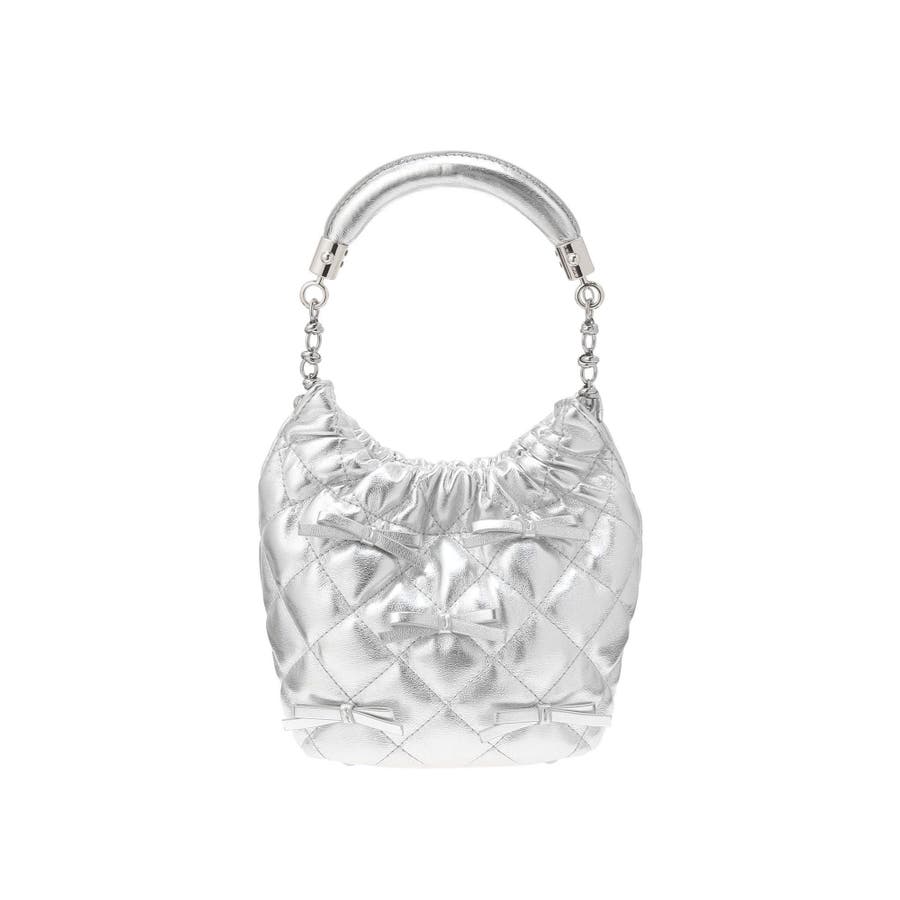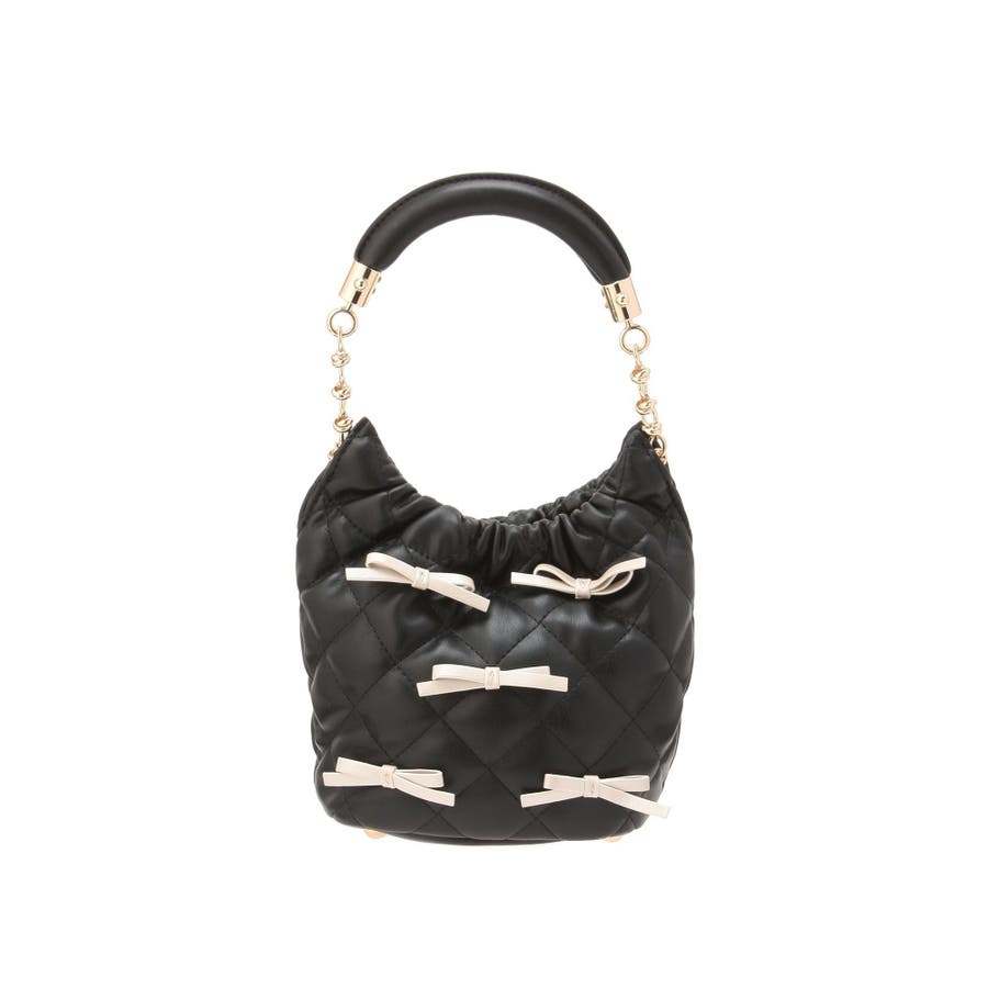 キルティングとリボンの王道可愛いデザイン▽デザイン▽トレンド要素を詰め込んだハンドバッグ。コロンとしていてコーデにプラスしやすい小ぶりのバッグですがしっかりマチがあるので荷物もしっかり収納できる優れもの♪内側にはチャック付きのポケットもありちょっとしたお出かけにも大活躍!持ち手部分もしっかりとしていて使いやすいバッグです。▽カラー▽黒・シルバーとリボンがバイカラーになったミックスの3色展開。