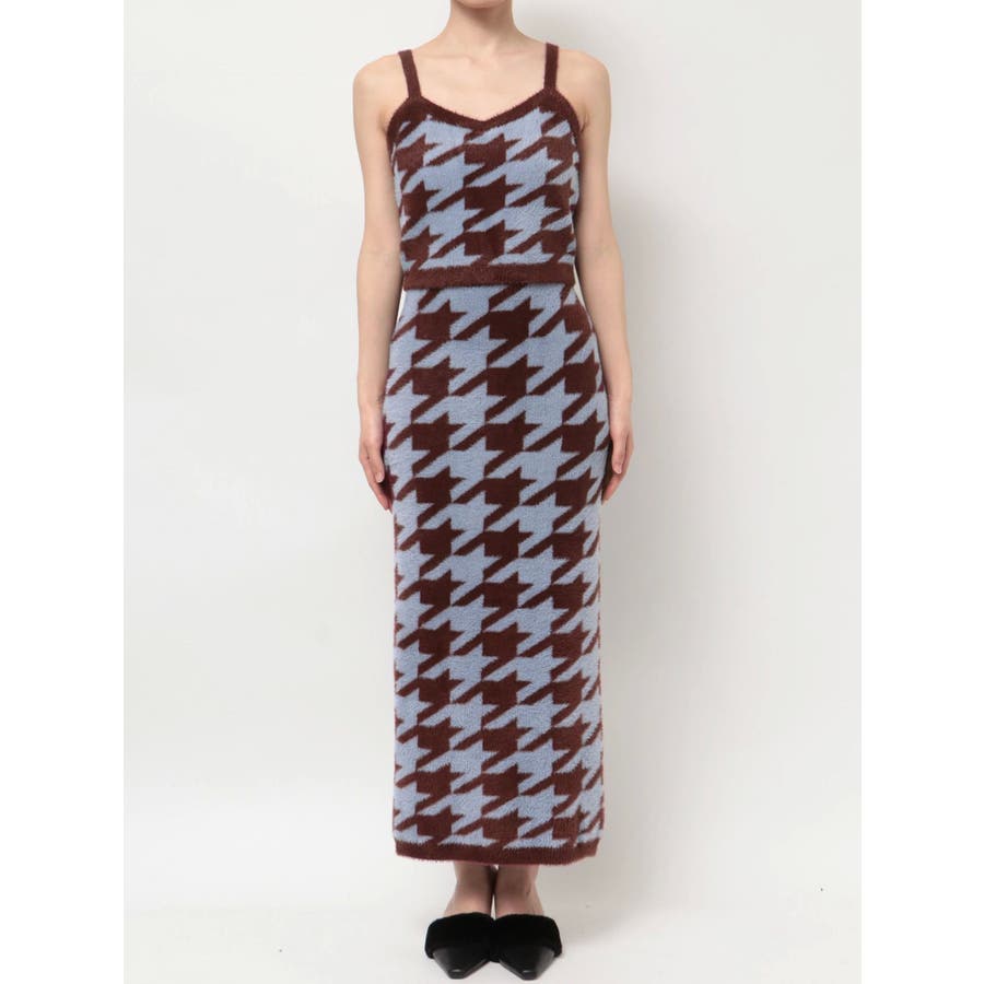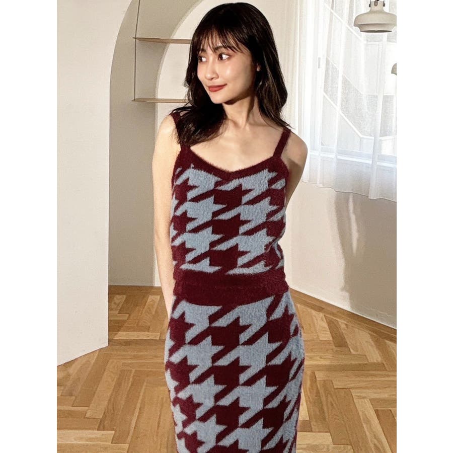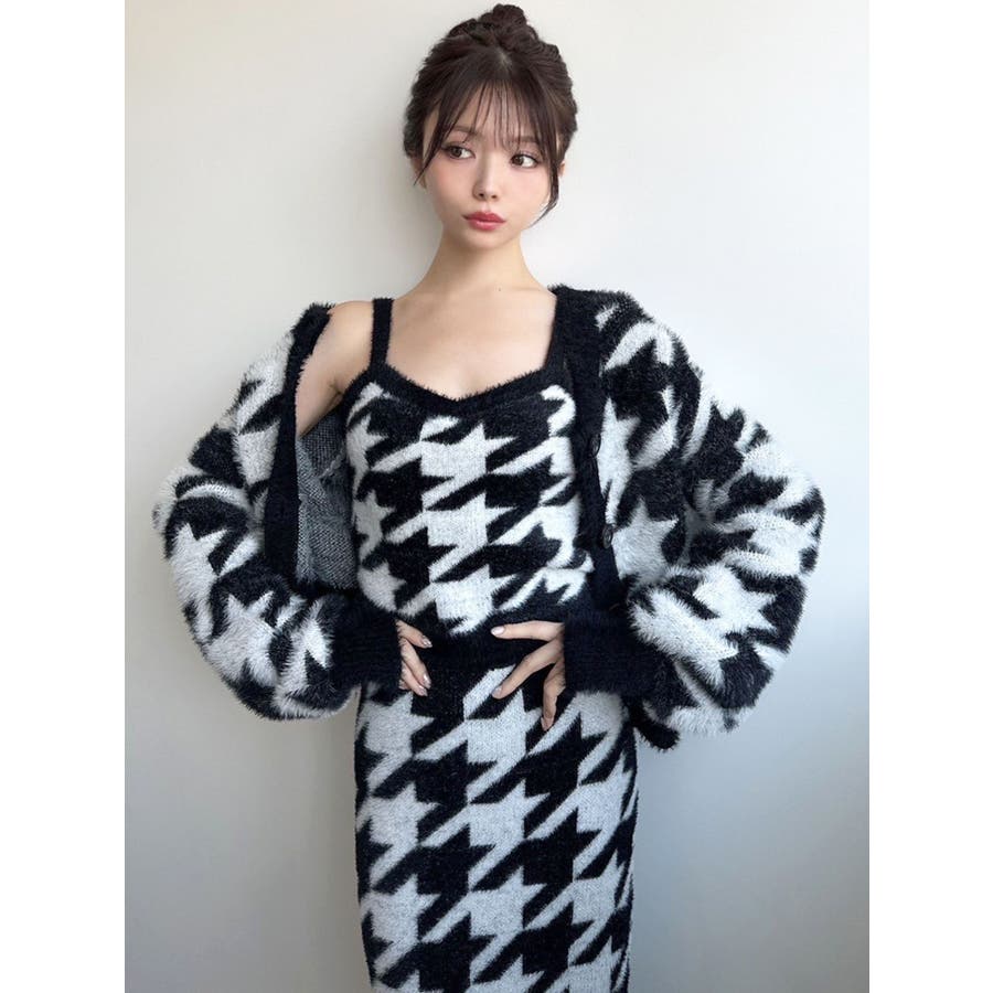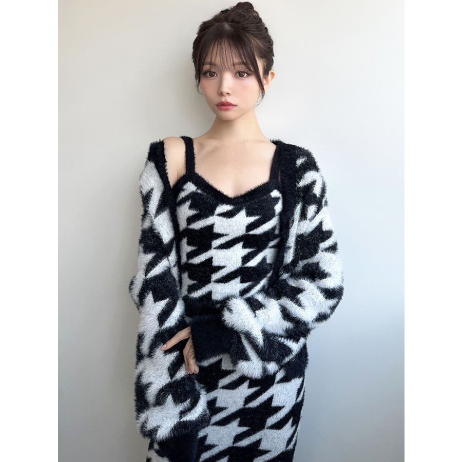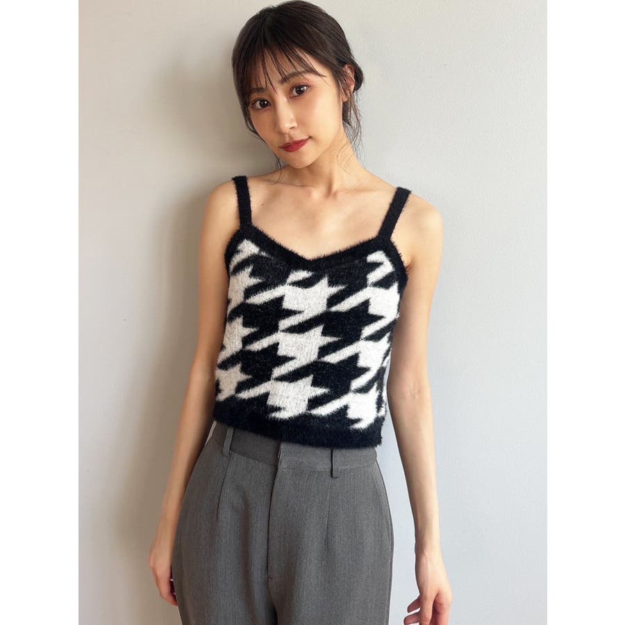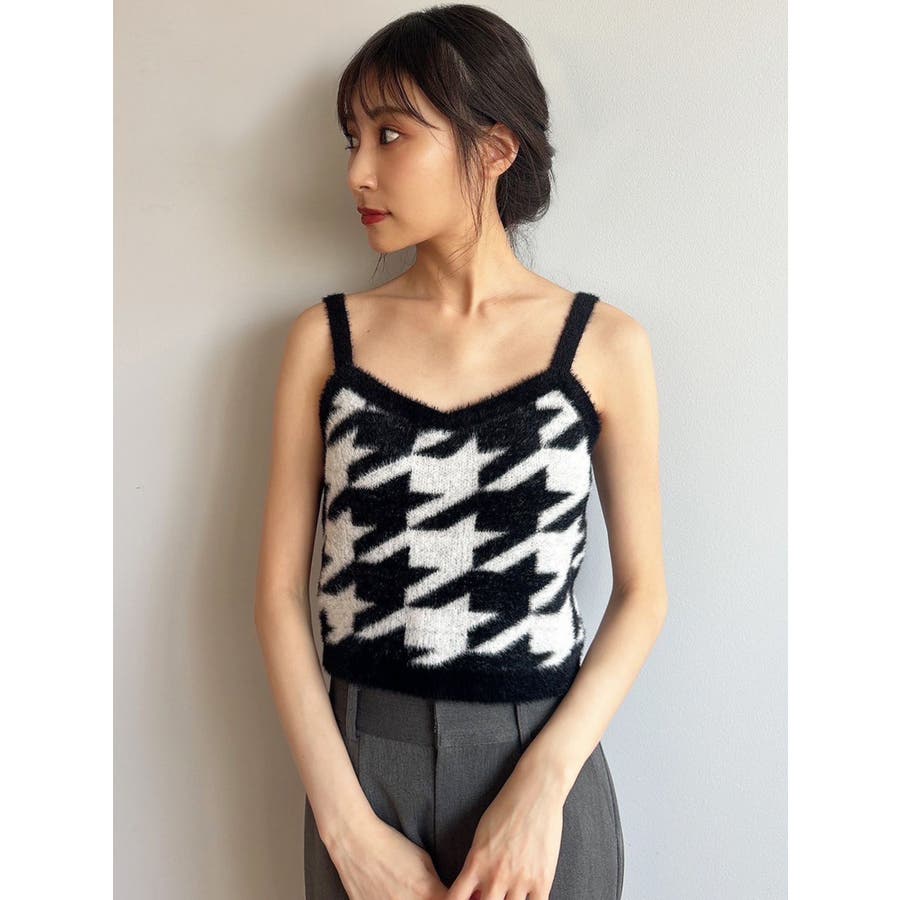 ハウンドトゥースシャギーニットタンク【セットアップ着用可能】
