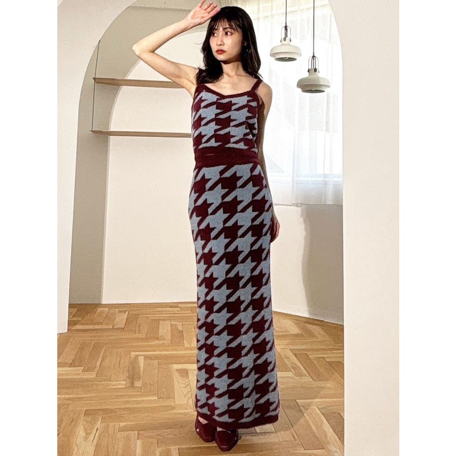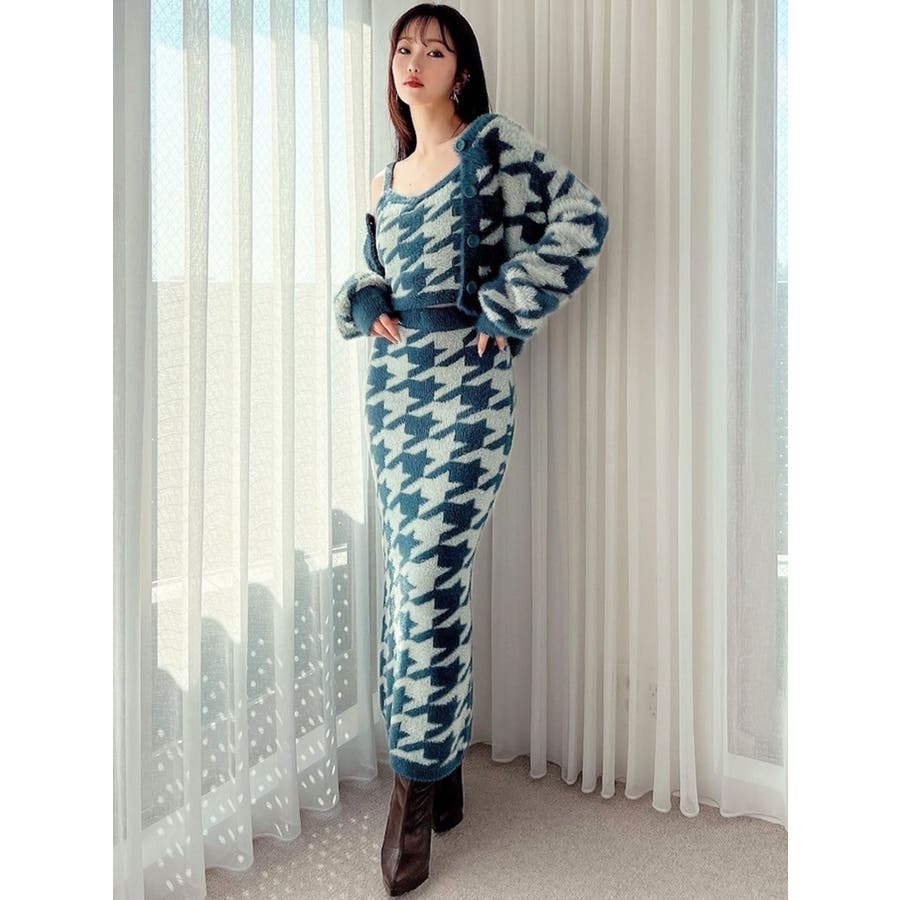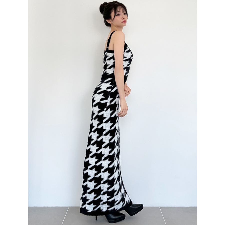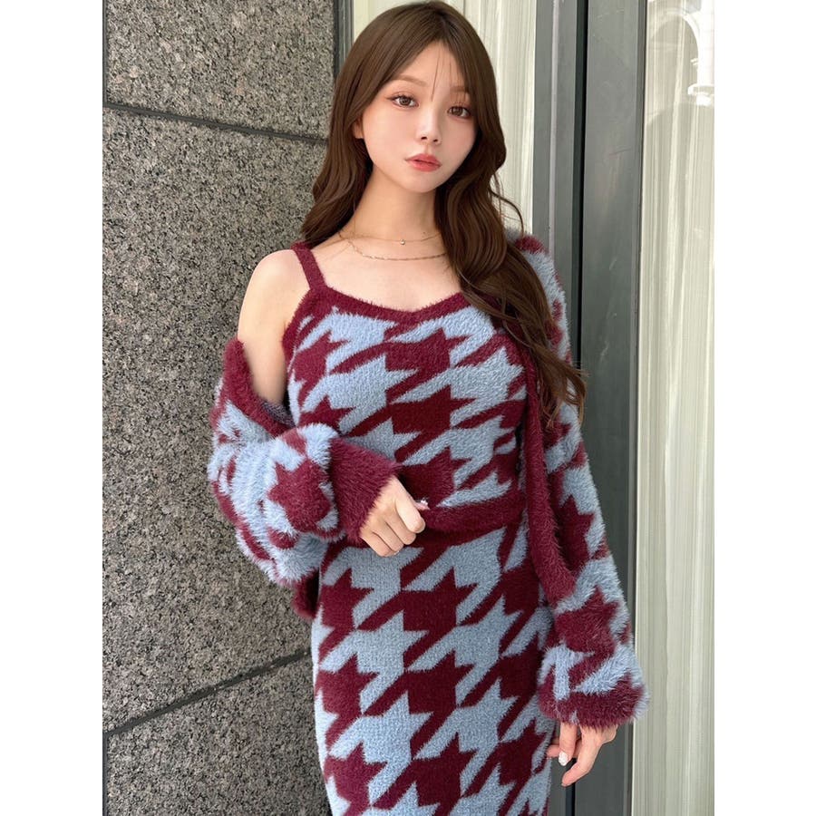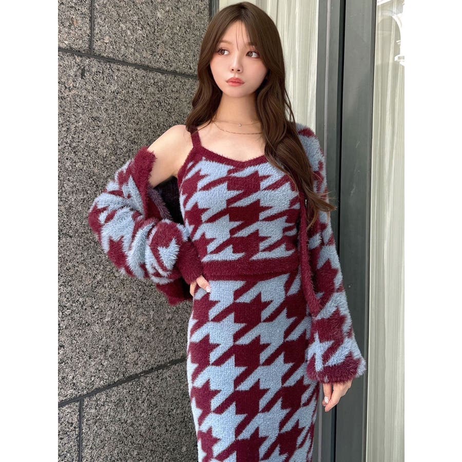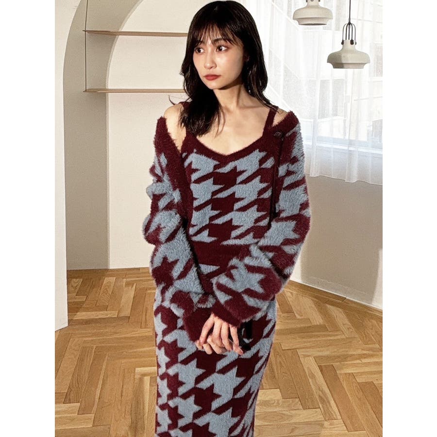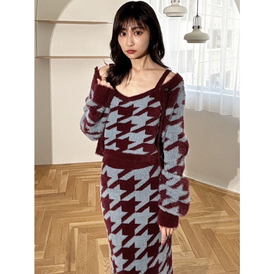 ハウンドトゥースシャギーニットタンク【セットアップ着用可能】