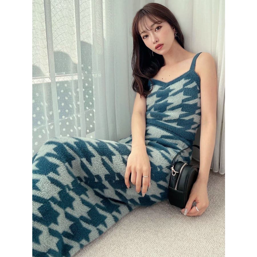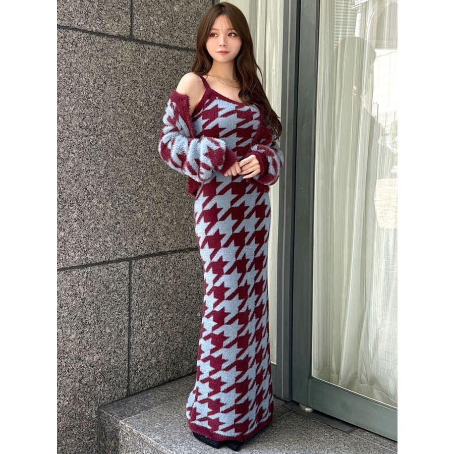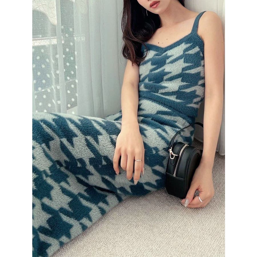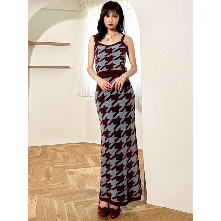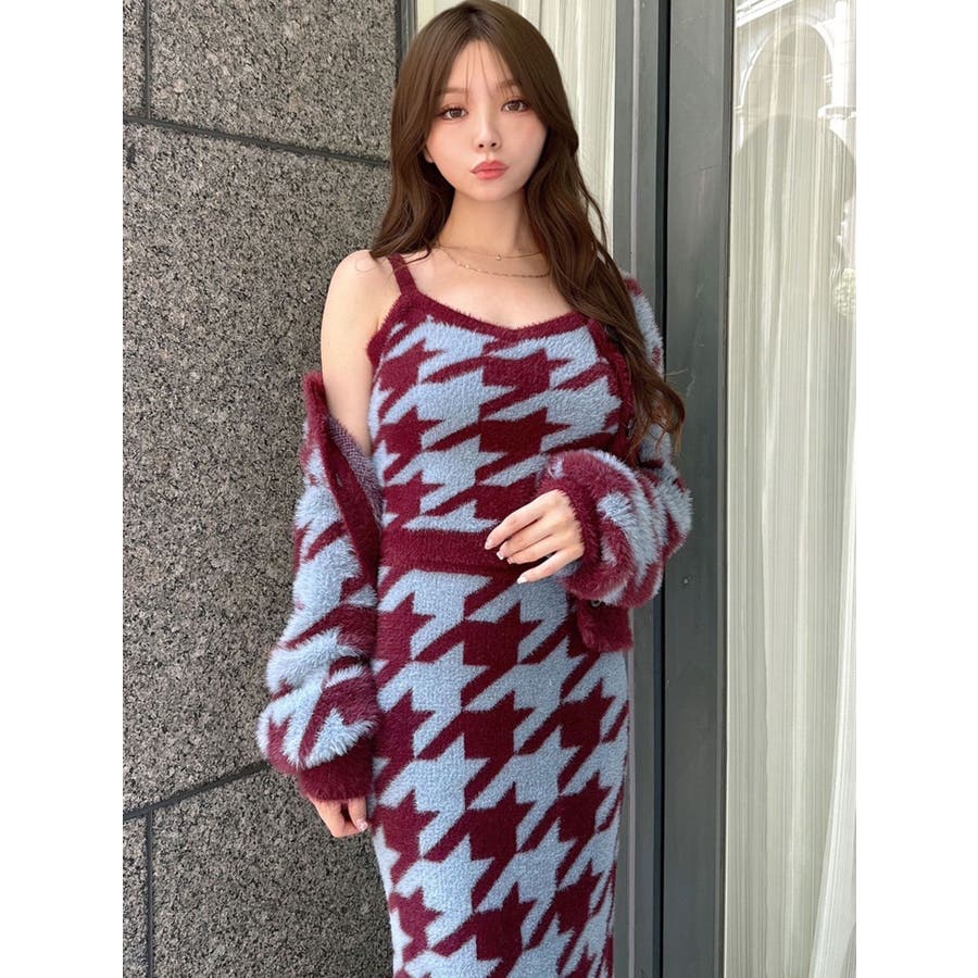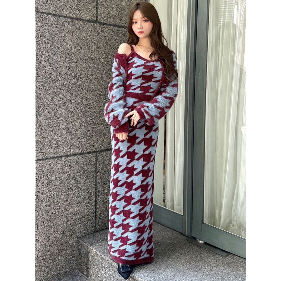 ハウンドトゥースシャギーニットタンク【セットアップ着用可能】