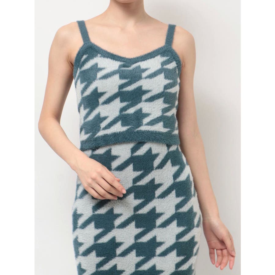 キャッチーな千鳥柄がポイントのニットキャミソール▽デザイン▽軽くて着心地の良いシャギーニットのキャミソール。クロップド丈なので上身頃をコンパクトにまとめてくれ、スタイルアップできる1枚です。首元はすっきりと開けたことで総柄でも着やすいデザインです。▽カラー▽黒・緑・ワインの3色展開。▽スタイリング▽同素材で作ったスカートやカーディガンと合わせればセットアップとして着用可能。クロップド丈なのでハイウエストボトム合わせがオススメ!1枚でコーデの主役になるキャミソールなのでシンプルなボトムスを合わせたり上からジャケットやカーディガンを羽織ったスタイリングもピッタリです。【セットアップアイテムはコチラ】152450836201:ハウンドトゥースシャギーニットスカート152452836001:ハウンドトゥースシャギーニットカーディガン