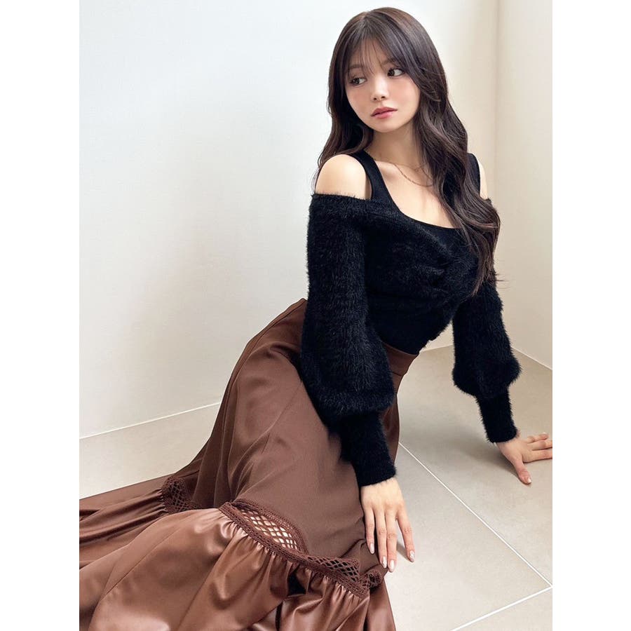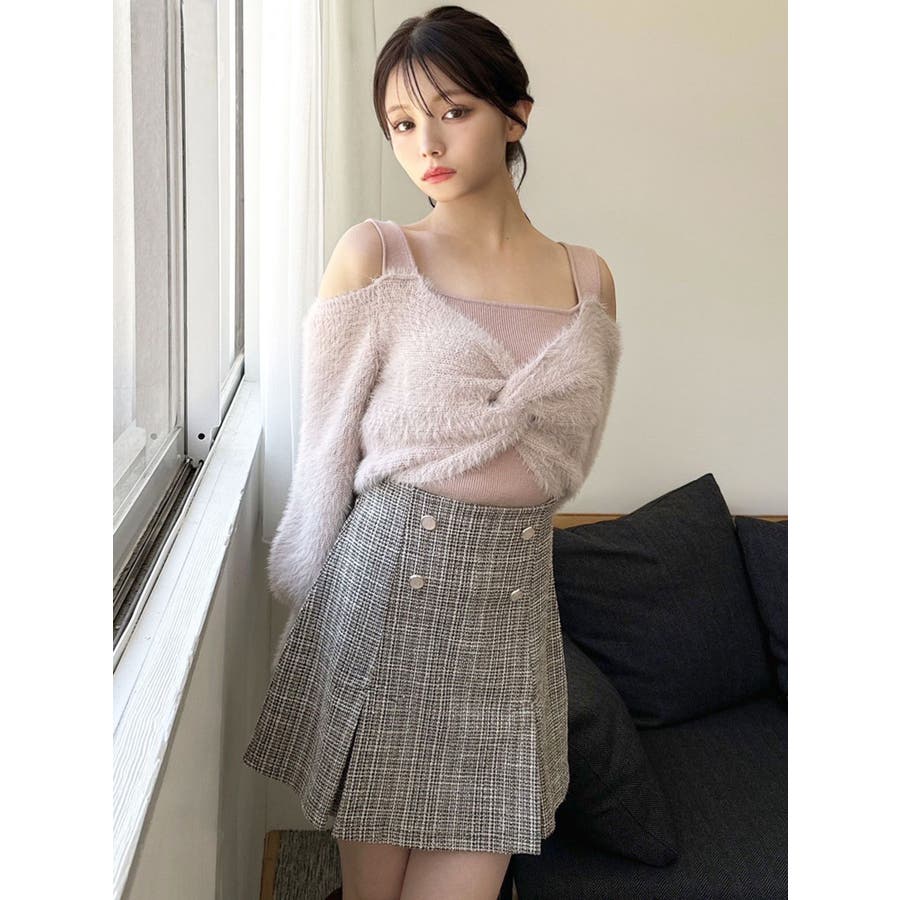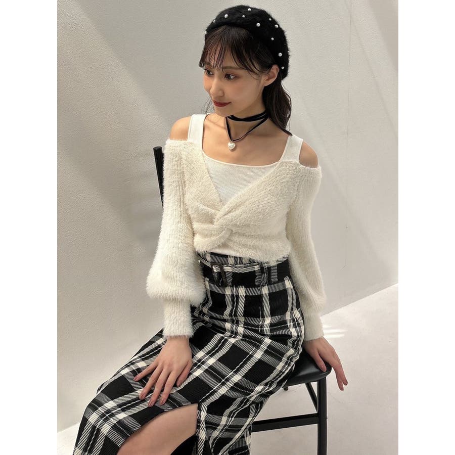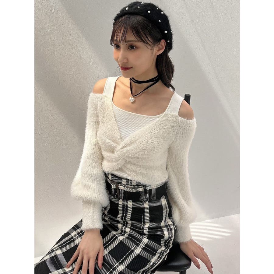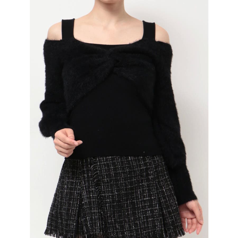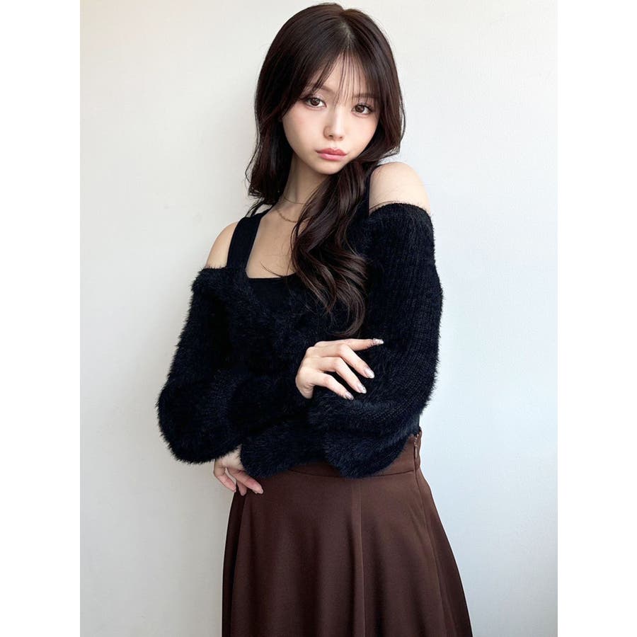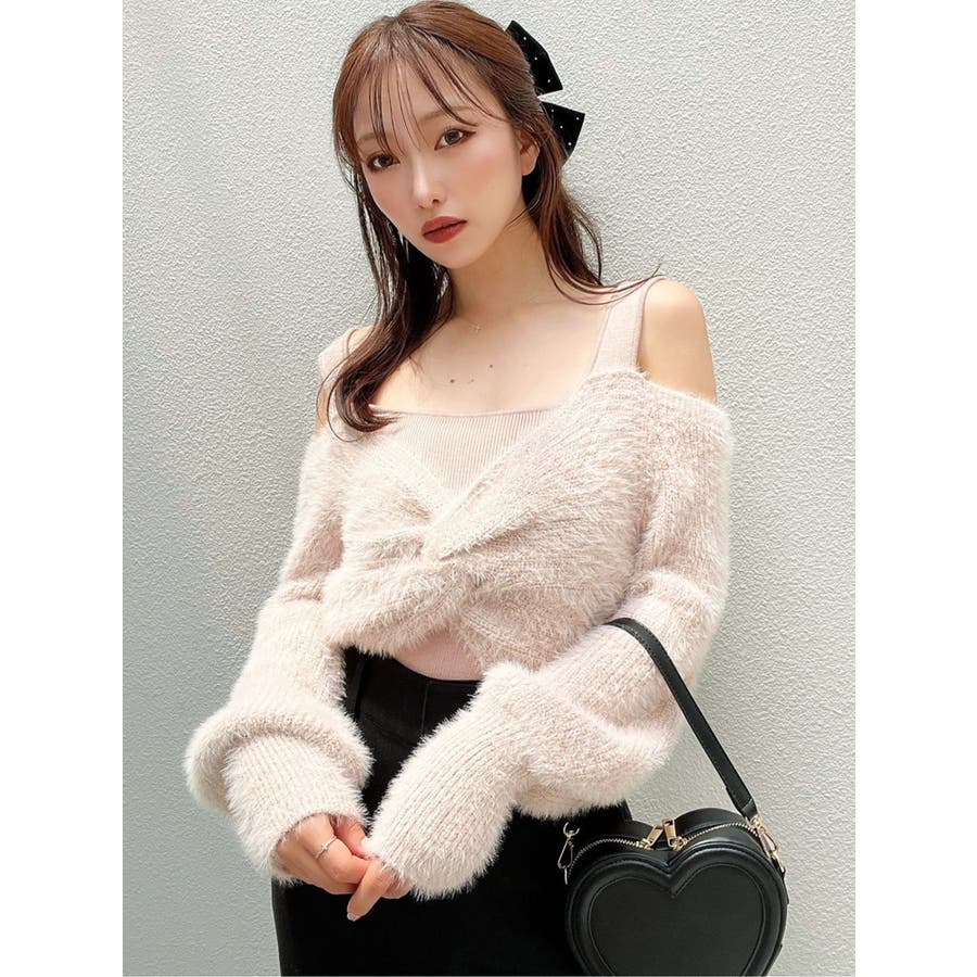 レイヤードデザインで女性らしさUPのニット▽デザイン▽リブタンクの上からオフショルニットを重ねたデザインにし、異素材のレイヤード見えがおしゃれな1着。スクエアネックとオフショルデザインが程よく肌見せでき女性らしさをプラス。シャギーニットはバスト下までなので、ウエスト部分はボディにフィットするリブニット素材でスタイルアップ効果も◎シャギーがシーズンムードを高めてくれます。▽カラー▽白・黒・ピンクの3色展開。▽スタイリング▽ハイウエストボトムにインしてコンパクトにまとめるのがオススメ!スカートでとことん女性らしく合わせたスタイリングがピッタリ◎※着用画像はフラッシュの加減で実際の製品と色味等が異なる場合がございますので、生地のズームアップ画像をご確認ください。※ご利用の端末画面の設定により実際の商品と色味が異なる場合がございます。【商品特徴】透け感:なし伸縮性:ややあり生地の厚さ:普通サイズ感:普通裏地:なしポケット:なし