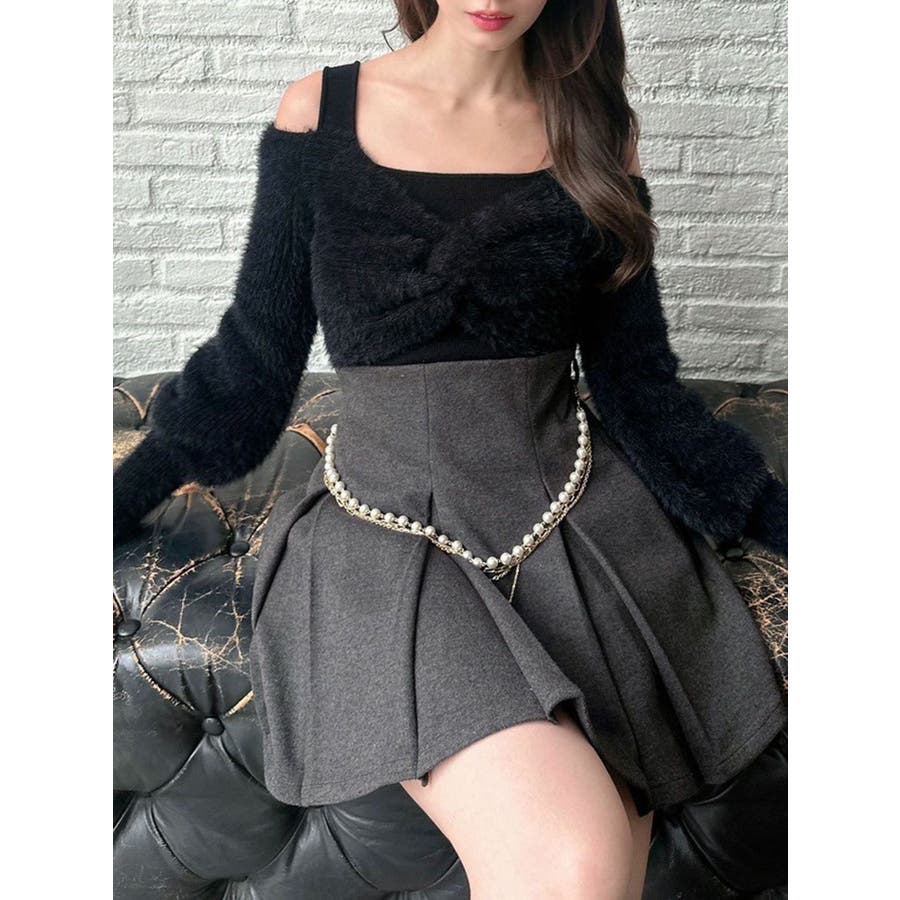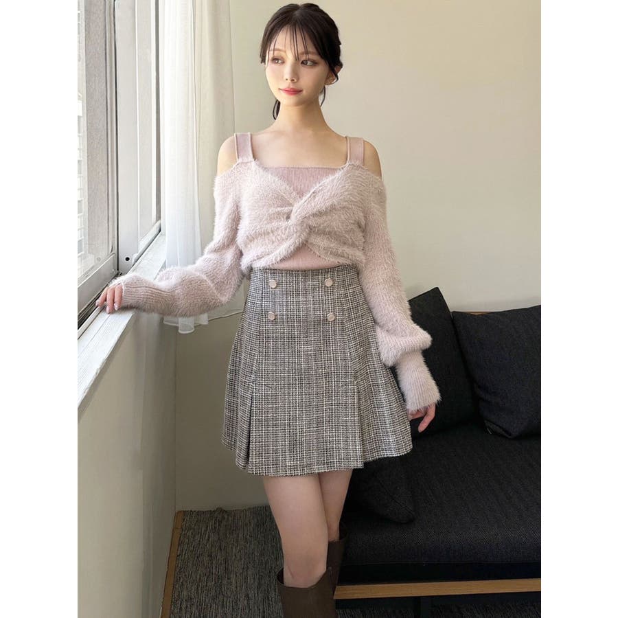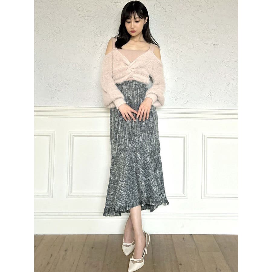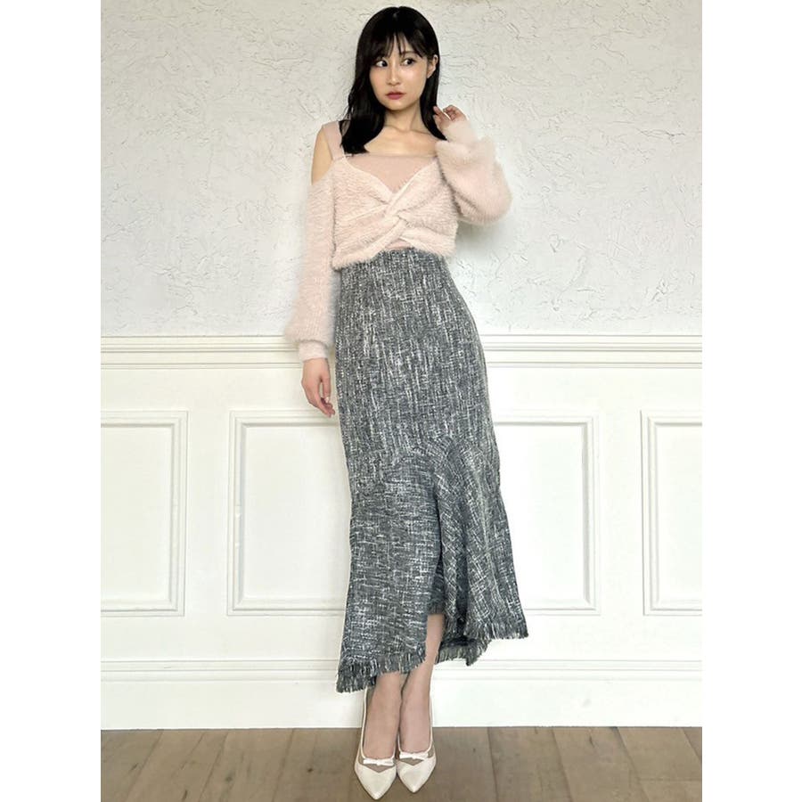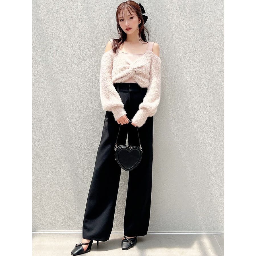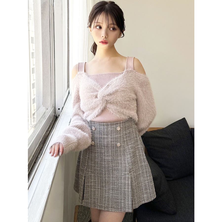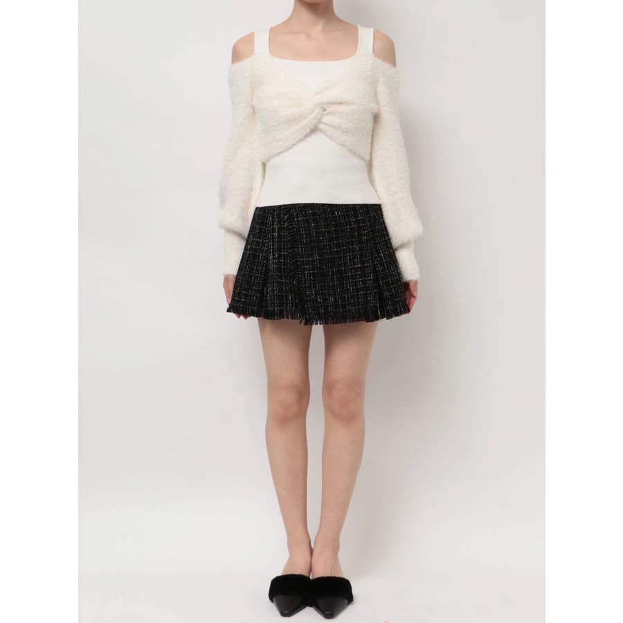 レイヤードデザインで女性らしさUPのニット▽デザイン▽リブタンクの上からオフショルニットを重ねたデザインにし、異素材のレイヤード見えがおしゃれな1着。スクエアネックとオフショルデザインが程よく肌見せでき女性らしさをプラス。シャギーニットはバスト下までなので、ウエスト部分はボディにフィットするリブニット素材でスタイルアップ効果も◎シャギーがシーズンムードを高めてくれます。▽カラー▽白・黒・ピンクの3色展開。▽スタイリング▽ハイウエストボトムにインしてコンパクトにまとめるのがオススメ!スカートでとことん女性らしく合わせたスタイリングがピッタリ◎※着用画像はフラッシュの加減で実際の製品と色味等が異なる場合がございますので、生地のズームアップ画像をご確認ください。※ご利用の端末画面の設定により実際の商品と色味が異なる場合がございます。【商品特徴】透け感:なし伸縮性:ややあり生地の厚さ:普通サイズ感:普通裏地:なしポケット:なし