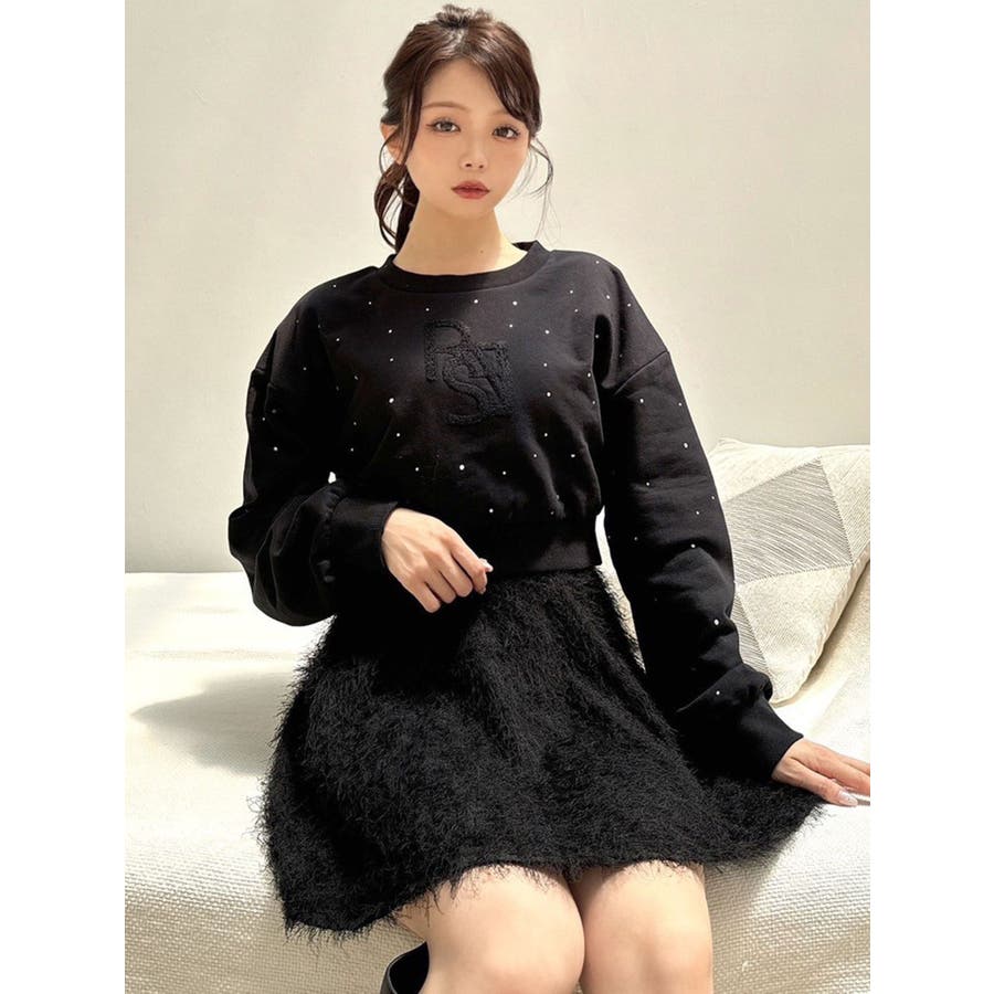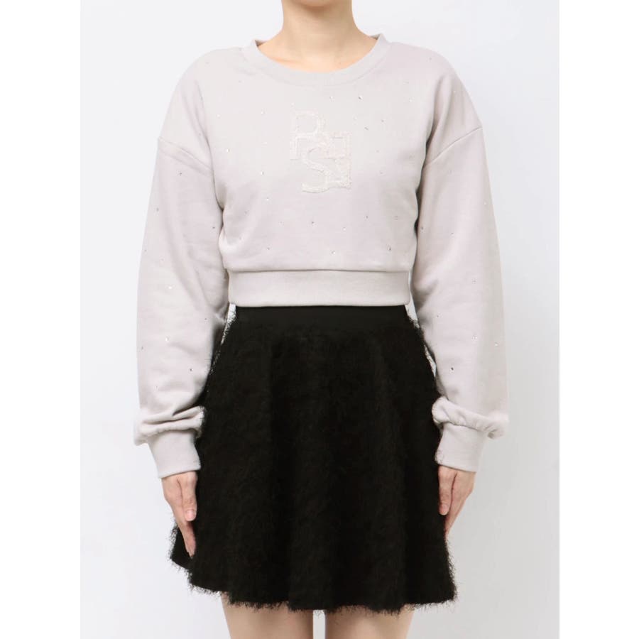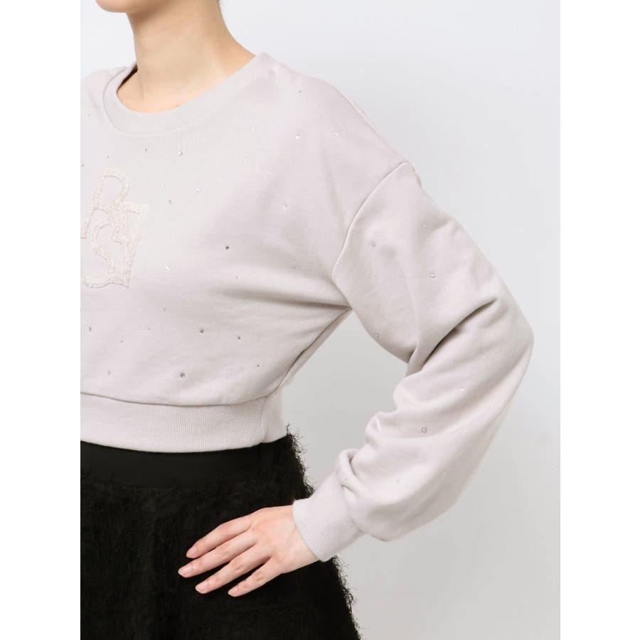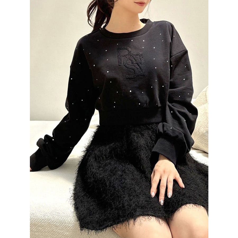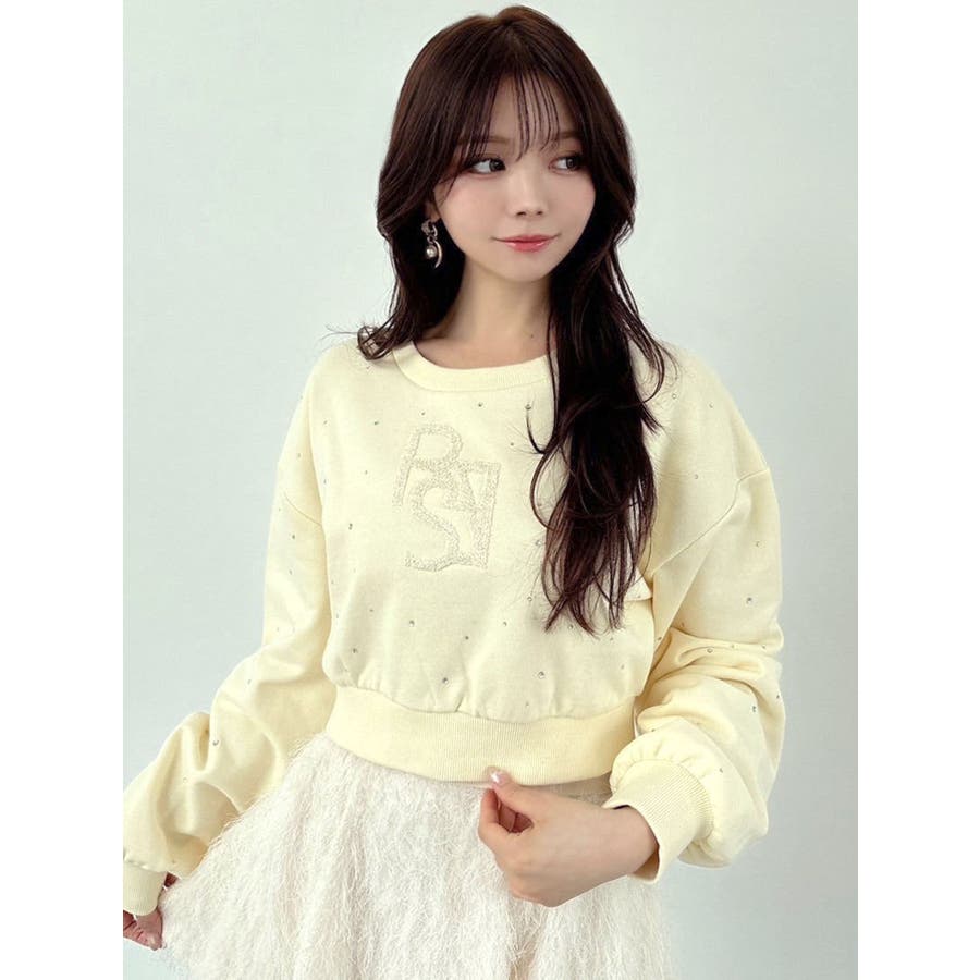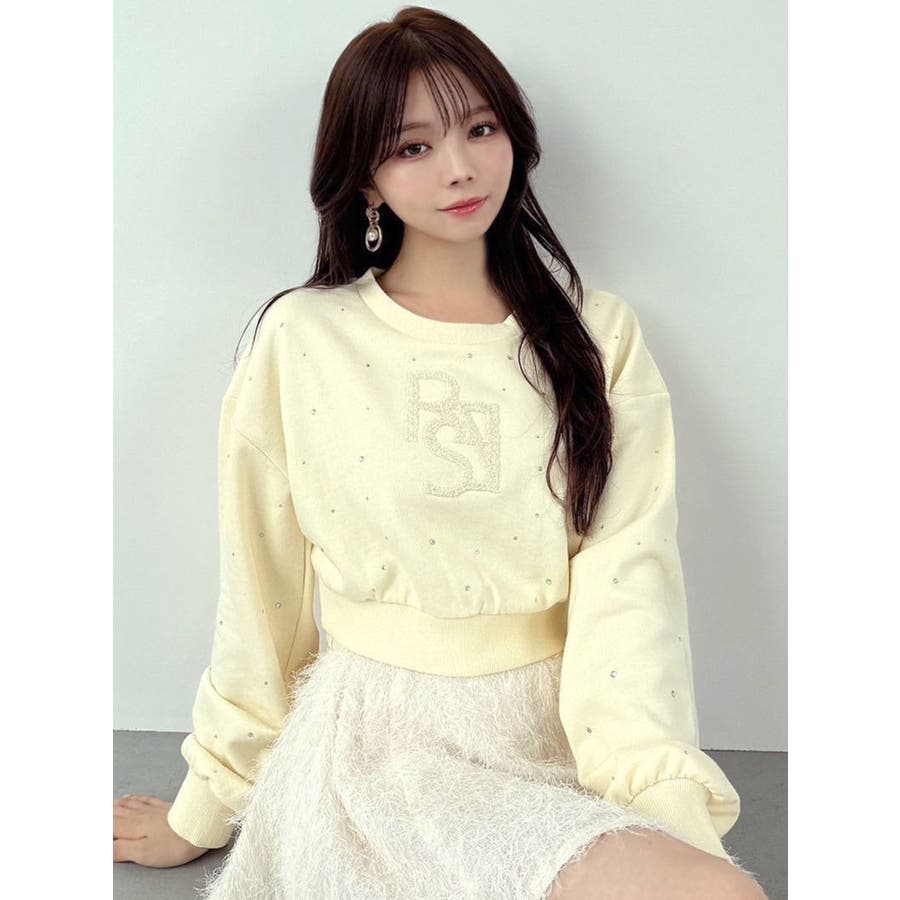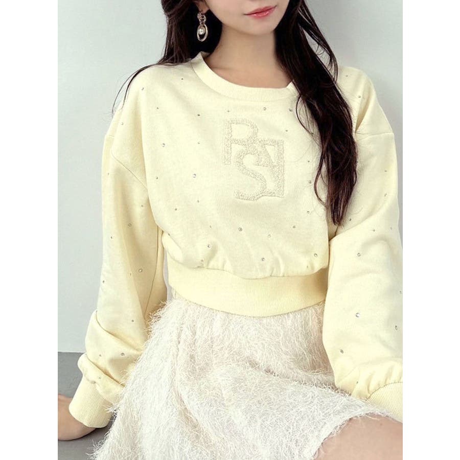 オリジナルロゴとビジューの煌めきがポイントのスウェット▽デザイン▽クロップド丈で着回ししやすいスウェット。フロント面には華奢なビジューを全体的に散りばめ、キラキラがとても可愛い1着です♪カジュアルな素材感ですがコンパクトなシルエットとビジューが女性らしさをプラスします。フロントの刺繍のオリジナルロゴがワンポイントに。身頃と同色にしたことでさりげなく見え、ロゴアイテムに挑戦しやすい1着です。▽カラー▽黒・黄色・ベージュの3色展開。▽スタイリング▽クロップド丈なのでハイウエストボトム合わせがオススメ!あえてフレアスカートと合わせることでカジュアルすぎないバランスの良いスタイリングに仕上がります◎※着用画像はフラッシュの加減で実際の製品と色味等が異なる場合がございますので、生地のズームアップ画像をご確認ください。※ご利用の端末画面の設定により実際の商品と色味が異なる場合がございます。【商品特徴】透け感:なし伸縮性:あり生地の厚さ:普通サイズ感:ゆったり裏地:なしポケット:なし