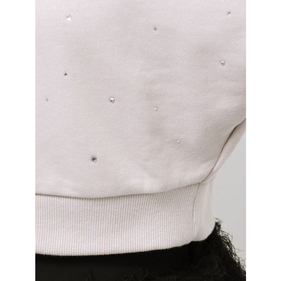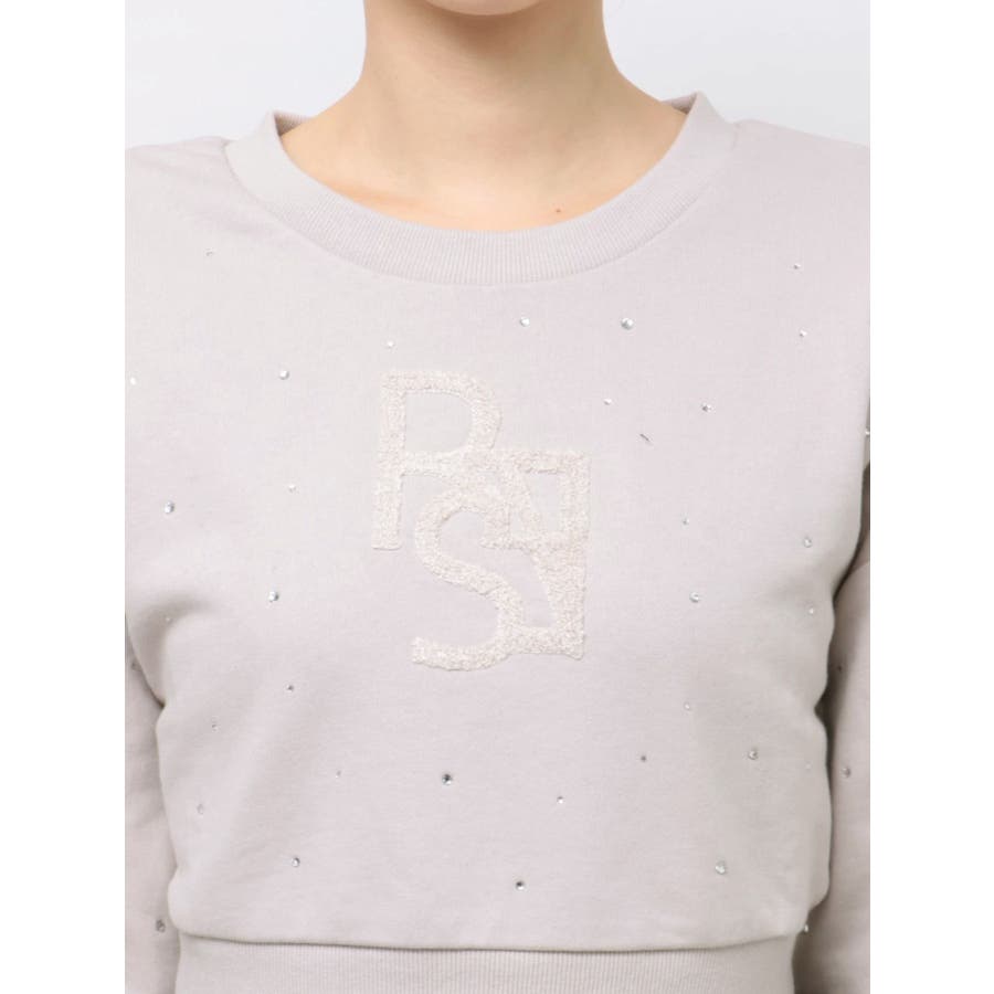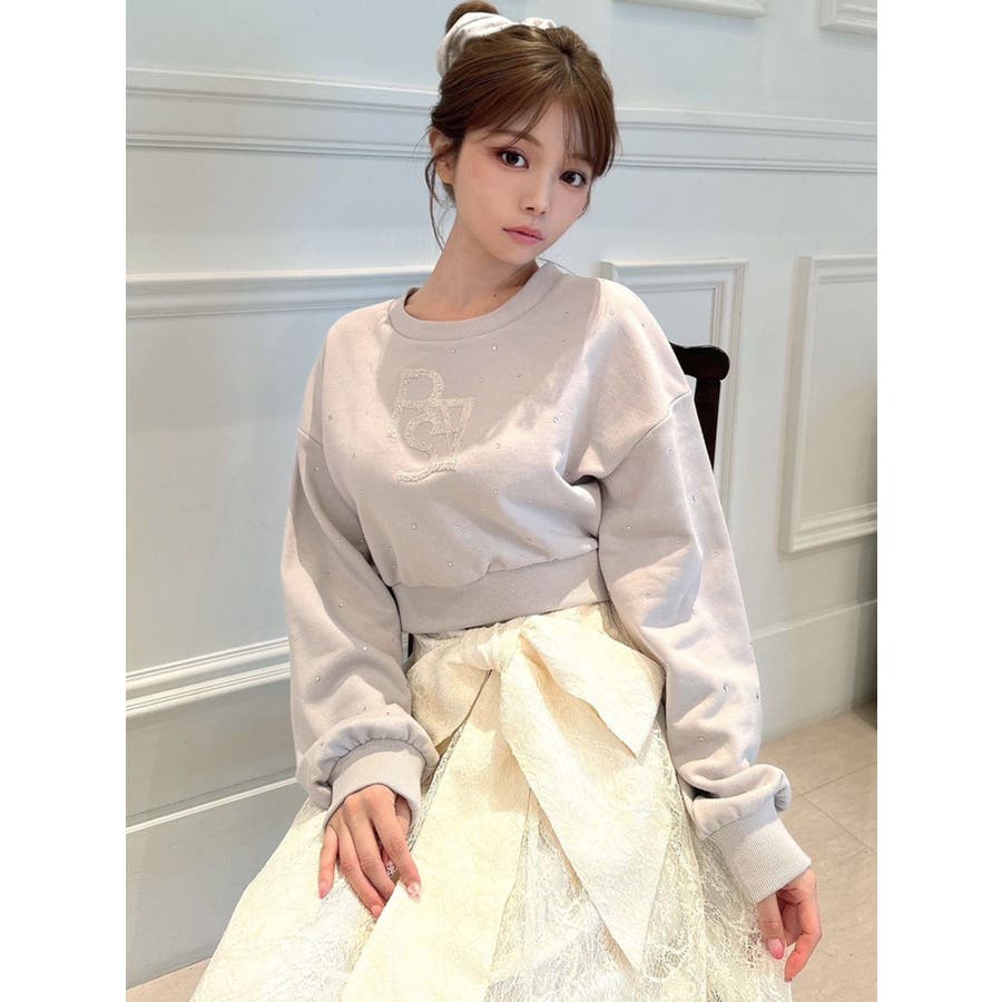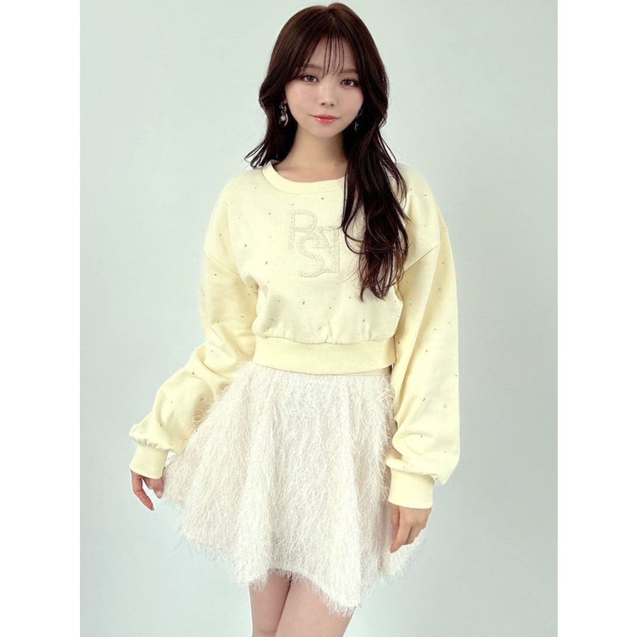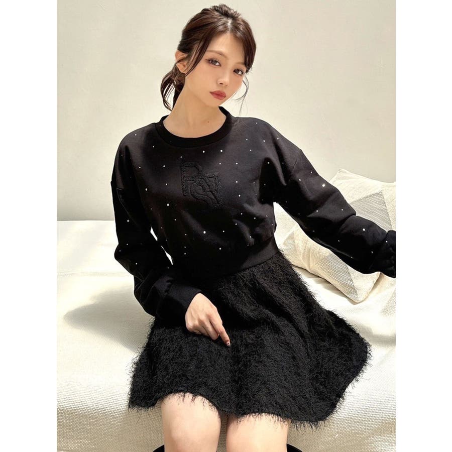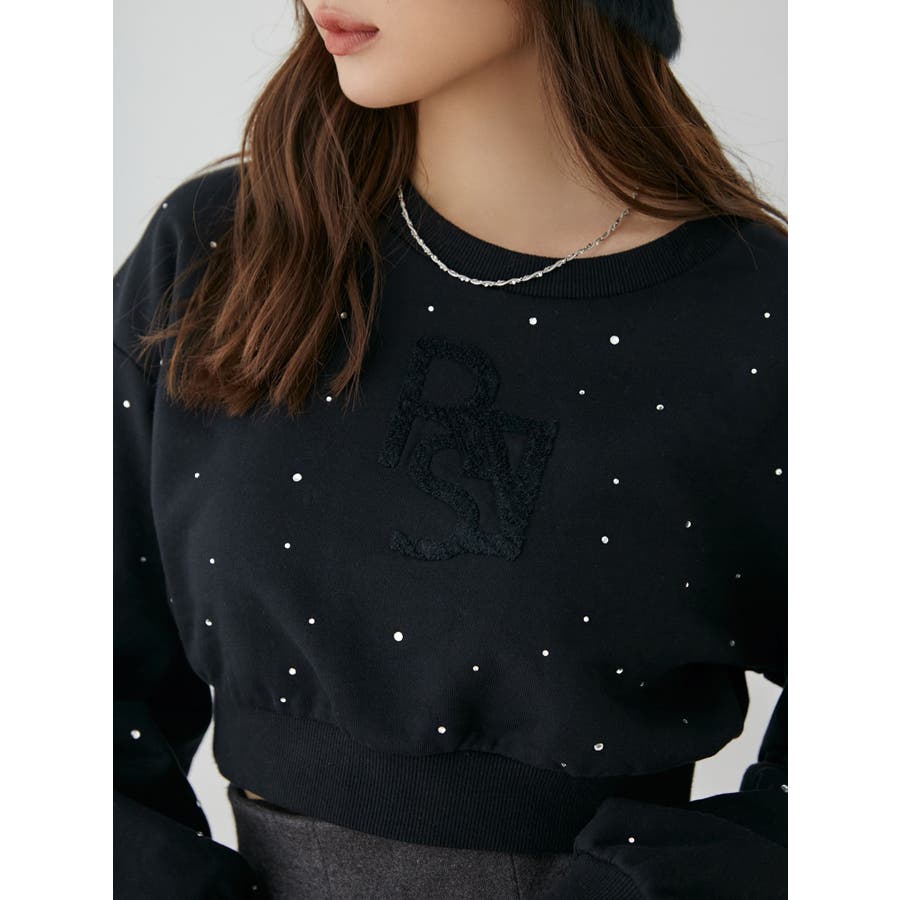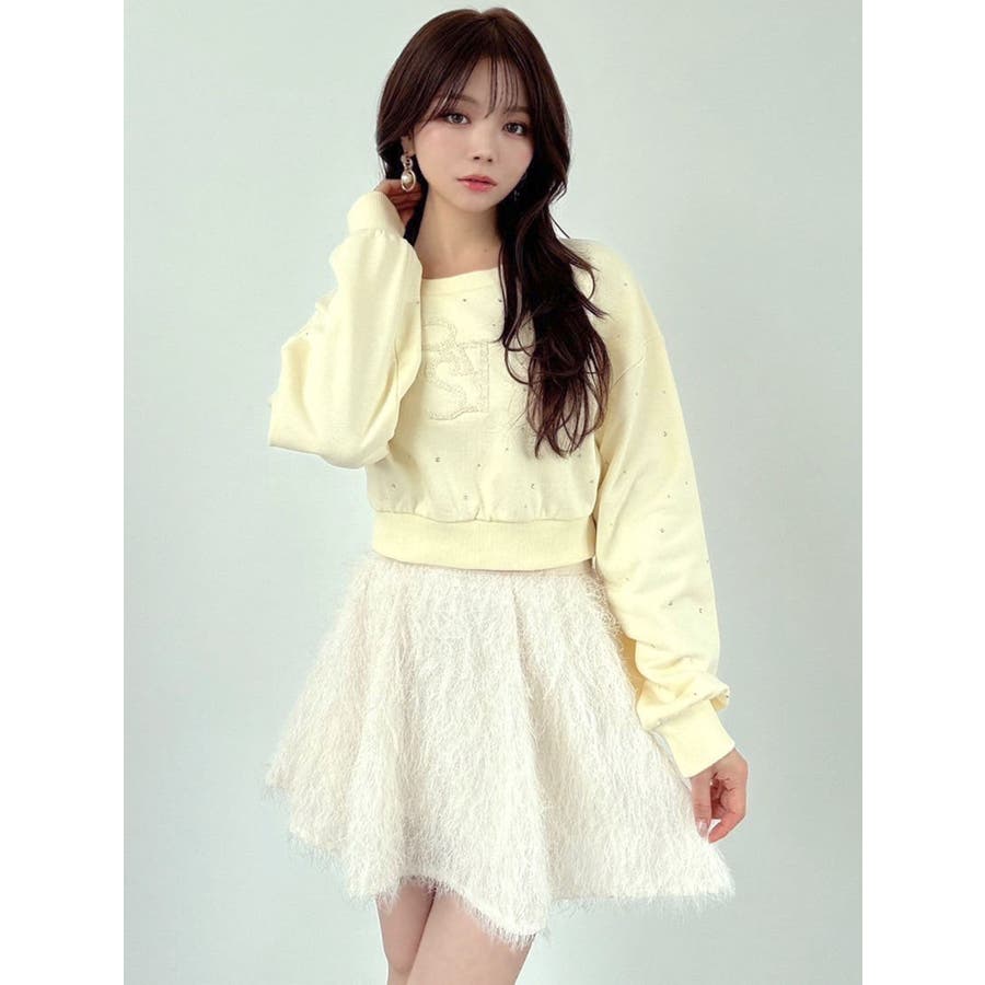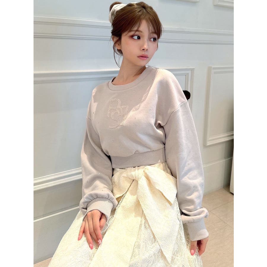 オリジナルロゴとビジューの煌めきがポイントのスウェット▽デザイン▽クロップド丈で着回ししやすいスウェット。フロント面には華奢なビジューを全体的に散りばめ、キラキラがとても可愛い1着です♪カジュアルな素材感ですがコンパクトなシルエットとビジューが女性らしさをプラスします。フロントの刺繍のオリジナルロゴがワンポイントに。身頃と同色にしたことでさりげなく見え、ロゴアイテムに挑戦しやすい1着です。▽カラー▽黒・黄色・ベージュの3色展開。▽スタイリング▽クロップド丈なのでハイウエストボトム合わせがオススメ!あえてフレアスカートと合わせることでカジュアルすぎないバランスの良いスタイリングに仕上がります◎※着用画像はフラッシュの加減で実際の製品と色味等が異なる場合がございますので、生地のズームアップ画像をご確認ください。※ご利用の端末画面の設定により実際の商品と色味が異なる場合がございます。【商品特徴】透け感:なし伸縮性:あり生地の厚さ:普通サイズ感:ゆったり裏地:なしポケット:なし