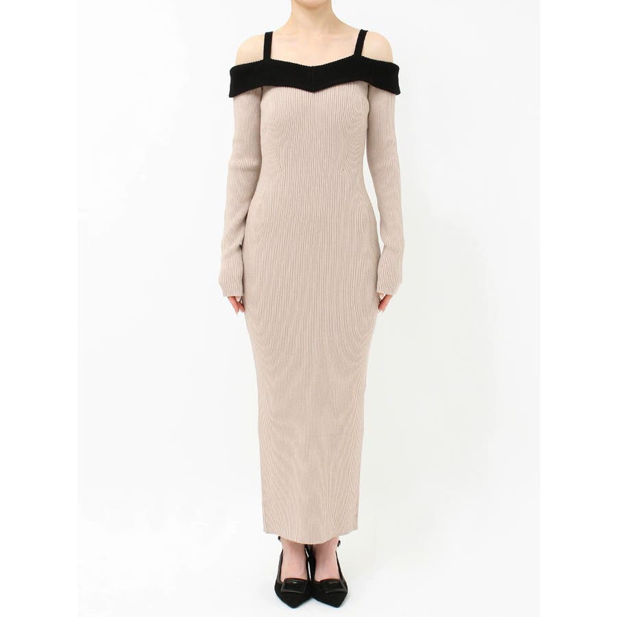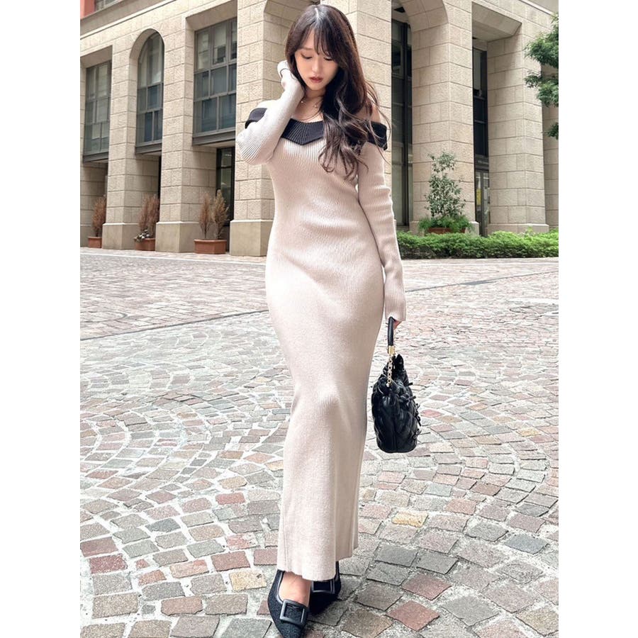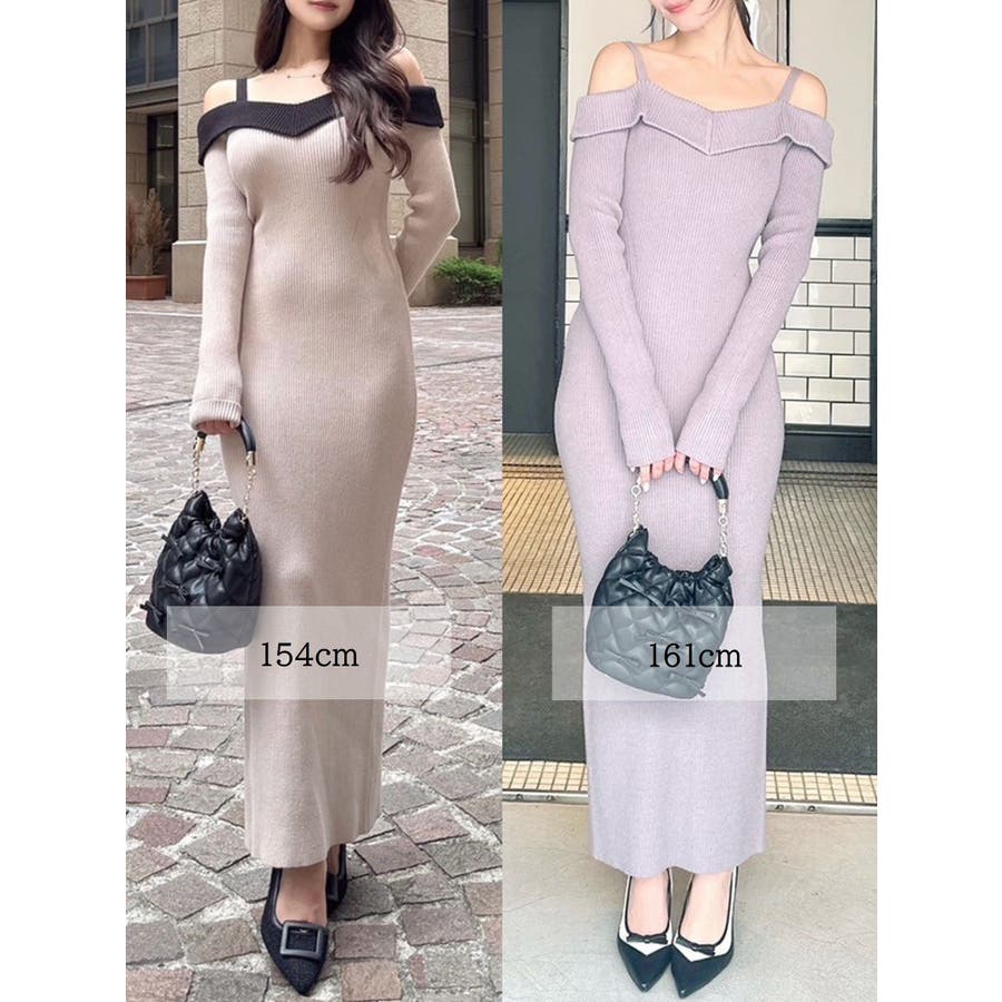 1枚で女性らしい印象に仕上がるロングワンピース▽デザイン▽オフショルデザインで肩回りを華奢見せしてくれる1枚。オフショル部分はリブ編みをダブルにし、折り返しデザインにしたことで程よくボリューム感がありボディ部分とのコントラストを付けました。ボディ部分はリブで編み立てたのでストレッチも抜群◎ウエストのサイズ感にこだわり1枚で美シルエットが完成します。バックスリット入りで足さばきが良いのもポイント。▽カラー▽黒・ラベンダー・ベージュの3色展開。ベージュはバイカラーデザインです♪▽スタイリング▽1枚で女性らしいスタイリングが完成。タイトシルエットなのでどんなアウターにもマッチし1枚持っているとロングシーズン活躍します。【ミニ丈バージョンはコチラ】152460364901:オフショルタイトミニニットワンピース