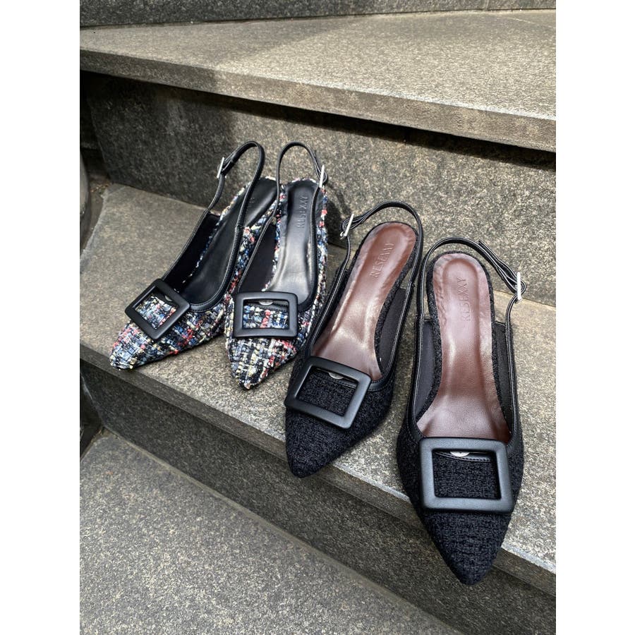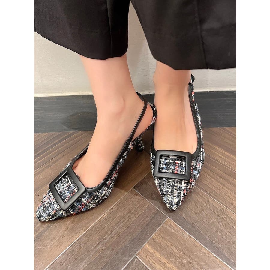 バックルツイードパンプス