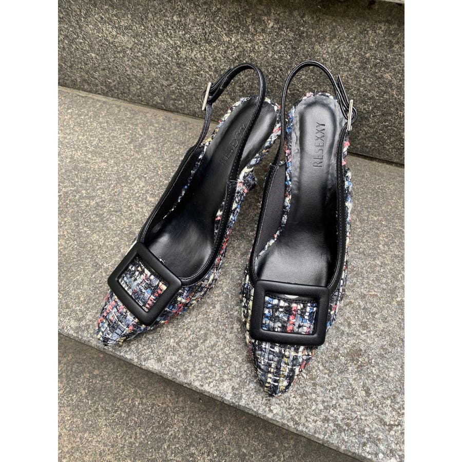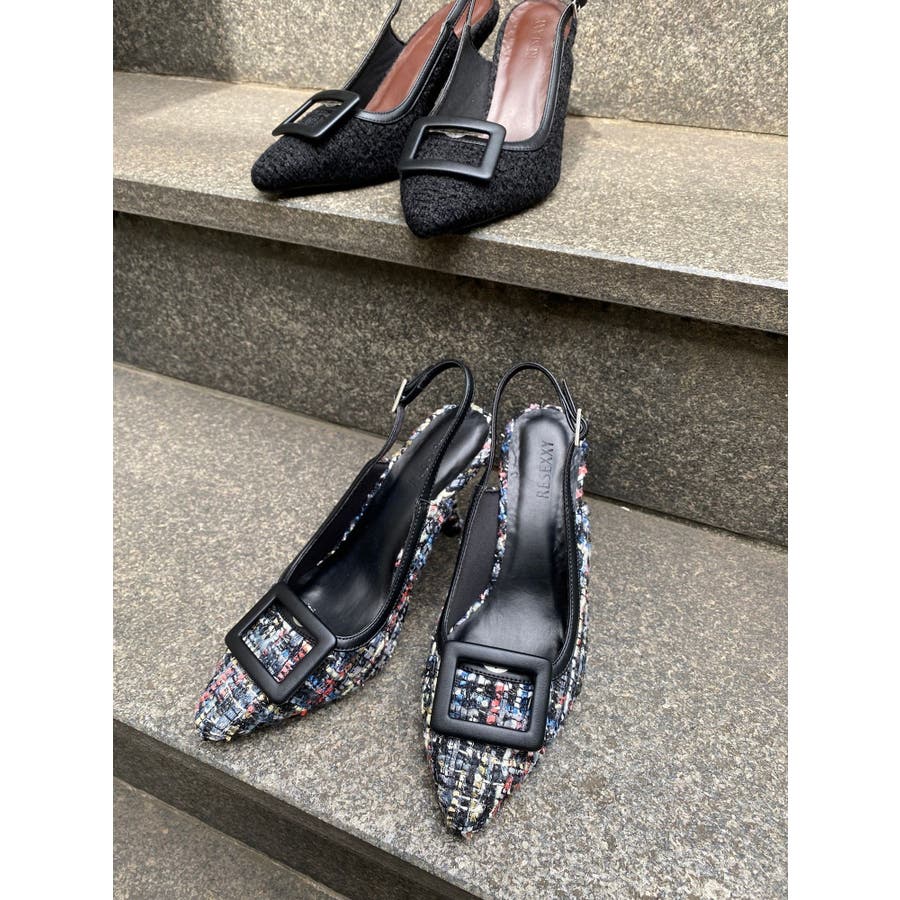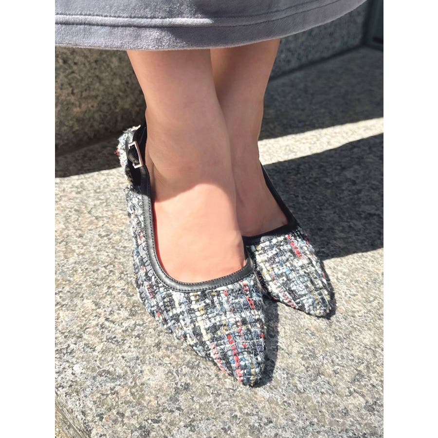 シーズンムードが高まるファンシーツイードのパンプス▽デザイン▽アッパーのカラーに合わせたヒールの配色でどんなシーンにも合わせやすいデザインに。取り外し可能なバックル付きが嬉しいポイント◎きれいめのコーディネートにはもちろん、ソックスを合わせてプレイフルに合わせるのもおすすめです。▽カラー▽黒・ミックスの2色展開。【スタッフ着用レビュー】 スタッフB(普段のサイズ: 24.5cm/足の幅: 9.8cm/甲の高さ: 5.6cm/ふくらはぎ周り:34cm)Lサイズ着用でちょうどよかったです。ストラップは自分好みに調節できるので足にフィットします。