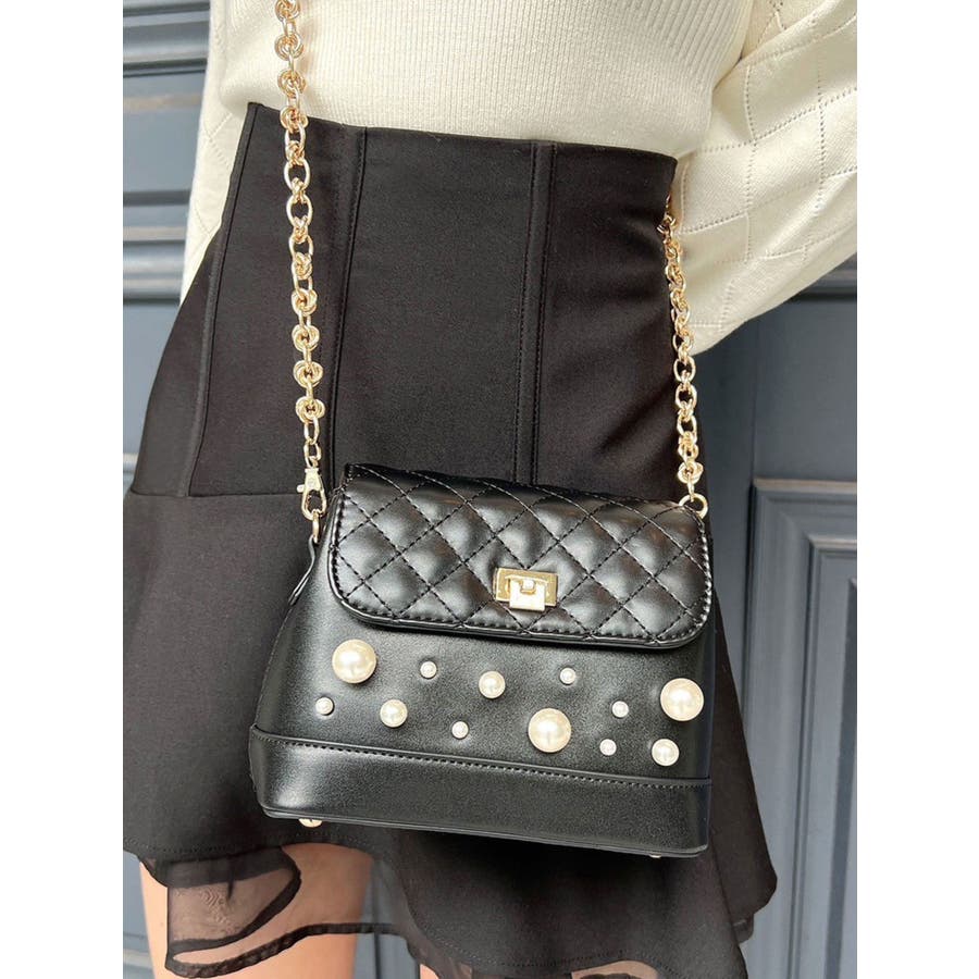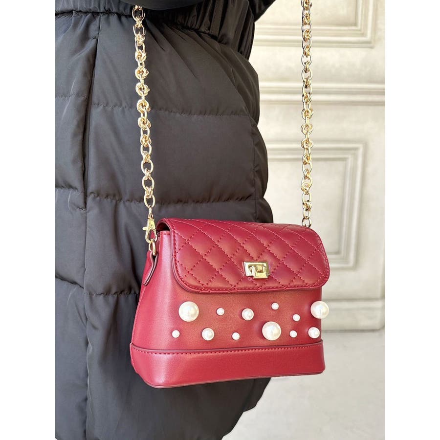 パールがポイントのコンパクトなショルダーバッグ▽デザイン▽サイズの違うパールとキルティングデザインが今年らしいバッグ。コンパクトなサイズ感ですがマチがしっかりあるので持っていると重宝する使い勝手の良いアイテムです。チェーンショルダー付きで高級感のあるバッグです。▽カラー▽黒・赤の2色展開。スタイリングのポイントになること間違いなし!
